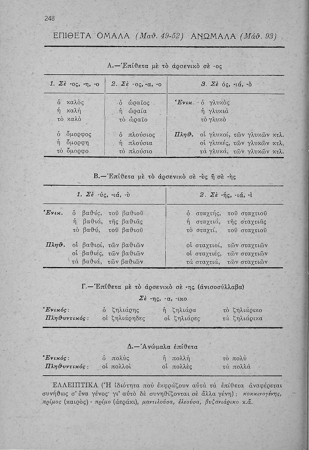 Μαθητικό βοήθημα Γλώσσας και Νέων Ελληνικών για μαθητές των Ε΄ και ΣΤ΄ Δημοτικού και Γυμνασίου που περιλαμβάνει πεζά και ποιήματα, προφορικές και γραπτές ασκήσεις, και βοηθητικούς γραμματικούς πίνακες για τη διδασκαλία των γραμματικών φαινομένων.