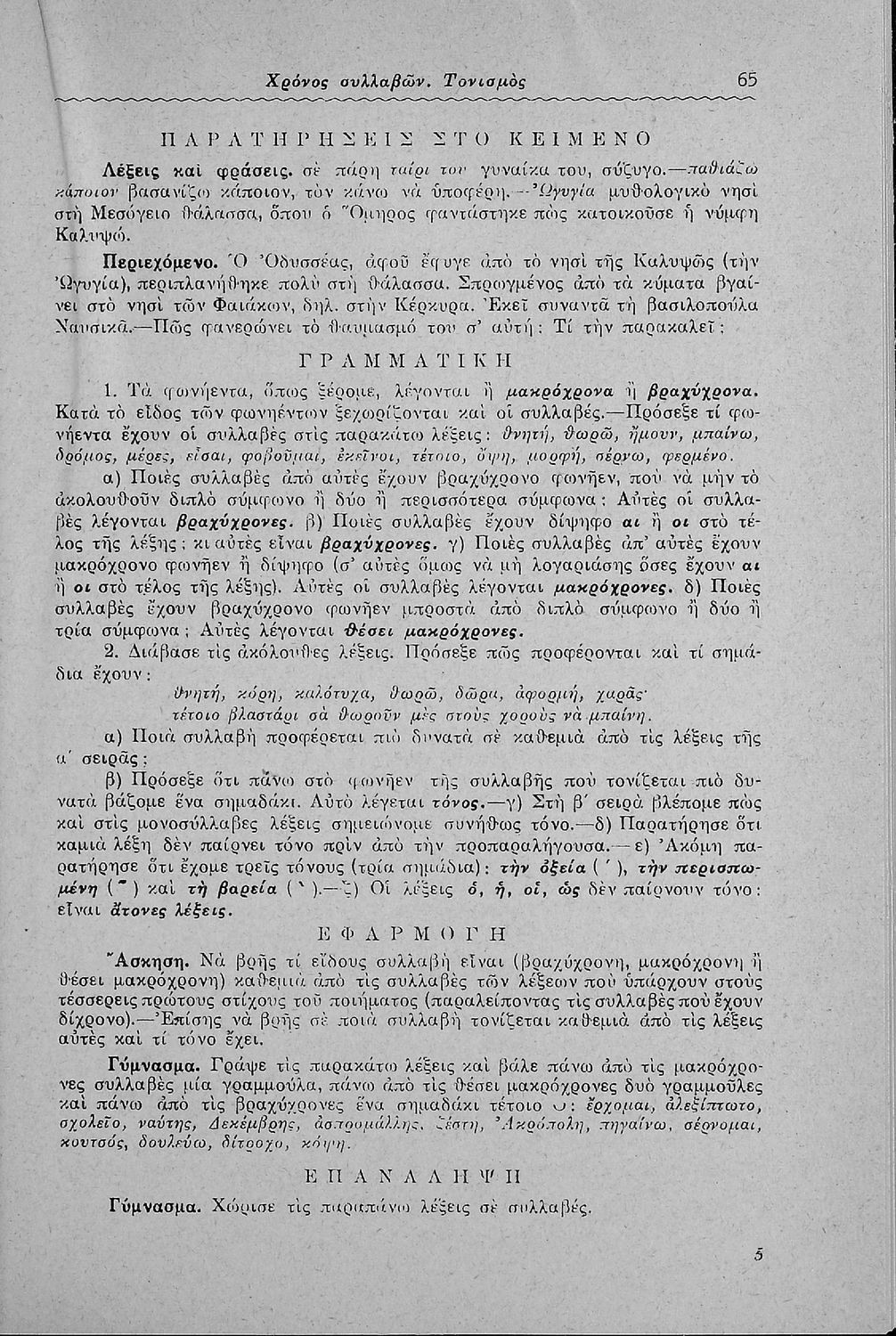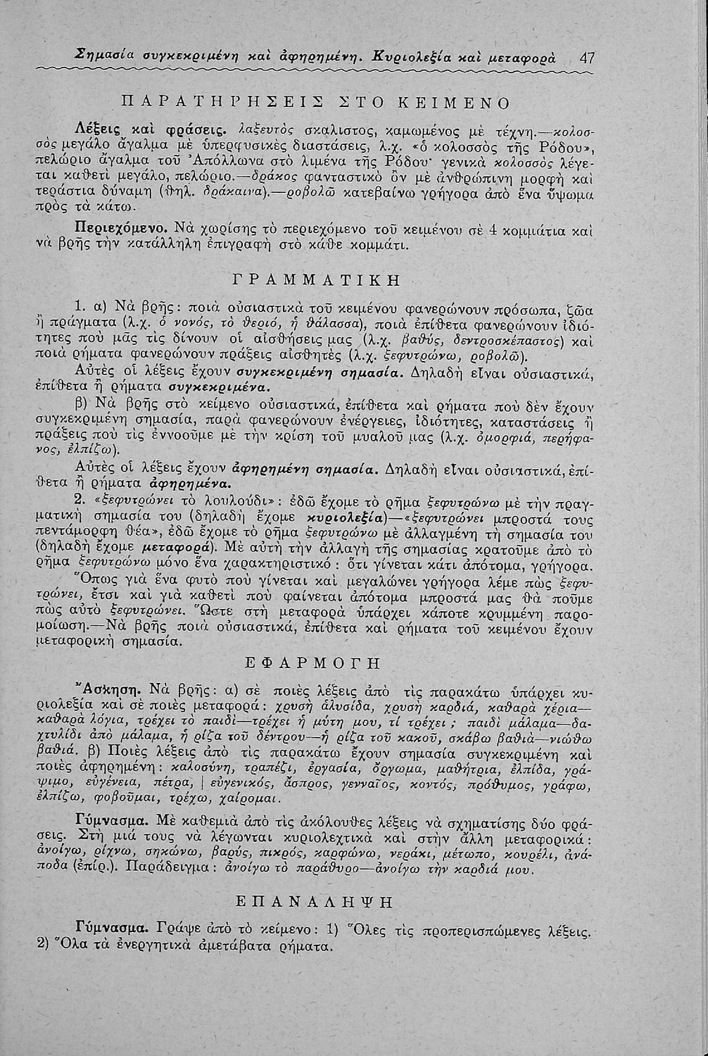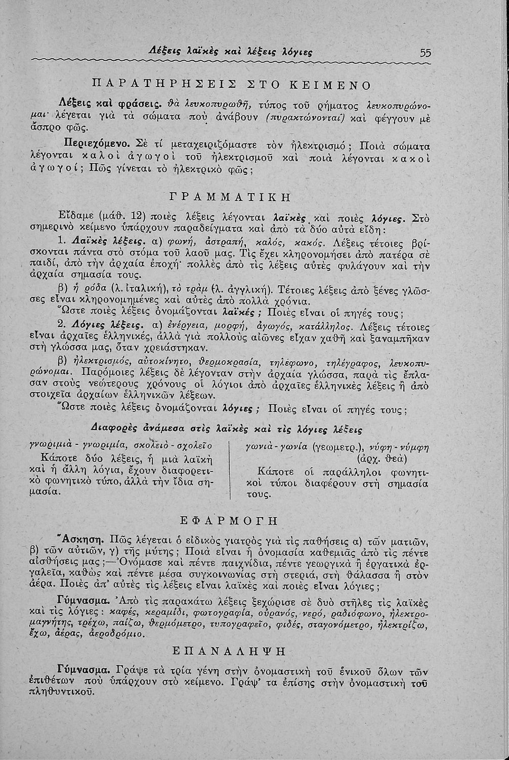 Μαθητικό βοήθημα Γλώσσας και Νέων Ελληνικών για μαθητές των Ε΄ και ΣΤ΄ Δημοτικού και Γυμνασίου που περιλαμβάνει πεζά και ποιήματα, προφορικές και γραπτές ασκήσεις, και βοηθητικούς γραμματικούς πίνακες για τη διδασκαλία των γραμματικών φαινομένων.