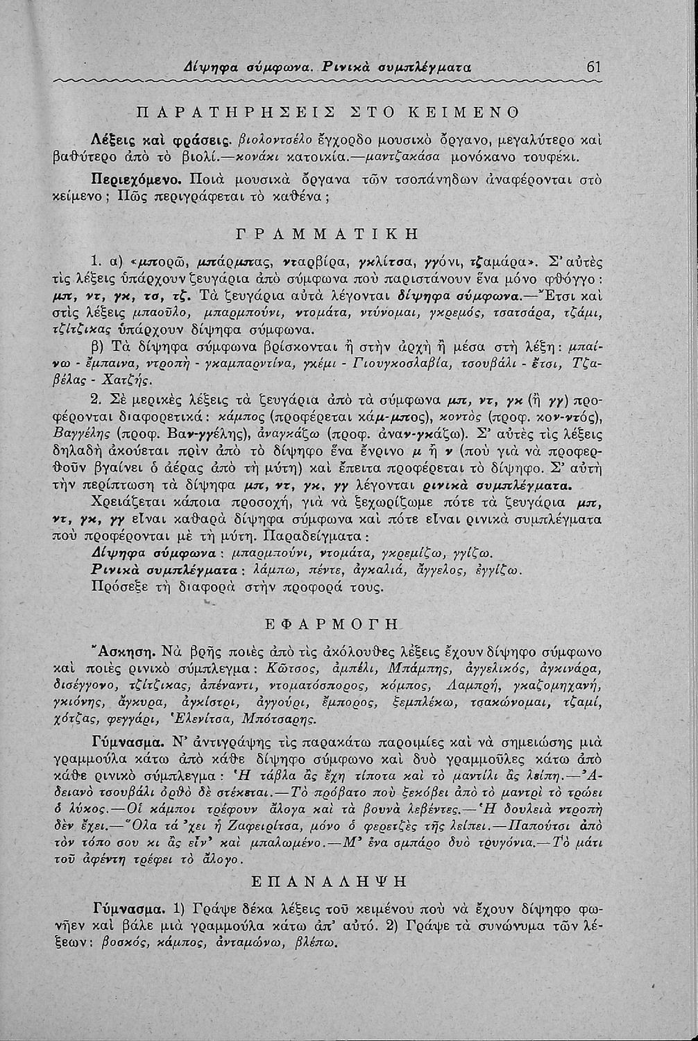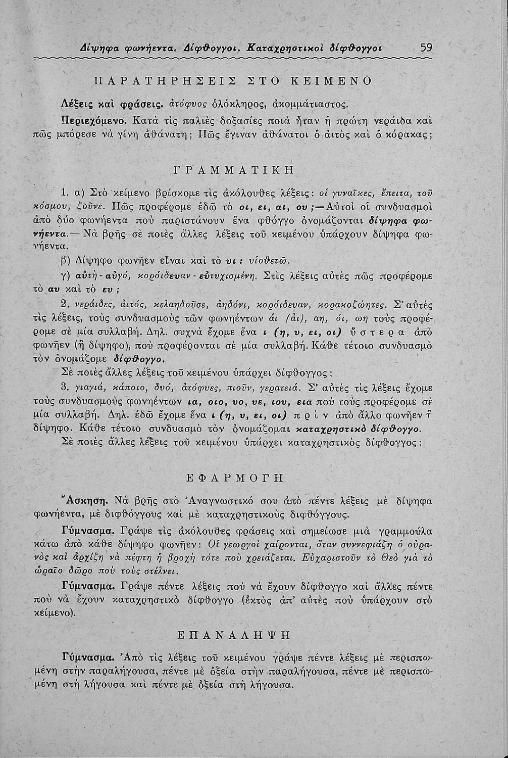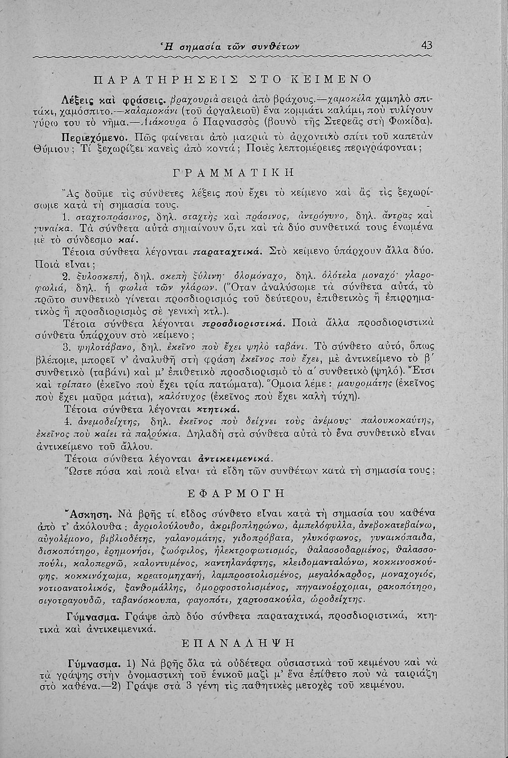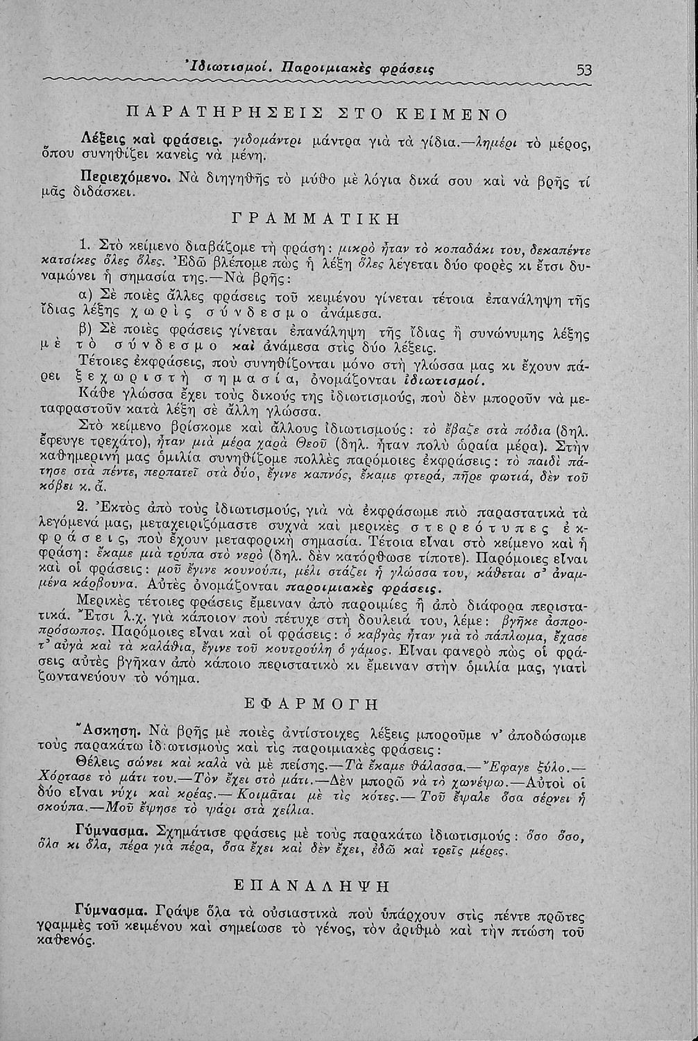 Μαθητικό βοήθημα Γλώσσας και Νέων Ελληνικών για μαθητές των Ε΄ και ΣΤ΄ Δημοτικού και Γυμνασίου που περιλαμβάνει πεζά και ποιήματα, προφορικές και γραπτές ασκήσεις, και βοηθητικούς γραμματικούς πίνακες για τη διδασκαλία των γραμματικών φαινομένων.