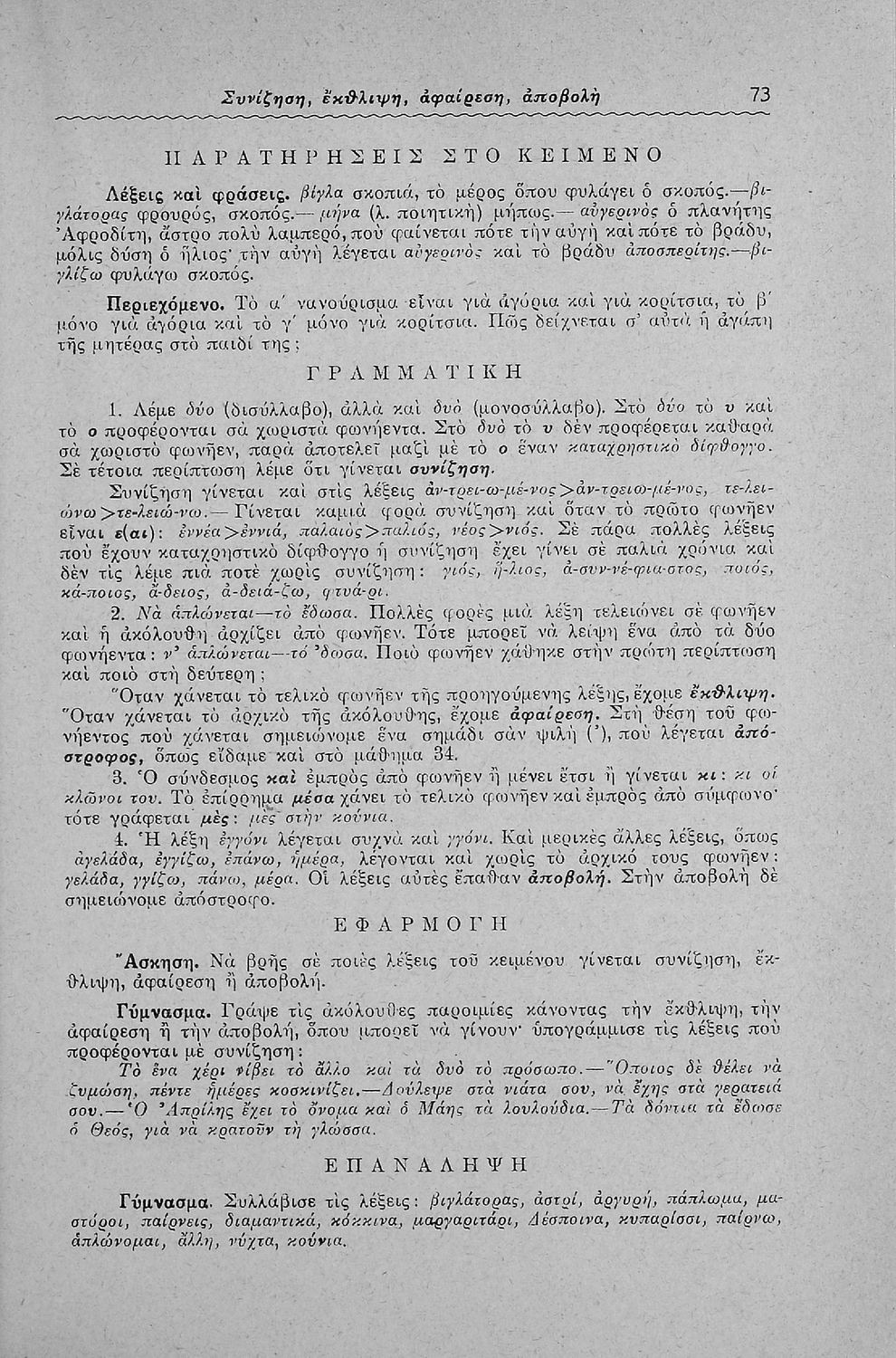 Μαθητικό βοήθημα Γλώσσας και Νέων Ελληνικών για μαθητές των Ε΄ και ΣΤ΄ Δημοτικού και Γυμνασίου που περιλαμβάνει πεζά και ποιήματα, προφορικές και γραπτές ασκήσεις, και βοηθητικούς γραμματικούς πίνακες για τη διδασκαλία των γραμματικών φαινομένων.