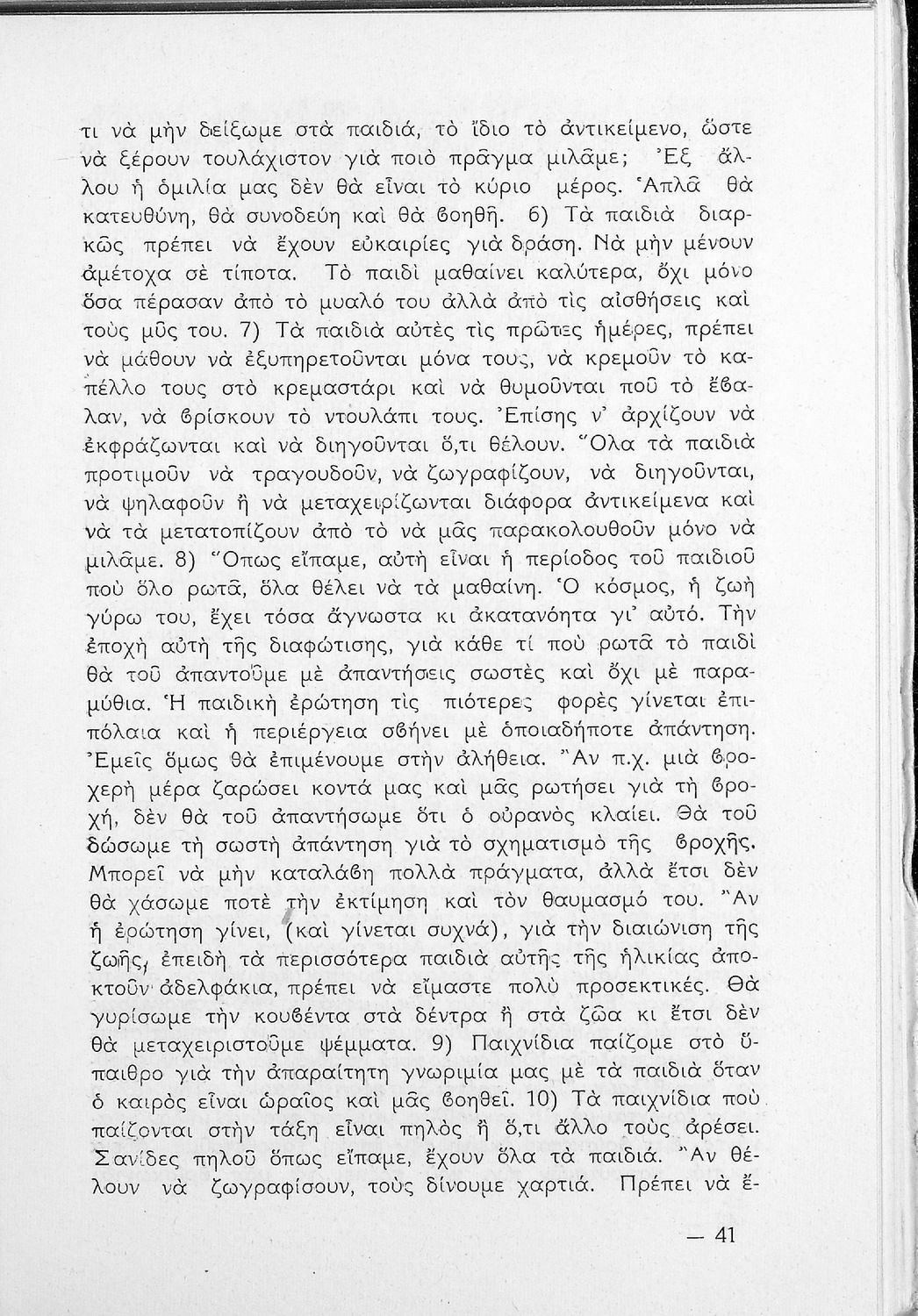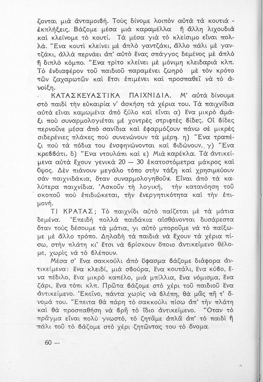 Παρουσίαση περιεχομένου: Εκπαιδευτικό βοήθημα που περιλαμβάνει γενικές οδηγίες για τον τρόπο διαχείρισης της σχολικής τάξης του νηπιαγωγείου, της μάθησης, της πρώτης γραφής, ανάγνωσης και αριθμητικής στα νήπια, καθώς επίσης και οδηγίες προετοιμασίας των νηπίων για το Νηπιαγωγείο.