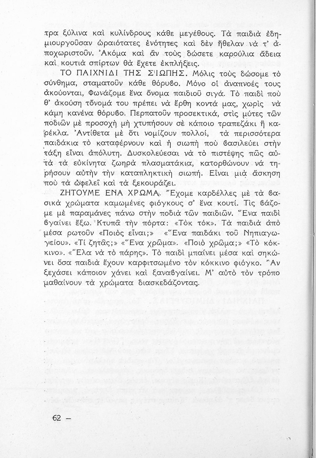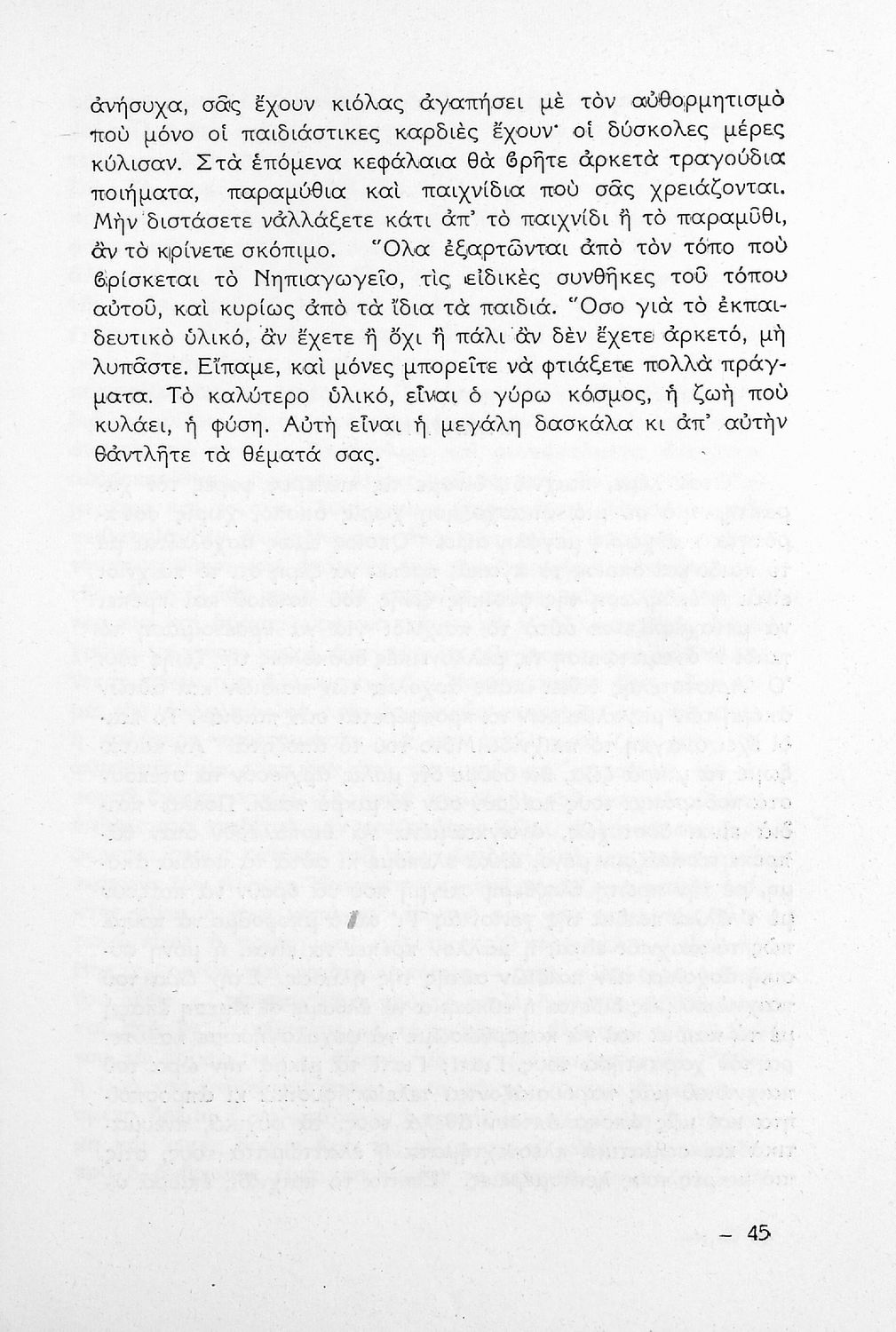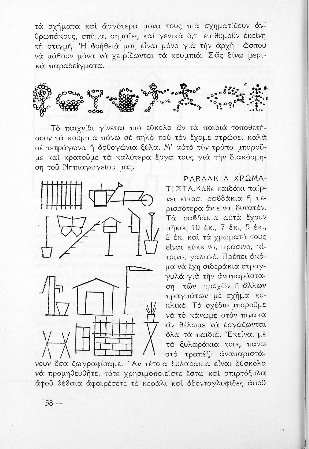 Εκπαιδευτικό βοήθημα που περιλαμβάνει γενικές οδηγίες για τον τρόπο διαχείρισης της σχολικής τάξης του νηπιαγωγείου, της μάθησης, της πρώτης γραφής, ανάγνωσης και αριθμητικής στα νήπια, καθώς επίσης και οδηγίες προετοιμασίας των νηπίων για το Νηπιαγωγείο.