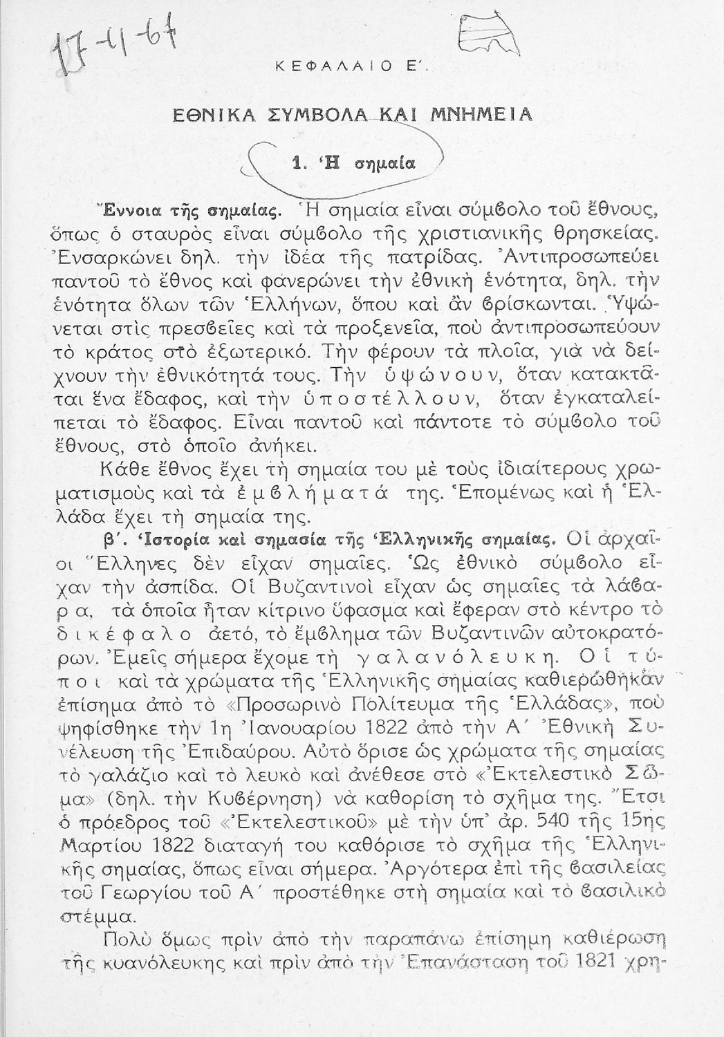 Σχολικό εγχειρίδιο Αγωγής του Πολίτη Ε΄ Δημοτικού που εστιάζει στις έννοιες της πατρίδας, της ελληνικής γλώσσας, της θρησκείας, της οικογένειας, της εκπαίδευσης, των εθνικών συμβόλων και στα έργα επιφανών Ελλήνων.