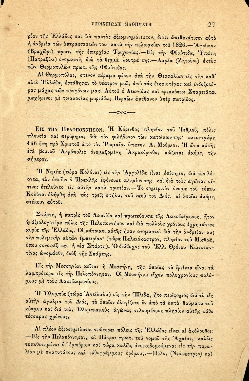 Τίτλος: Γεωγραφίας στοιχειώδη μαθήματα προς χρήσιν των Δημοτικών Σχολείων