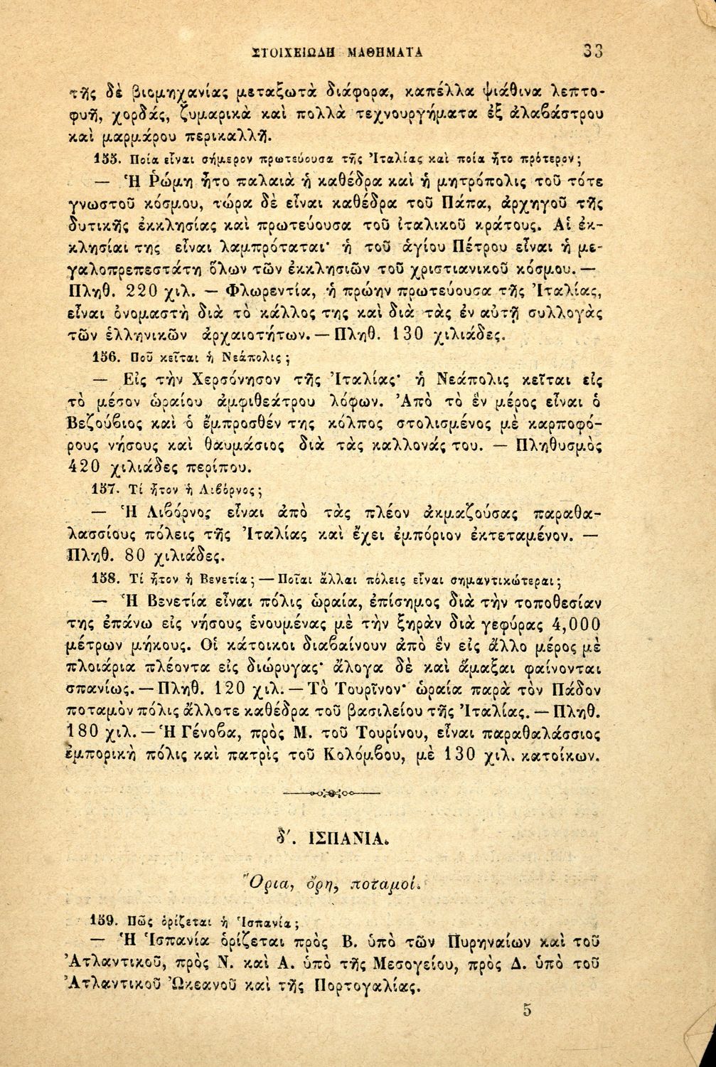 Σχολικό εγχειρίδιο Γεωγραφίας για τους μαθητές του Δημοτικού που περιέχει στοιχεία μαθηματικής και φυσικής γεωμετρίας και μια γενική επισκόπηση της πολιτικής, οικονομικής και φυσικής γεωγραφίας της Ελλάδας, ...