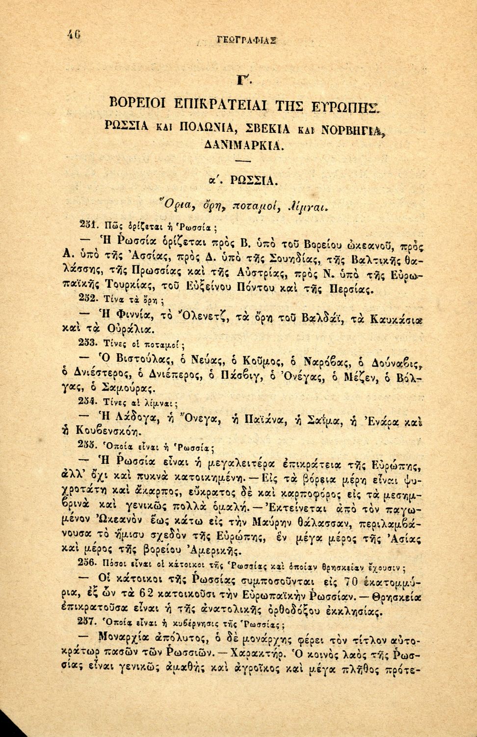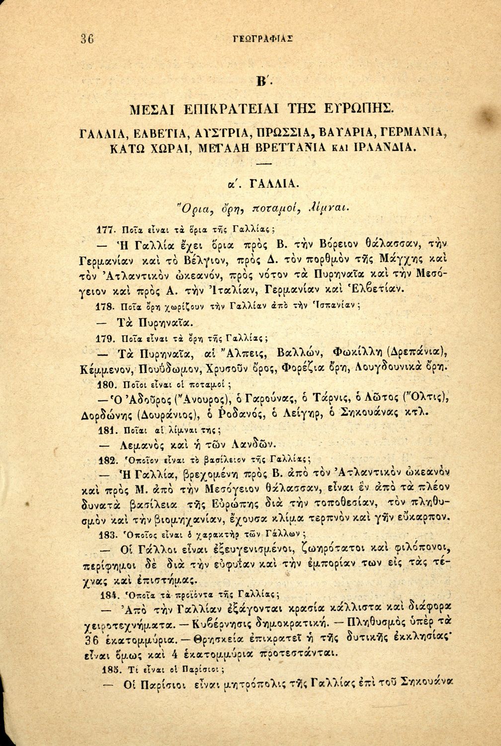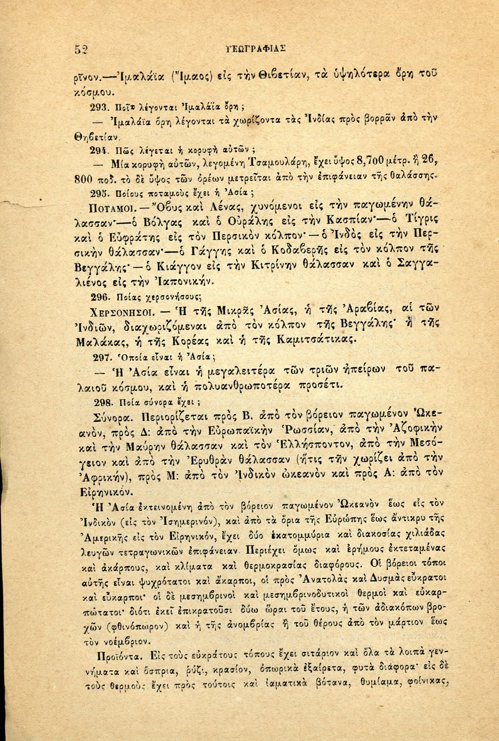 Σχολικό εγχειρίδιο Γεωγραφίας για τα Ελληνικά Σχολεία που περιλαμβάνει εισαγωγή στις βασικές έννοιες και ορισμούς της επιστήμης, και στοιχεία μαθηματικής, φυσικής και πολιτικής γεωγραφίας των πέντε ηπείρων.