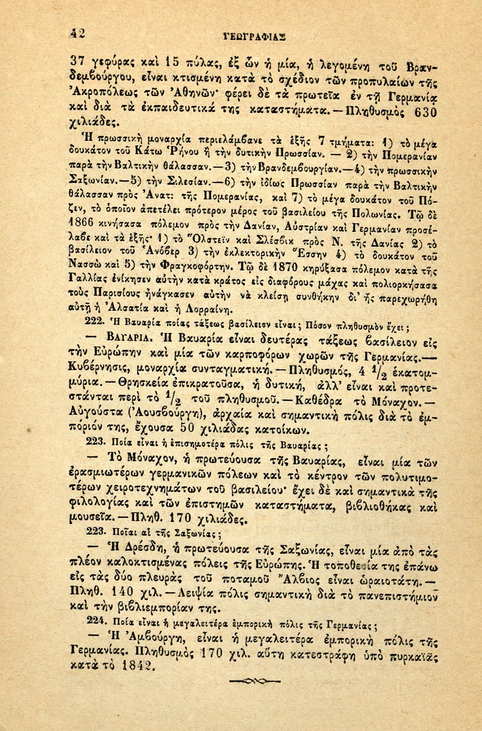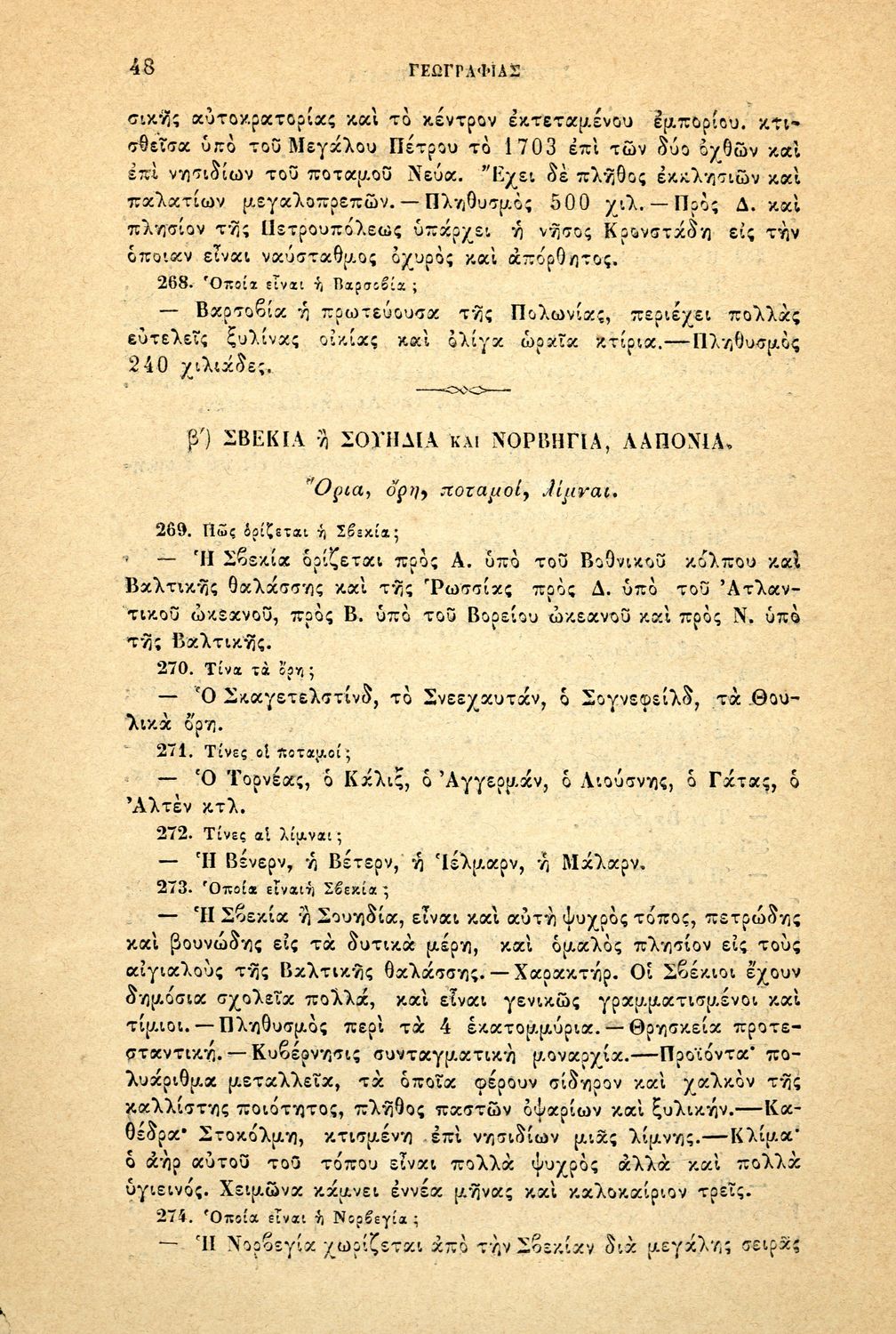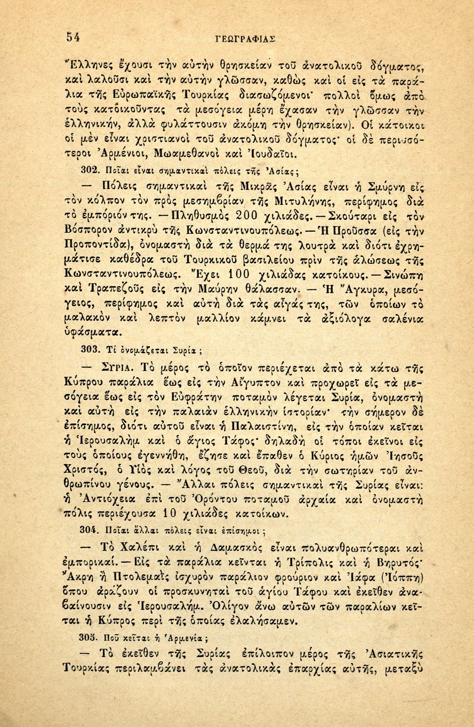 Σχολικό εγχειρίδιο Γεωγραφίας για τα Δημοτικά και τα Παρθεναγωγεία που περιέχει αναλυτική περιγραφή των συνοικιών της Κωνσταντινούπολης και τη γεωμορφολογία της Θράκης.
