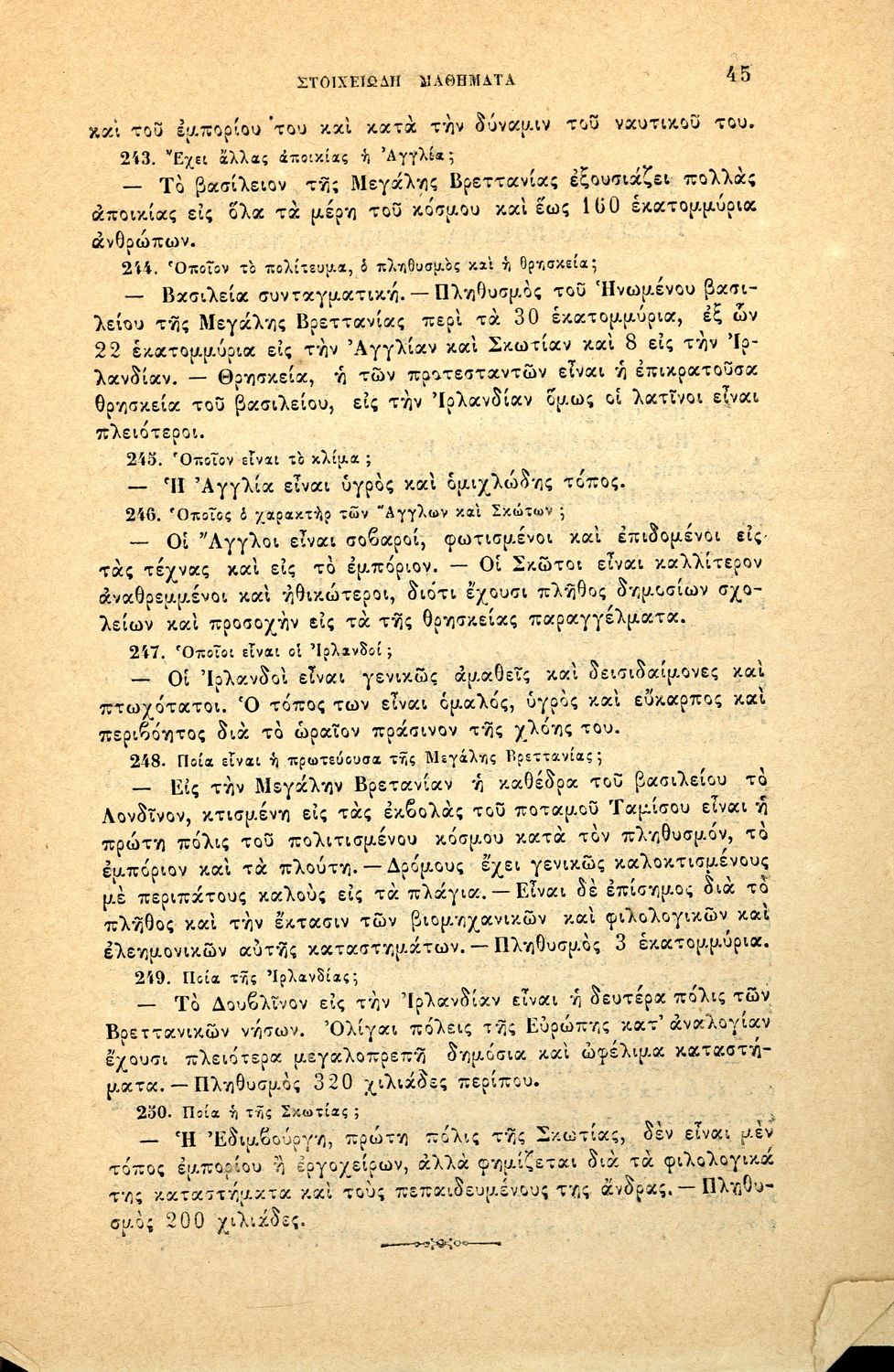 Σχολικό εγχειρίδιο Γεωγραφίας για τους μαθητές του Δημοτικού που περιέχει στοιχεία μαθηματικής και φυσικής γεωμετρίας και μια γενική επισκόπηση της πολιτικής, οικονομικής και φυσικής γεωγραφίας της Ελλάδας, ...