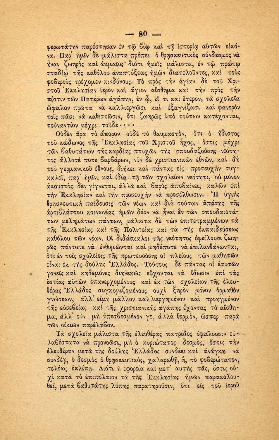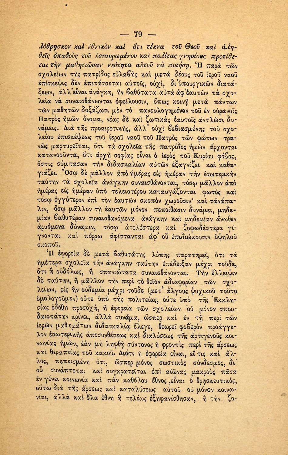 Σχολικό εγχειρίδιο Αρχαίων Ελληνικών για τα Ιερατικά Σχολεία. Ο τόμος περιέχει: «Γραμματικάς γυμνάσεις, Μύθους του Αισώπου και Φιλοσόφων ανέκδοτα, εκ των λόγων του θείου Χρυσόστομου τους περί προσευχής και τον