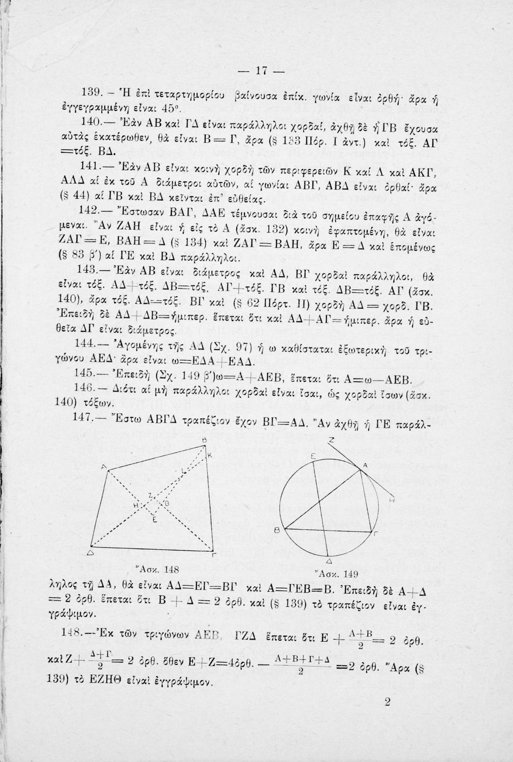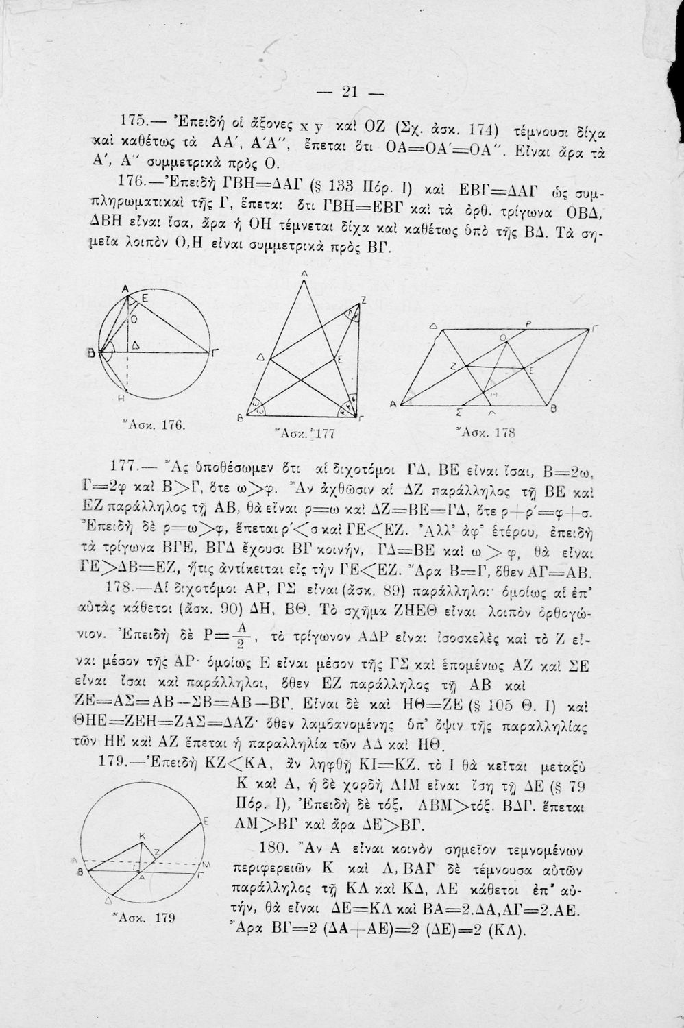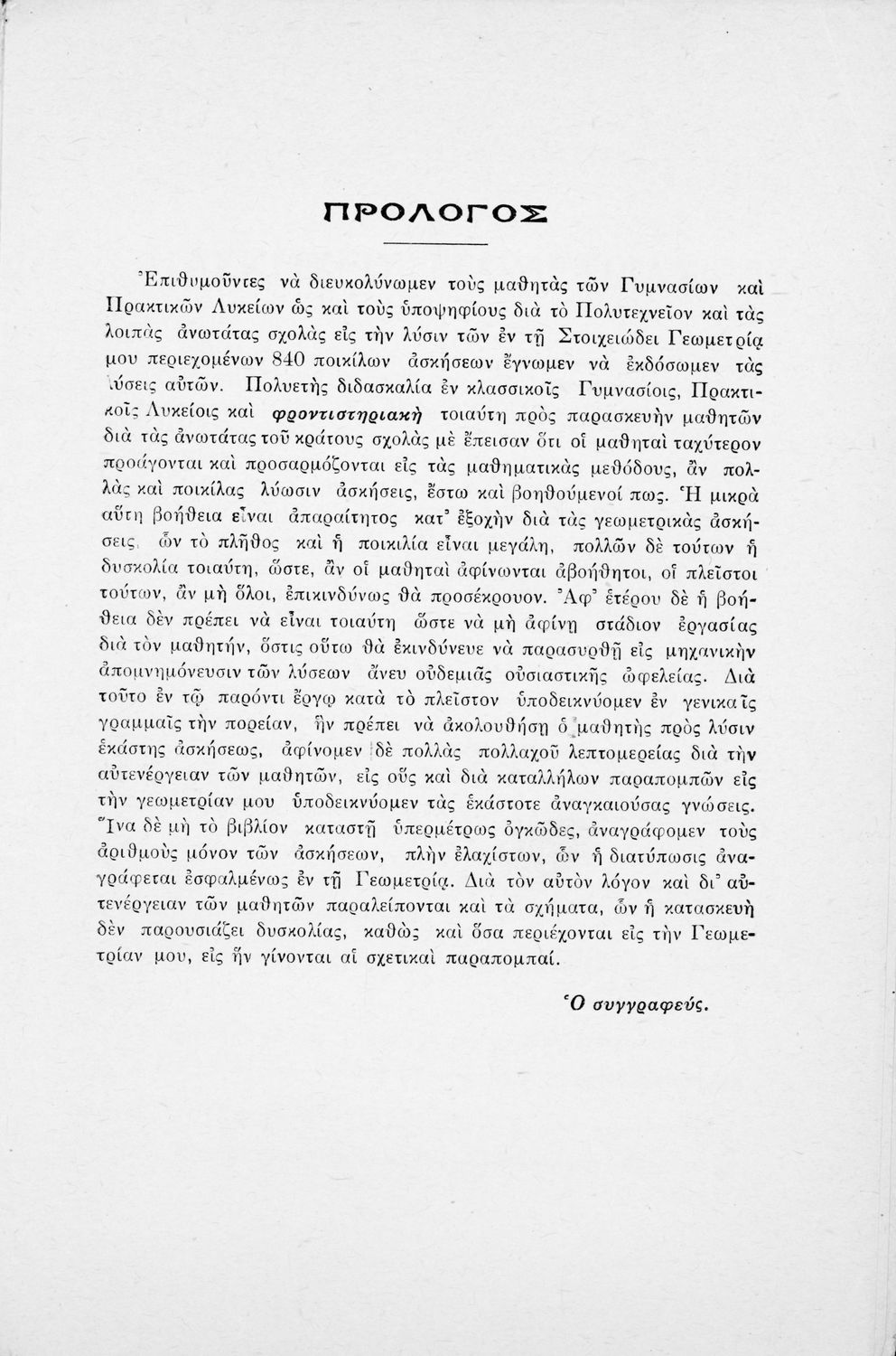 Βαθμίδα εκπαίδευσης: Δευτεροβάθμια Τάξη: Γυμνάσιο / Πρακτικό Λύκειο Μάθημα: Γεωμετρία Γλώσσα: Καθαρεύουσα Παρουσίαση περιεχομένου: Μαθητικό βοήθημα Γεωμετρίας για τα Γυμνάσια και Πρακτικά Λύκεια που αποτελείται από ασκήσεις και τις λύσεις τους. |