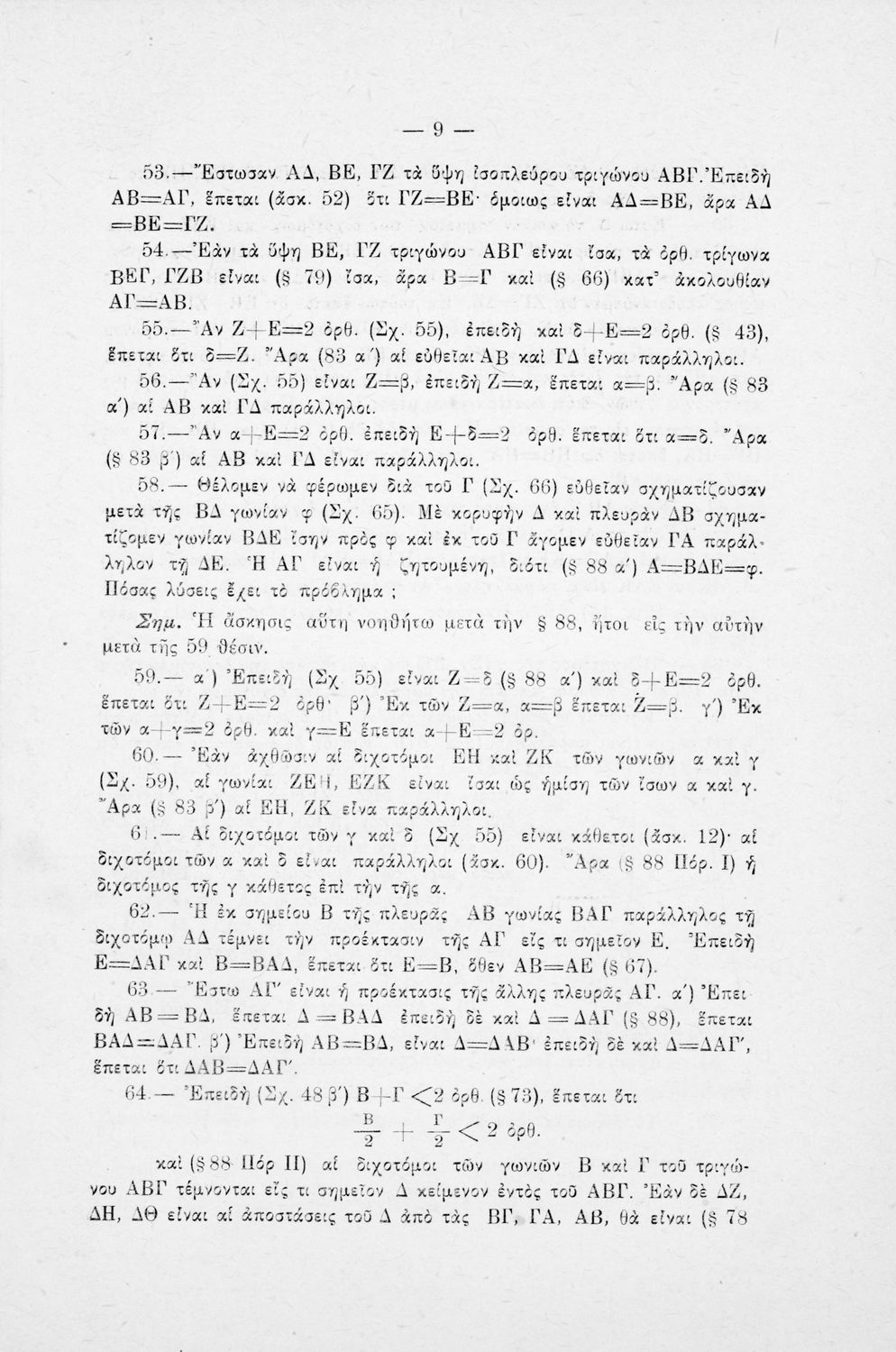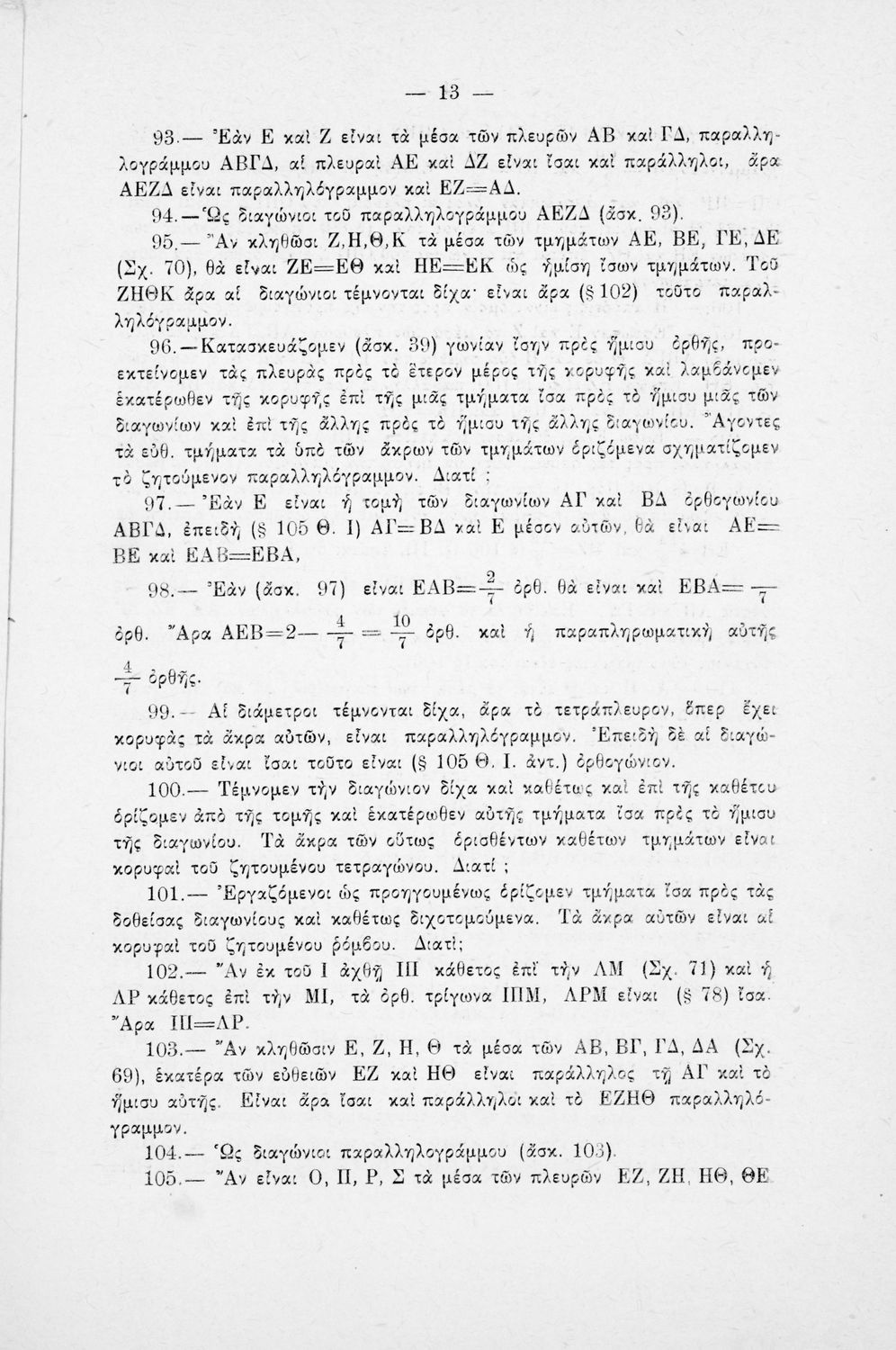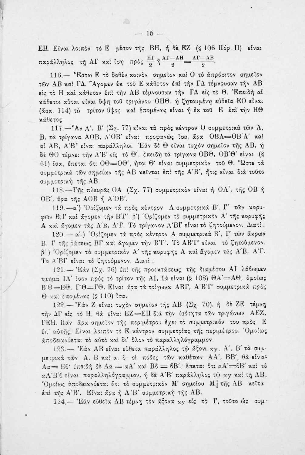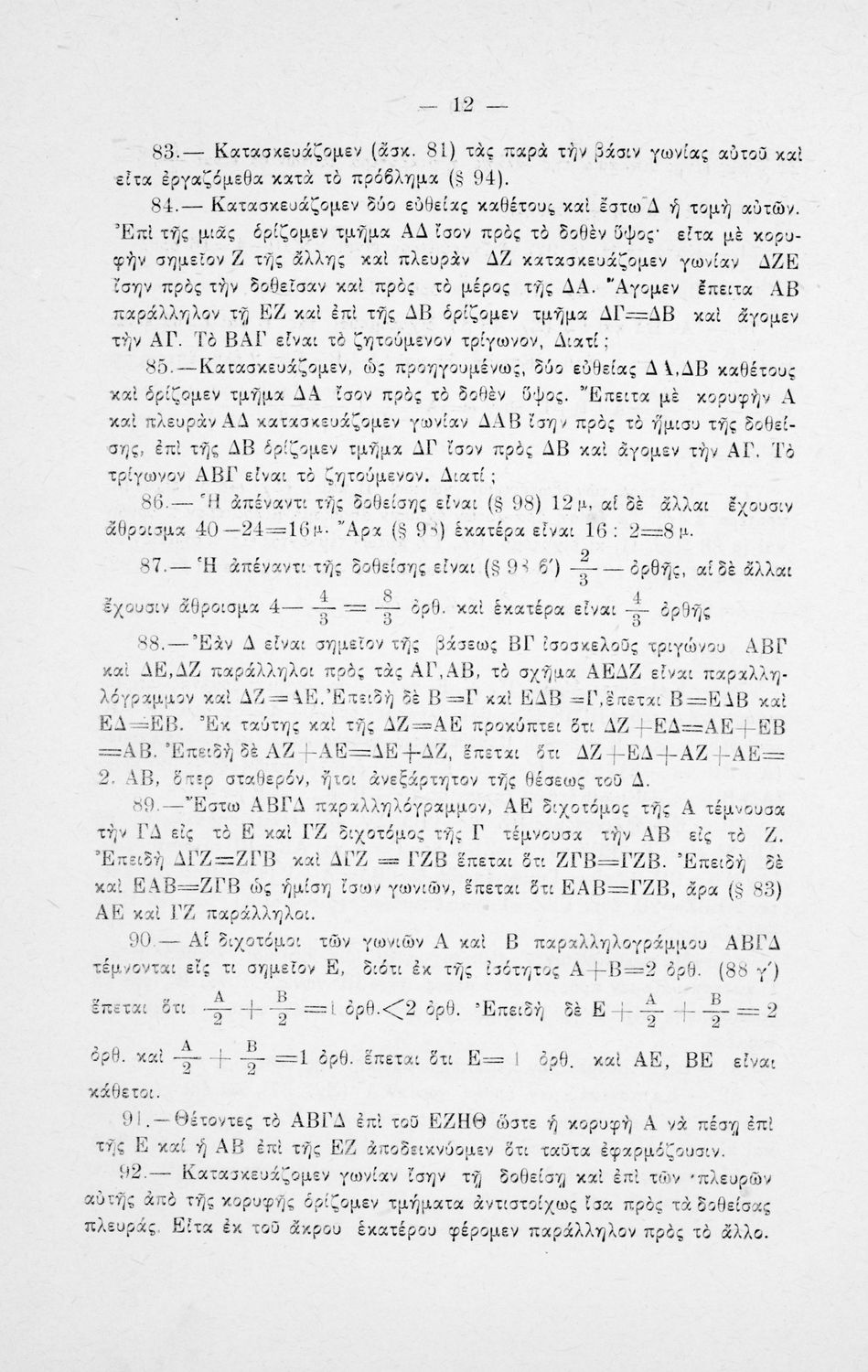 Βαθμίδα εκπαίδευσης: Δευτεροβάθμια Τάξη: Γυμνάσιο / Πρακτικό Λύκειο Μάθημα: Γεωμετρία Γλώσσα: Καθαρεύουσα Παρουσίαση περιεχομένου: Μαθητικό βοήθημα Γεωμετρίας για τα Γυμνάσια και Πρακτικά Λύκεια που αποτελείται από ασκήσεις και τις λύσεις τους. |