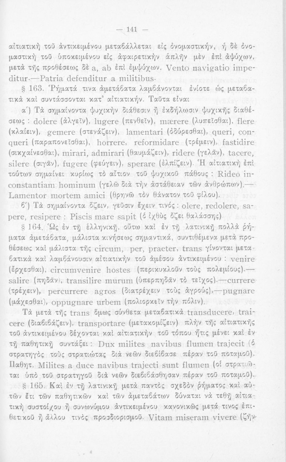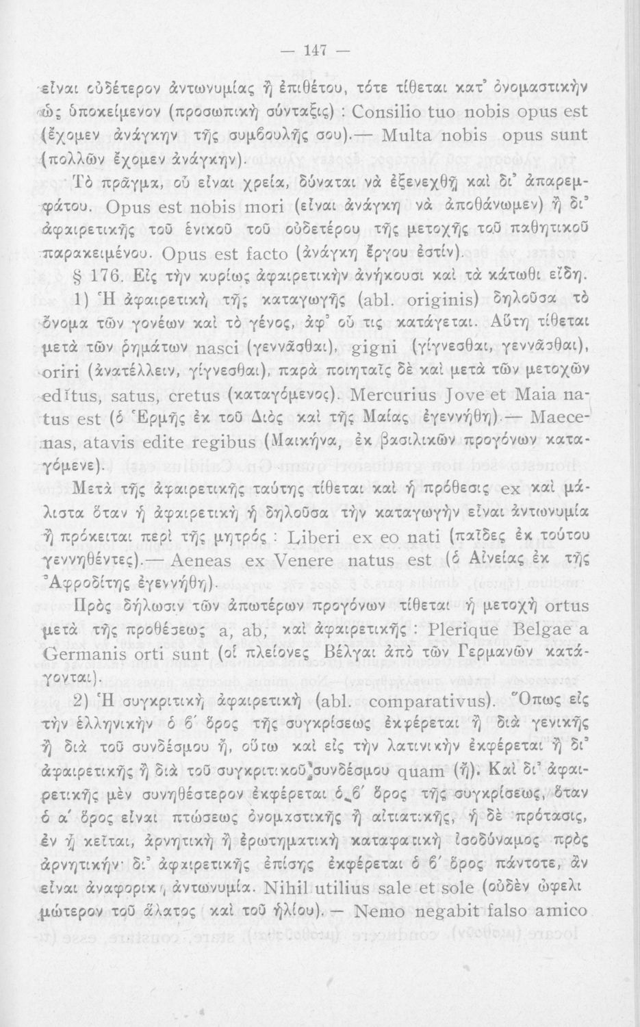 Σχολικό εγχειρίδιο Λατινικών Α΄, Β΄, Γ' Γυμνασίου που περιλαμβάνει γραμματική και συντακτικό και είναι χωρισμένο σε φθογγολογικό, τυπολογικό και ετυμολογικό μέρος.