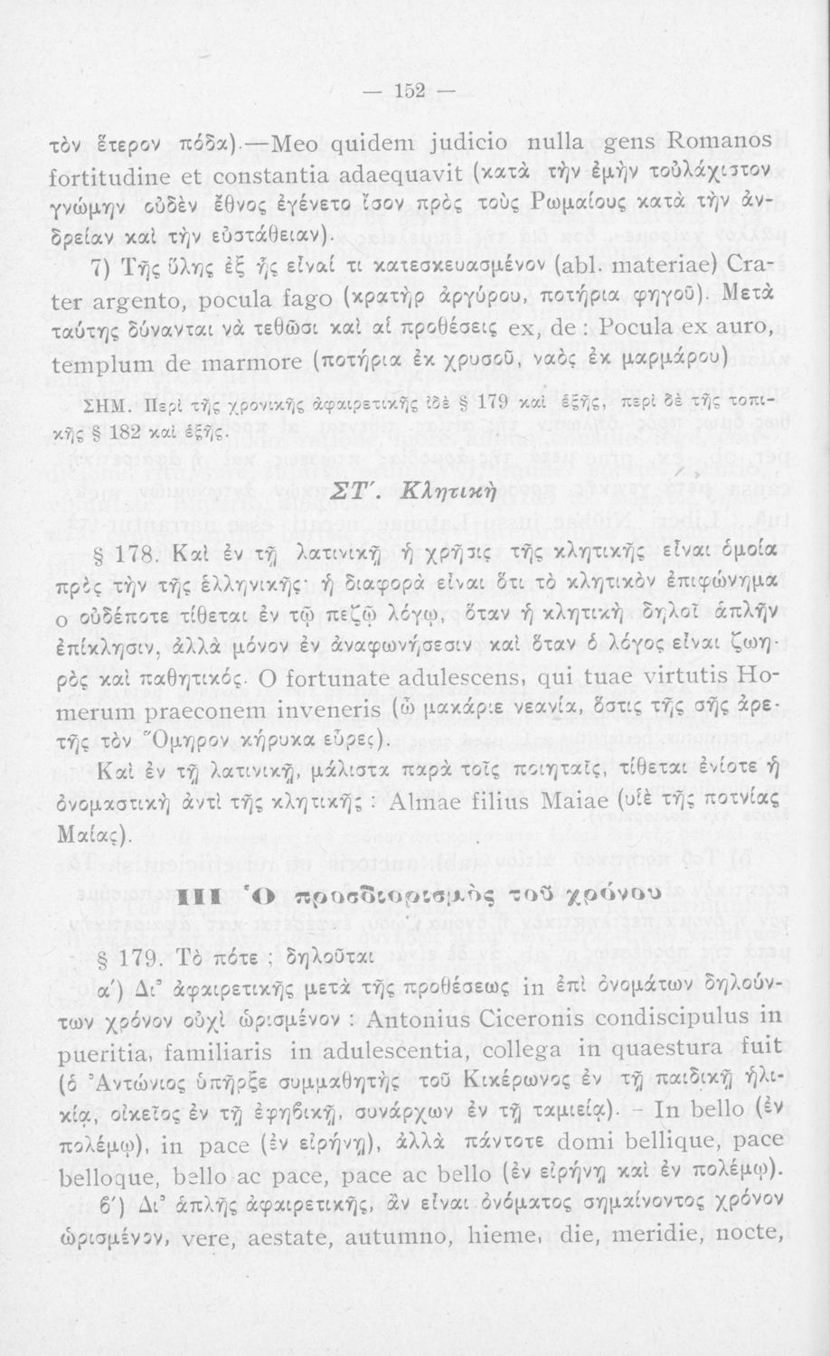 Σχολικό εγχειρίδιο Λατινικών που περιλαμβάνει τη γραμματική της λατινικής και είναι χωρισμένο στο τεχνολογικό, το τυπολογικό και το ετυμολογικό μέρος.