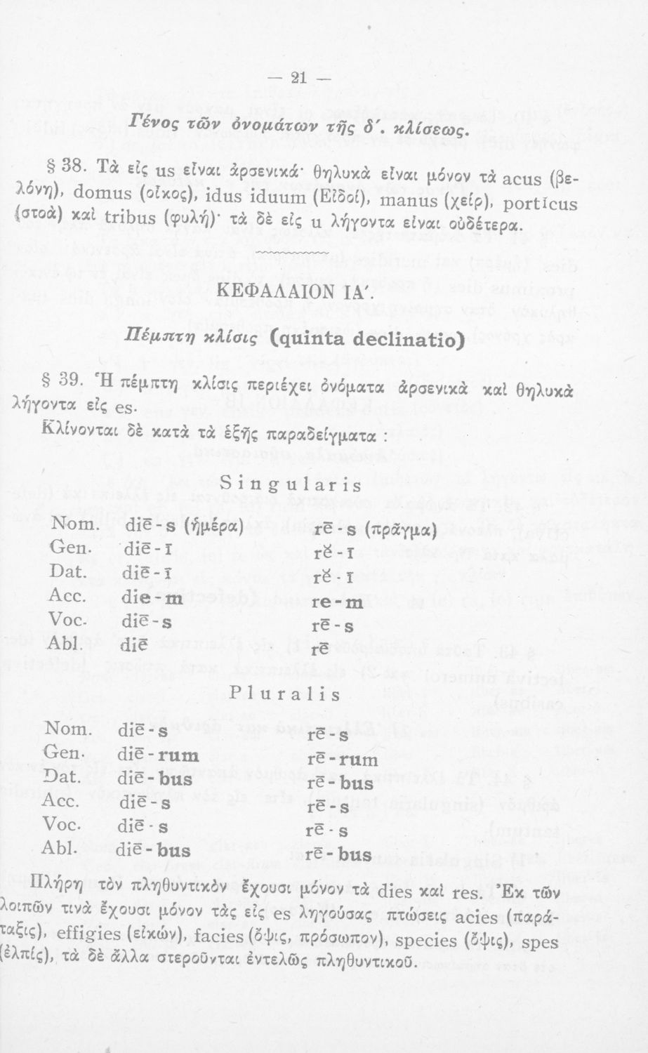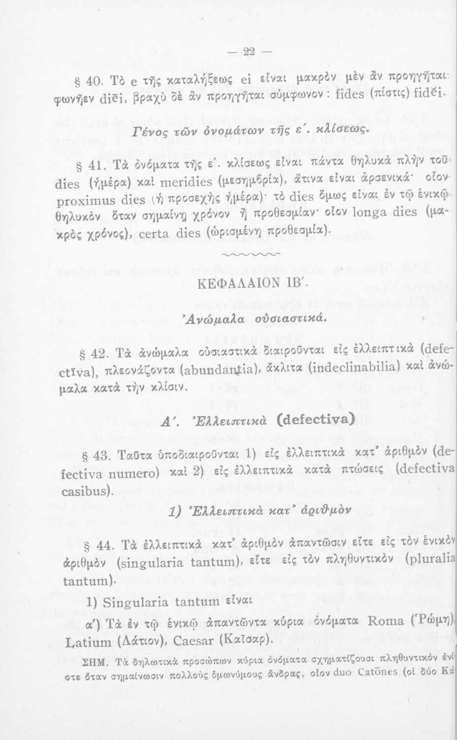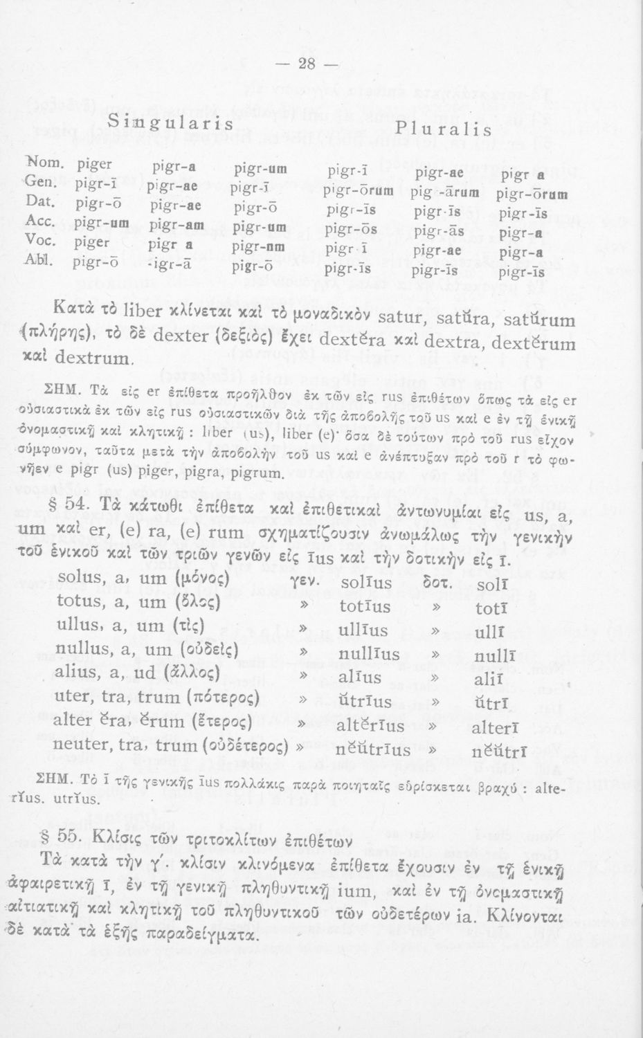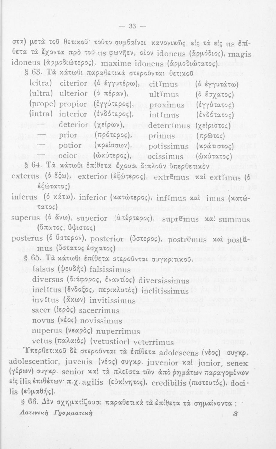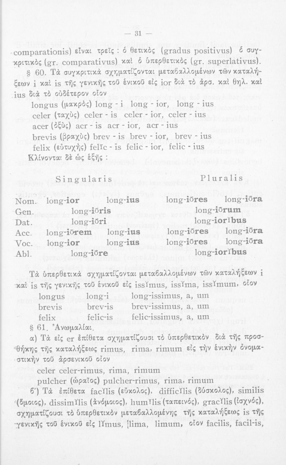 520 ## _aΣχολικό εγχειρίδιο Λατινικών που περιλαμβάνει τη γραμματική της λατινικής και είναι χωρισμένο στο φθογγολογικό, το τυπολογικό και το ετυμολογικό μέρος. Περιέχει και τους συντακτικούς κανόνες και τέσσερα παραρτήματα (Ρωμαϊκό ημερολόγιο, συντετμημένες λέξεις, Ρωμαϊκά νομίσματα, μέτρα και σταθμά και προσωδία - μετρική).