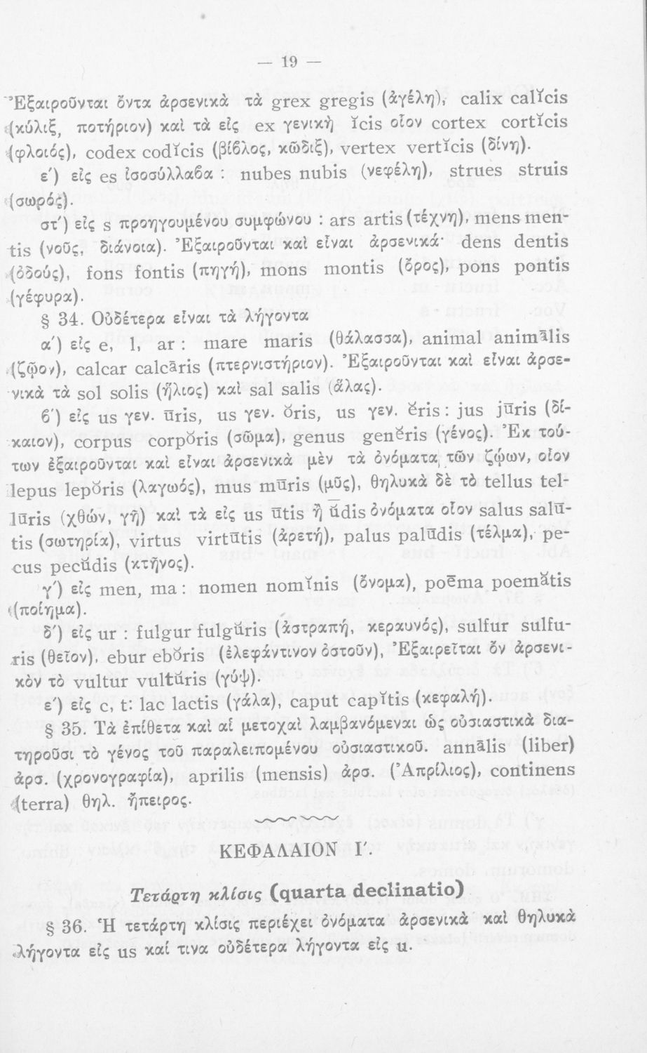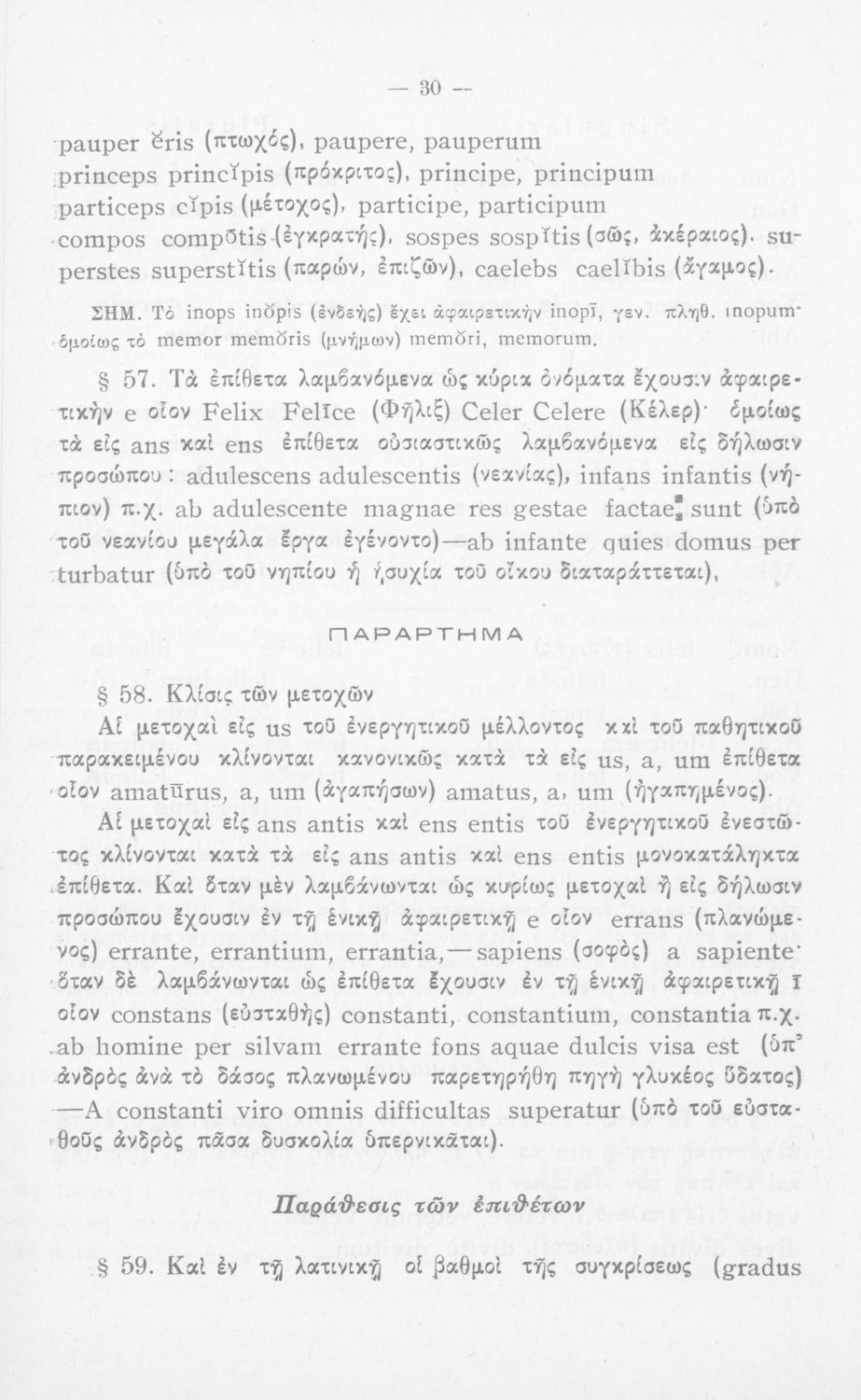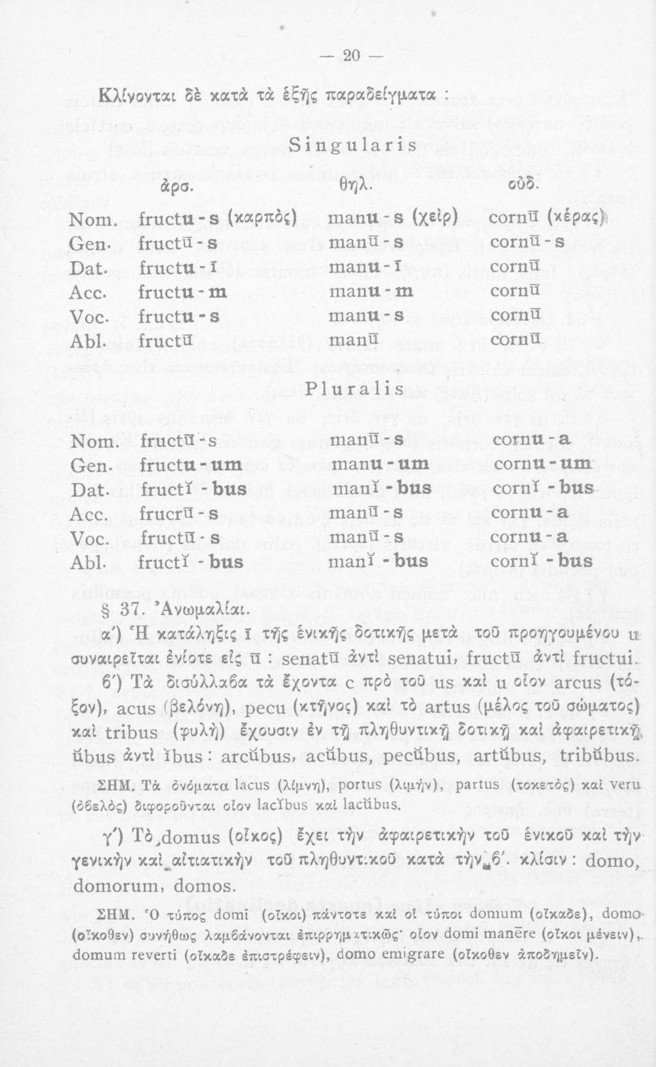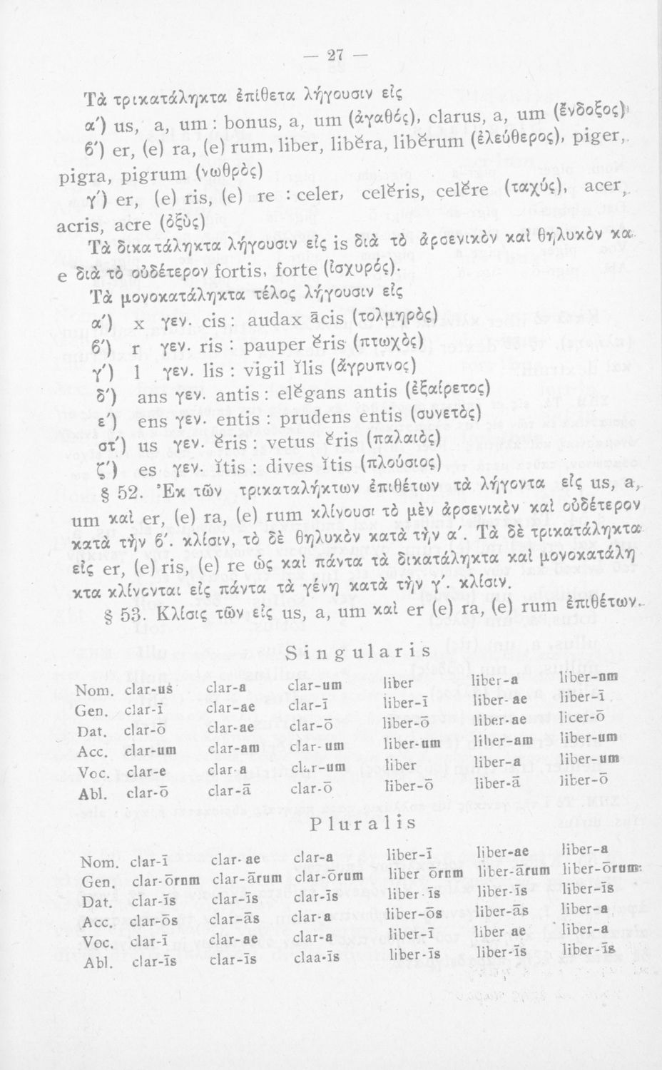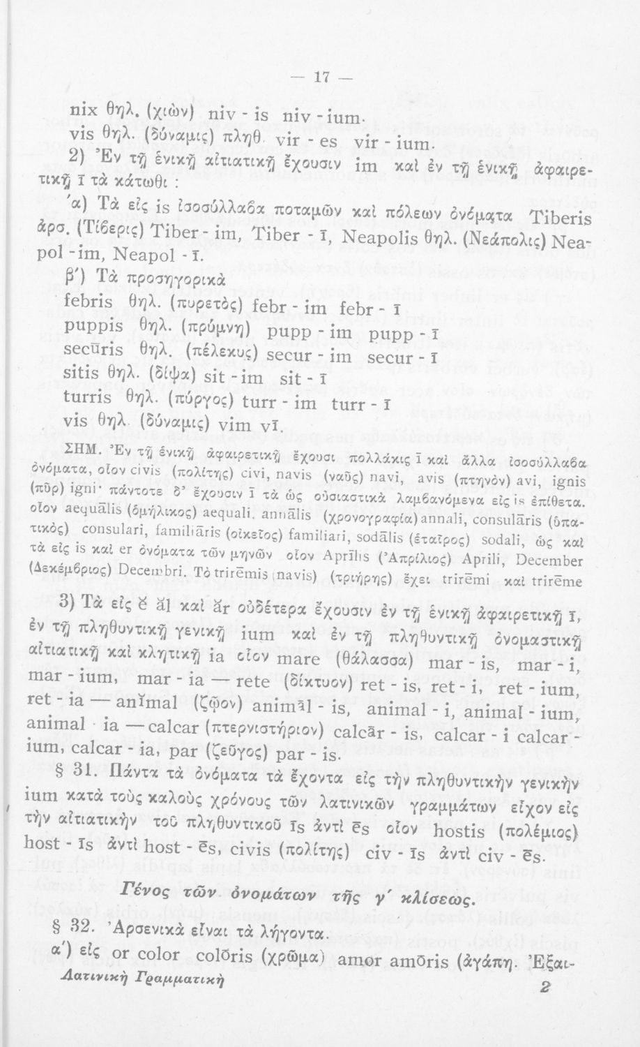 520 ## _aΣχολικό εγχειρίδιο Λατινικών που περιλαμβάνει τη γραμματική της λατινικής και είναι χωρισμένο στο φθογγολογικό, το τυπολογικό και το ετυμολογικό μέρος. Περιέχει και τους συντακτικούς κανόνες και τέσσερα παραρτήματα (Ρωμαϊκό ημερολόγιο, συντετμημένες λέξεις, Ρωμαϊκά νομίσματα, μέτρα και σταθμά και προσωδία - μετρική).