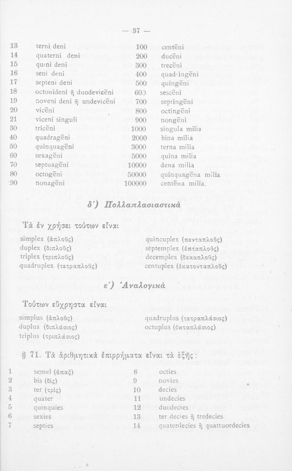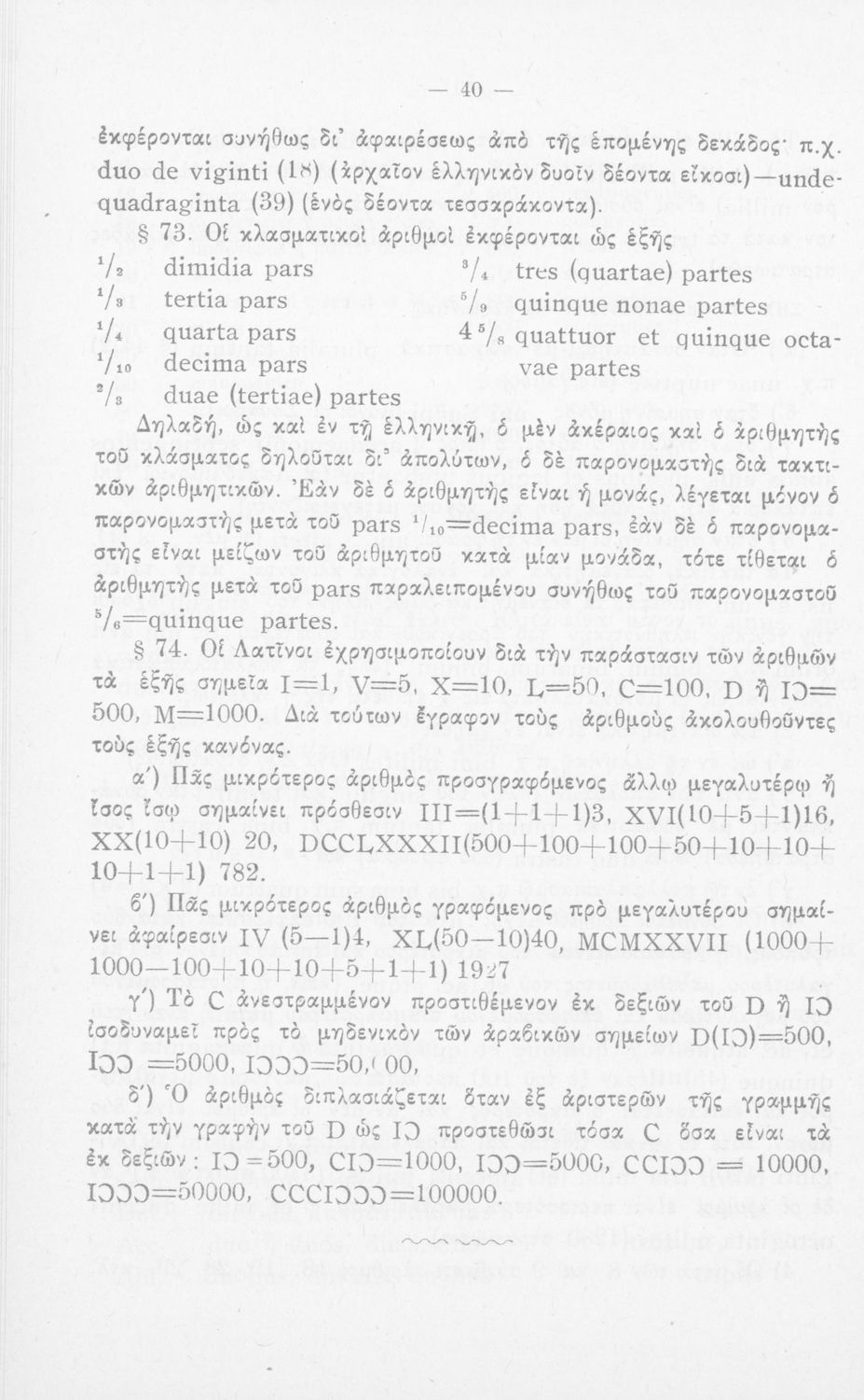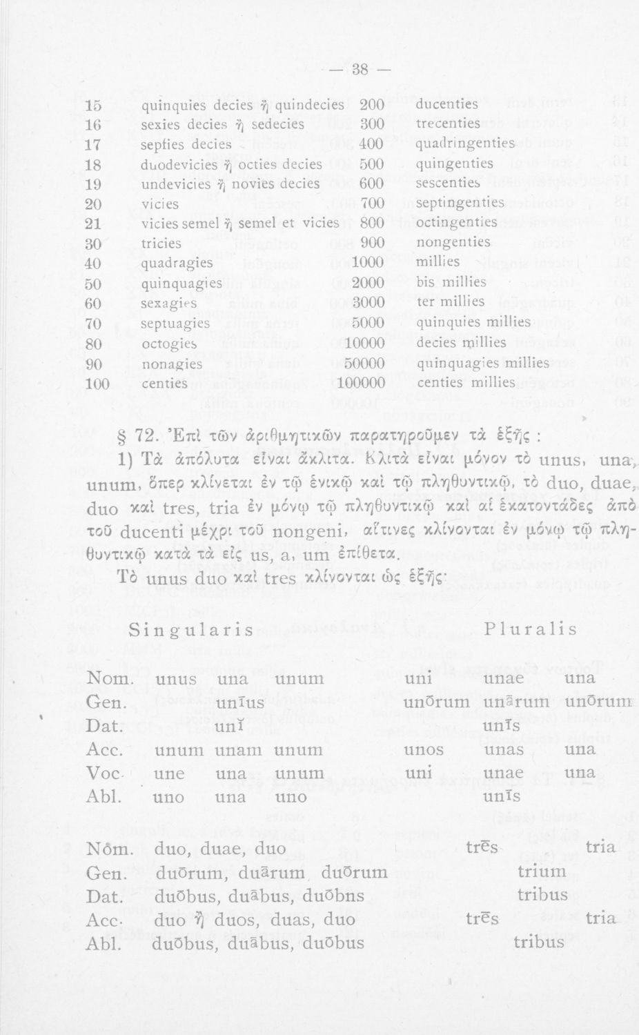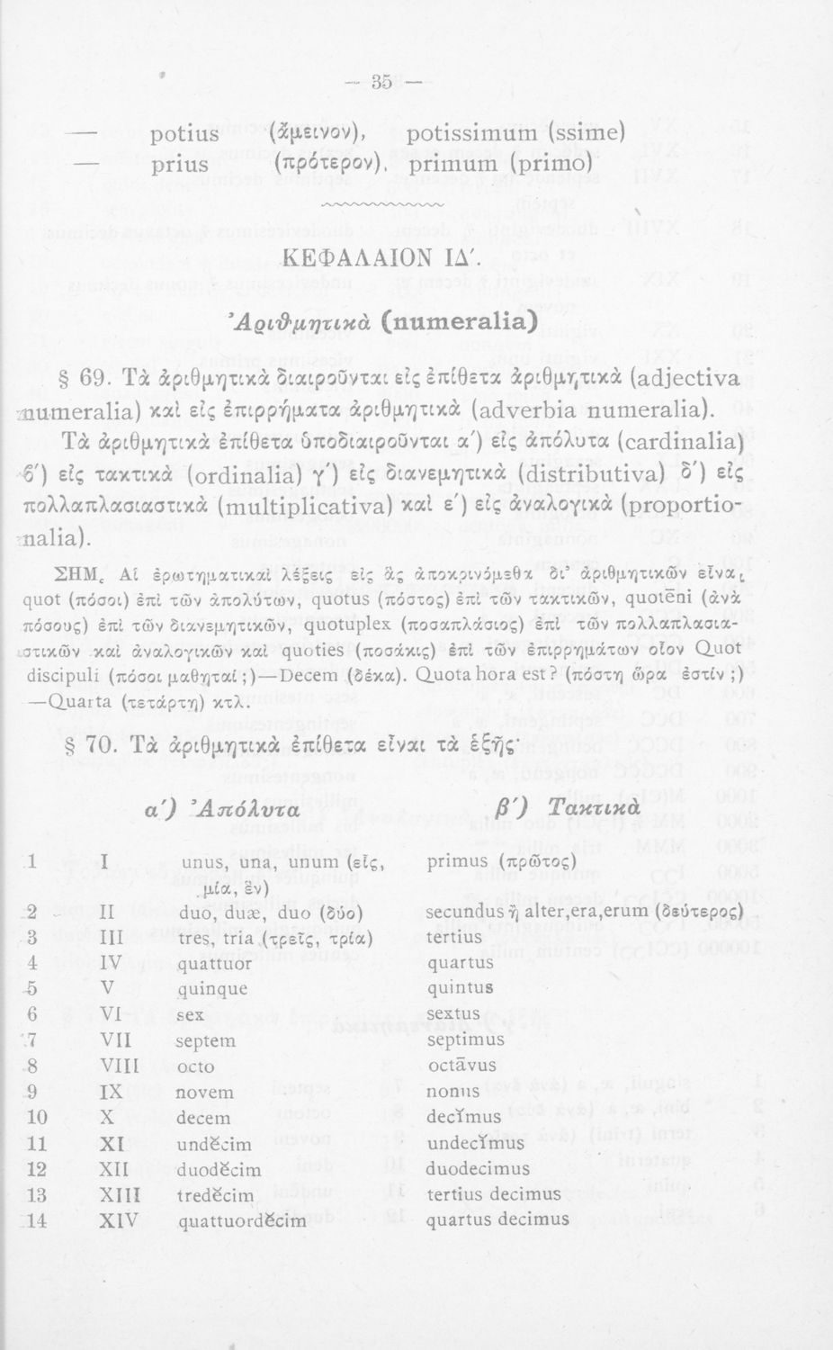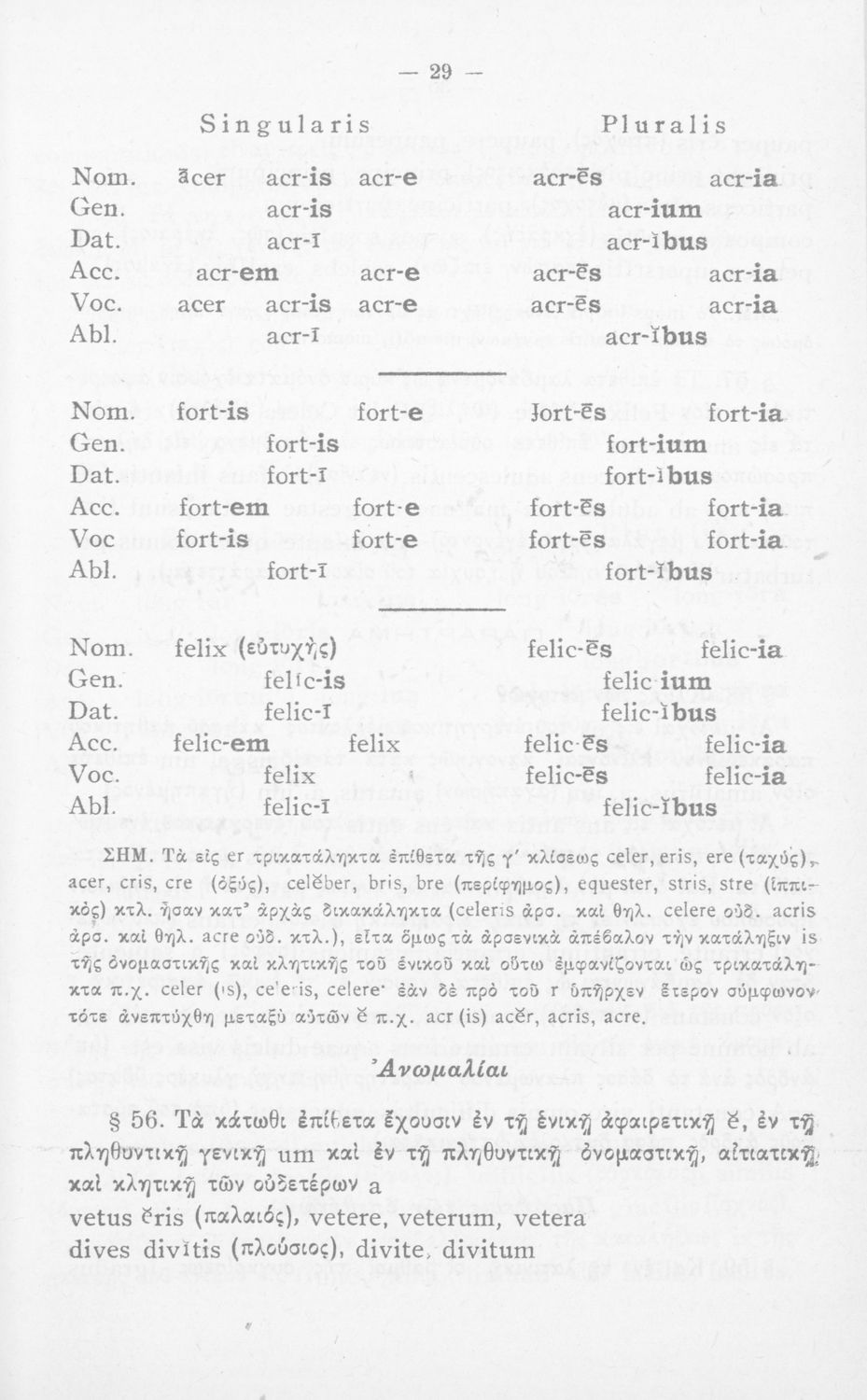 520 ## _aΣχολικό εγχειρίδιο Λατινικών που περιλαμβάνει τη γραμματική της λατινικής και είναι χωρισμένο στο φθογγολογικό, το τυπολογικό και το ετυμολογικό μέρος. Περιέχει και τους συντακτικούς κανόνες και τέσσερα παραρτήματα (Ρωμαϊκό ημερολόγιο, συντετμημένες λέξεις, Ρωμαϊκά νομίσματα, μέτρα και σταθμά και προσωδία - μετρική).