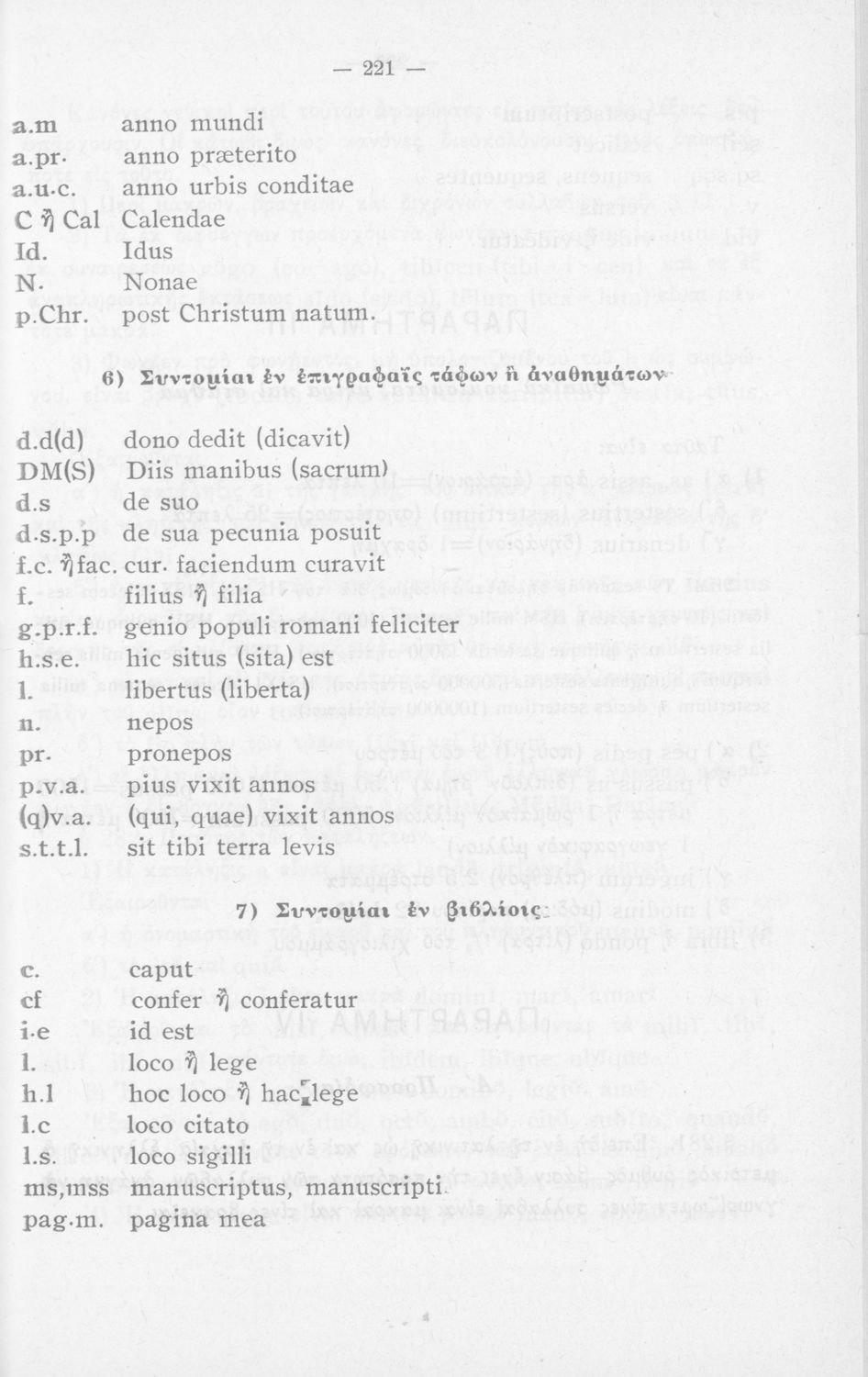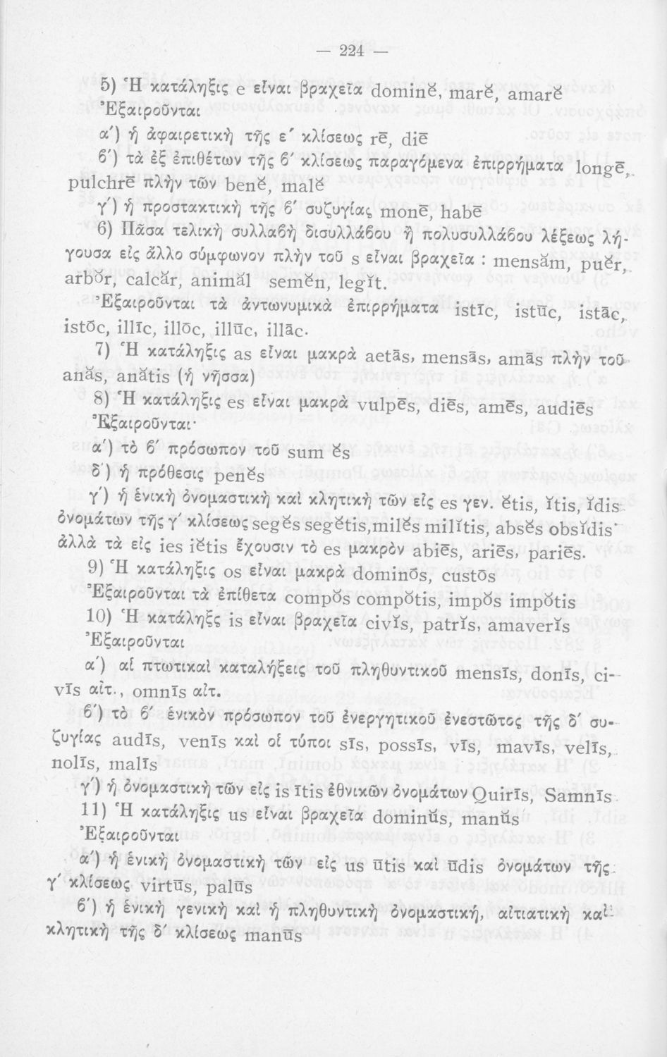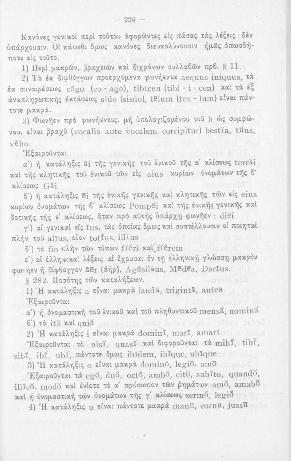 Σχολικό εγχειρίδιο Λατινικών που περιλαμβάνει τη γραμματική της λατινικής και είναι χωρισμένο στο τεχνολογικό, το τυπολογικό και το ετυμολογικό μέρος.
