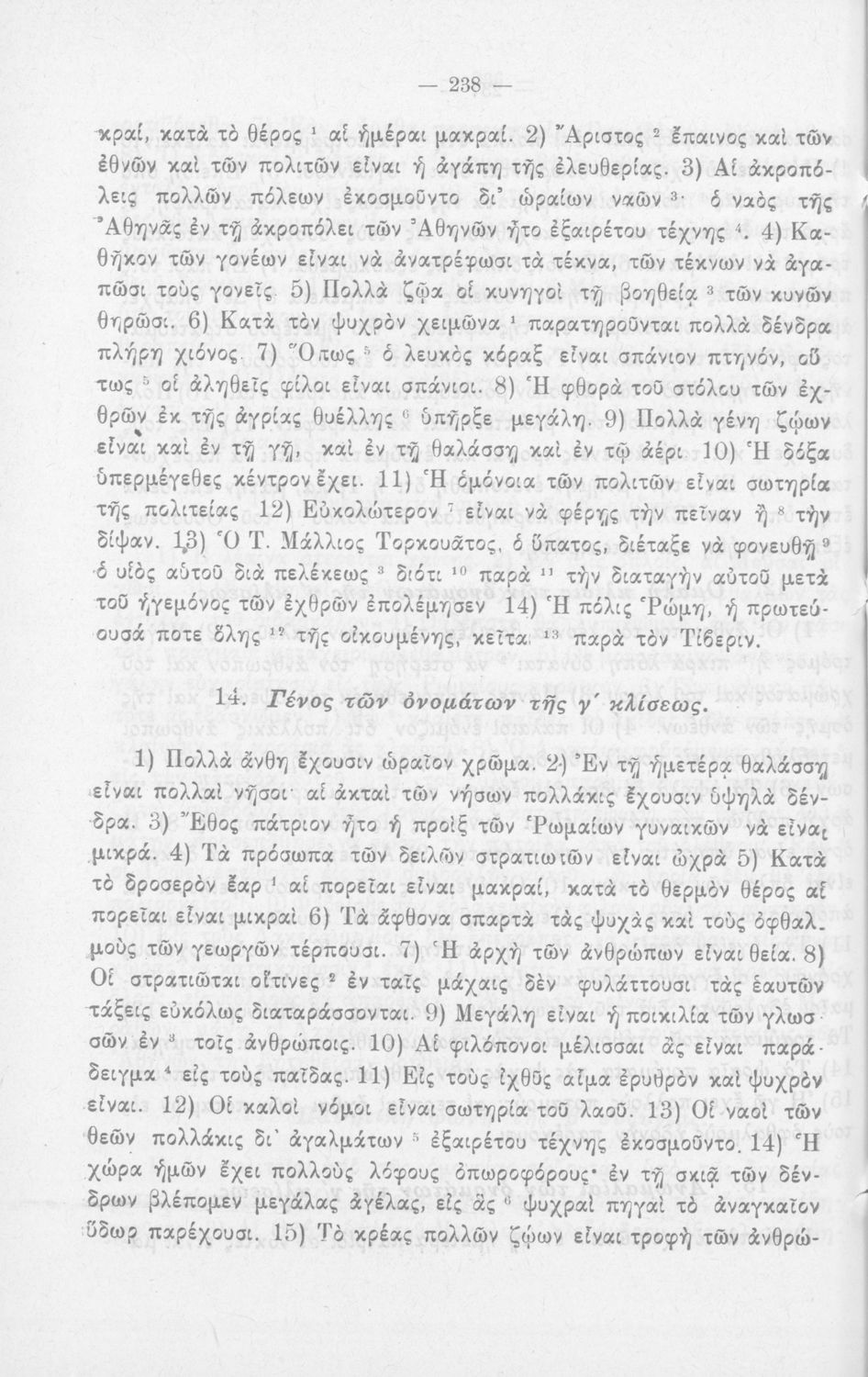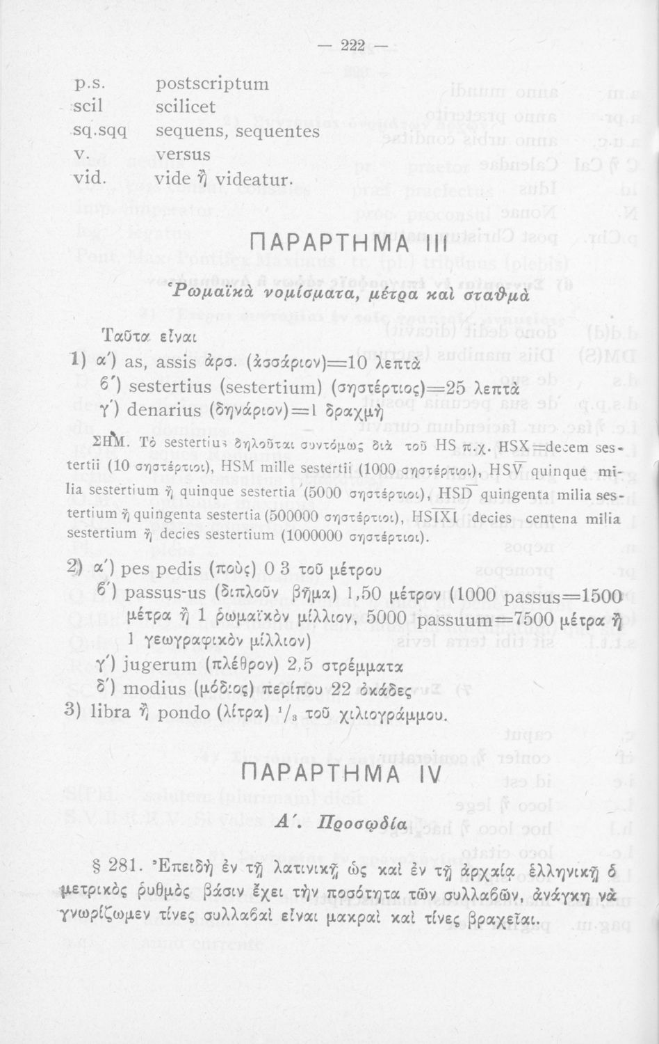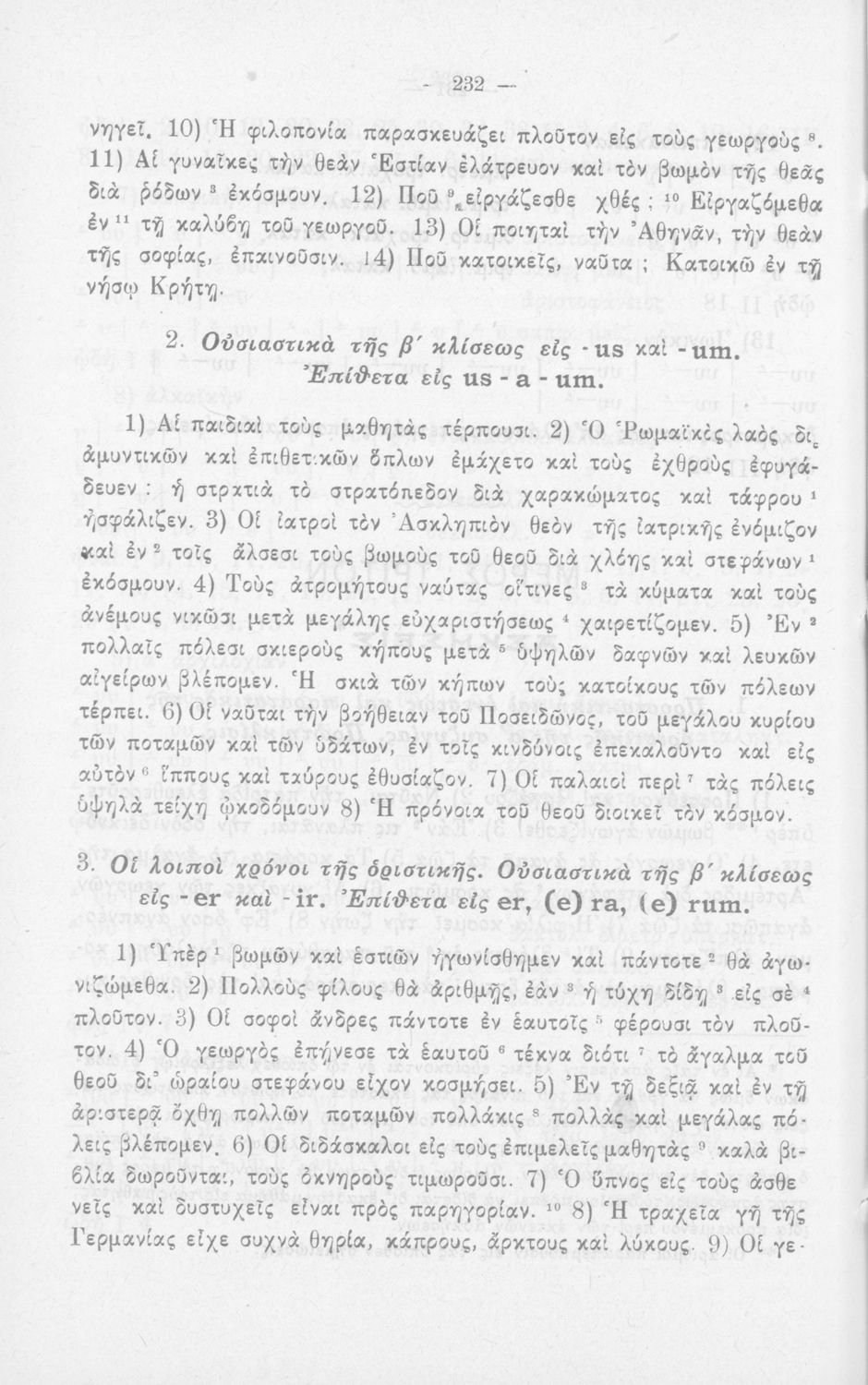 Σχολικό εγχειρίδιο Λατινικών που περιλαμβάνει τη γραμματική της λατινικής και είναι χωρισμένο στο τεχνολογικό, το τυπολογικό και το ετυμολογικό μέρος.