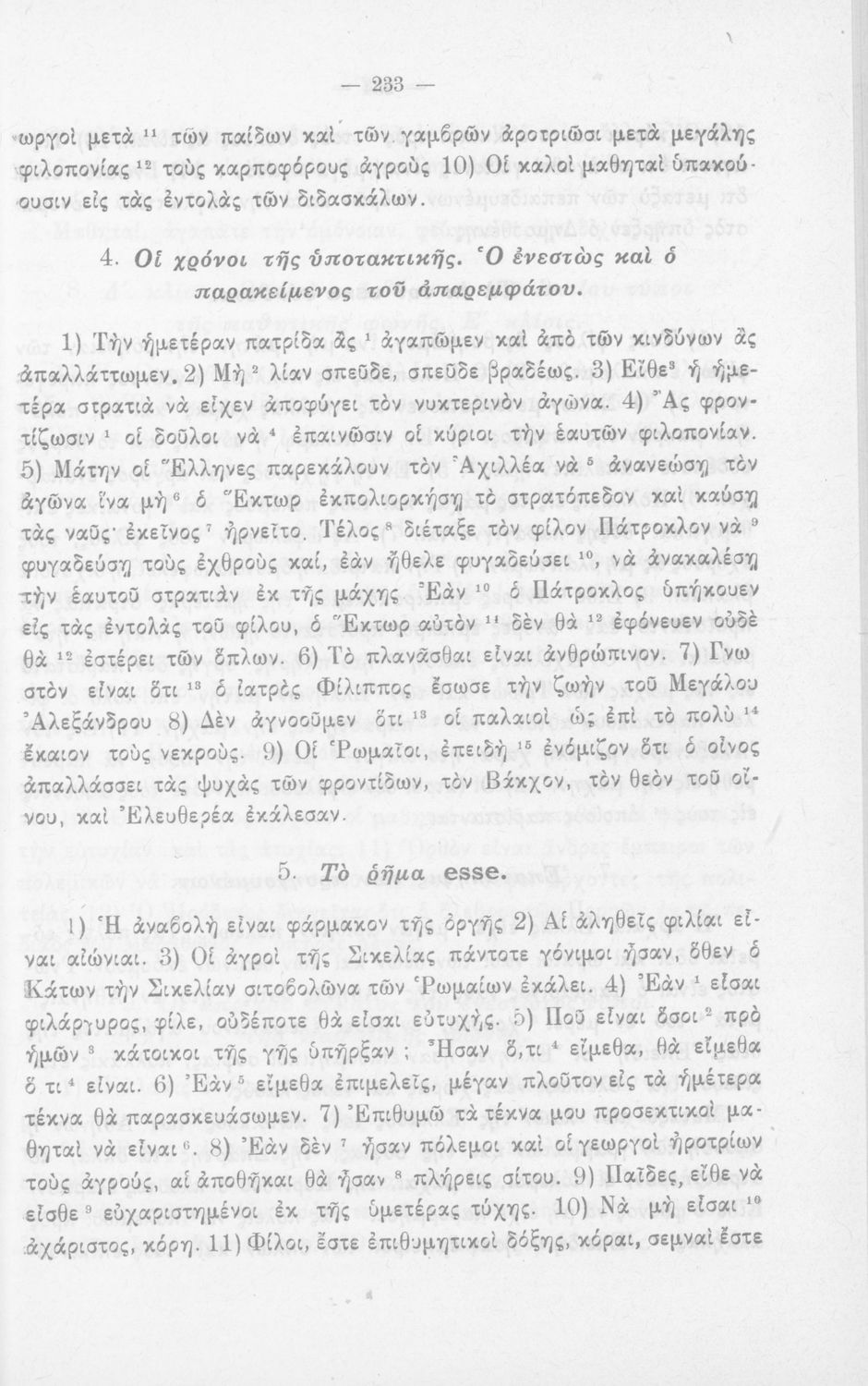 Σχολικό εγχειρίδιο Λατινικών Α΄, Β΄, Γ' Γυμνασίου που περιλαμβάνει γραμματική και συντακτικό και είναι χωρισμένο σε φθογγολογικό, τυπολογικό και ετυμολογικό μέρος.