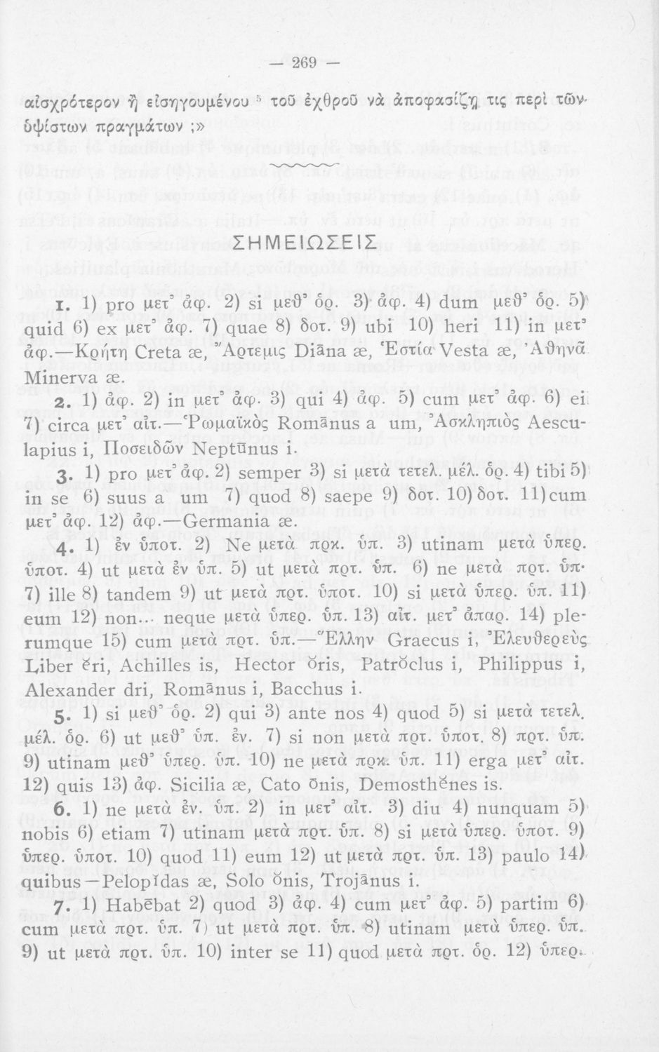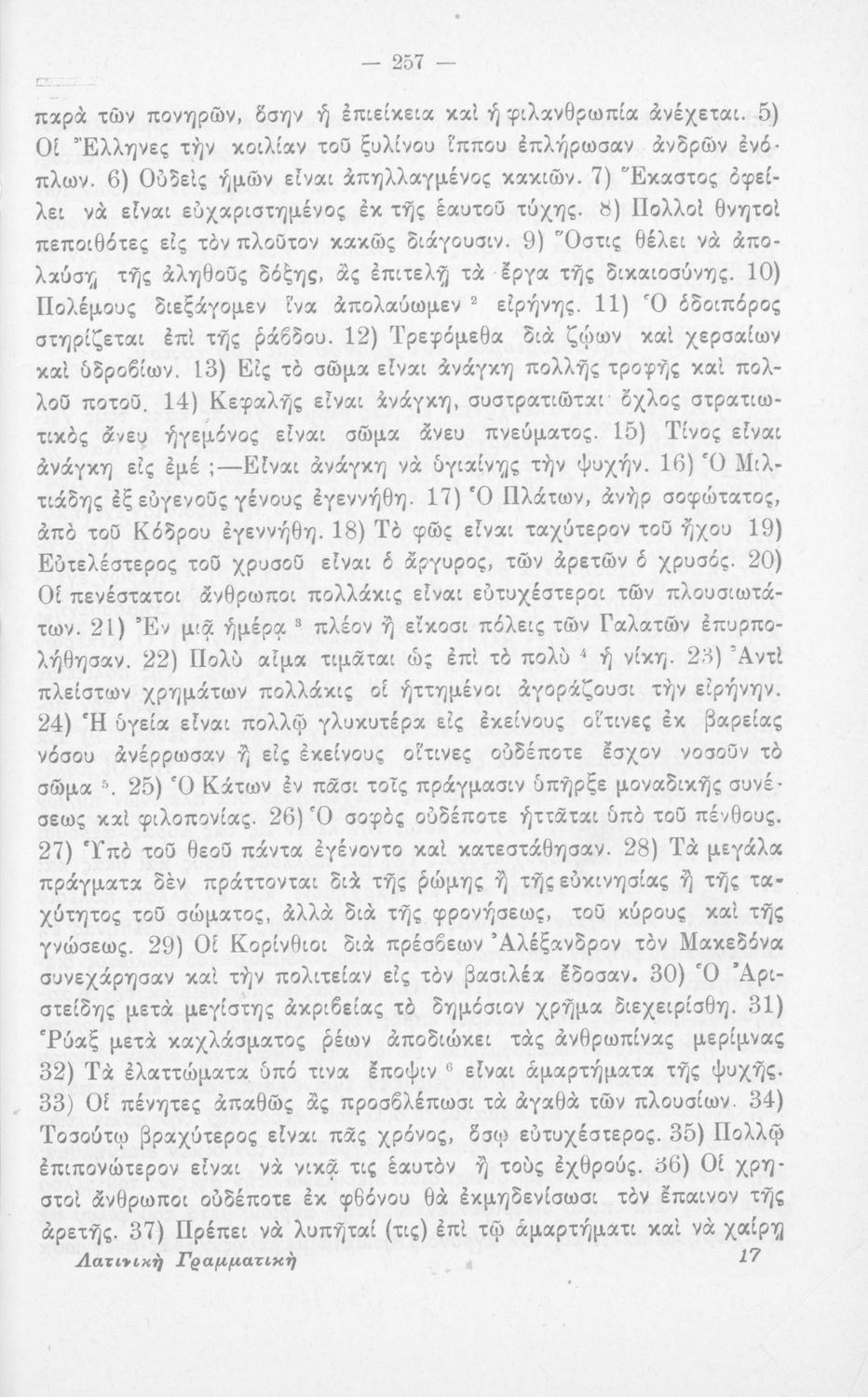 Σχολικό εγχειρίδιο Λατινικών Α΄, Β΄, Γ' Γυμνασίου που περιλαμβάνει γραμματική και συντακτικό και είναι χωρισμένο σε φθογγολογικό, τυπολογικό και ετυμολογικό μέρος.