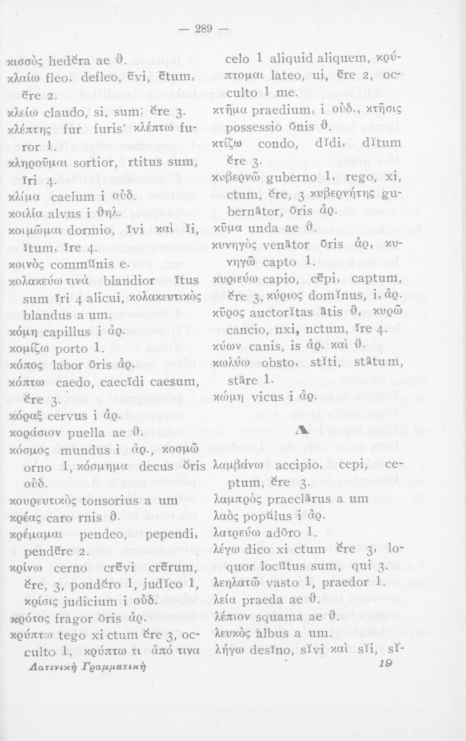 Σχολικό εγχειρίδιο Λατινικών που περιλαμβάνει τη γραμματική της λατινικής και είναι χωρισμένο στο τεχνολογικό, το τυπολογικό και το ετυμολογικό μέρος.