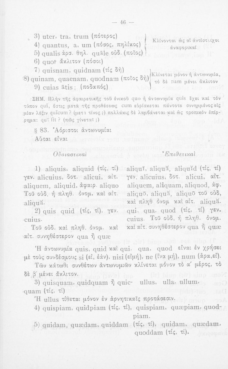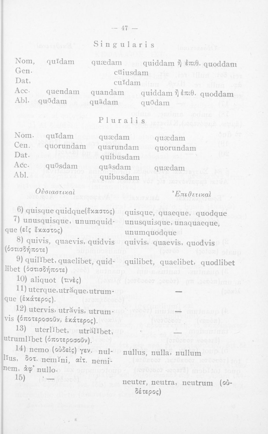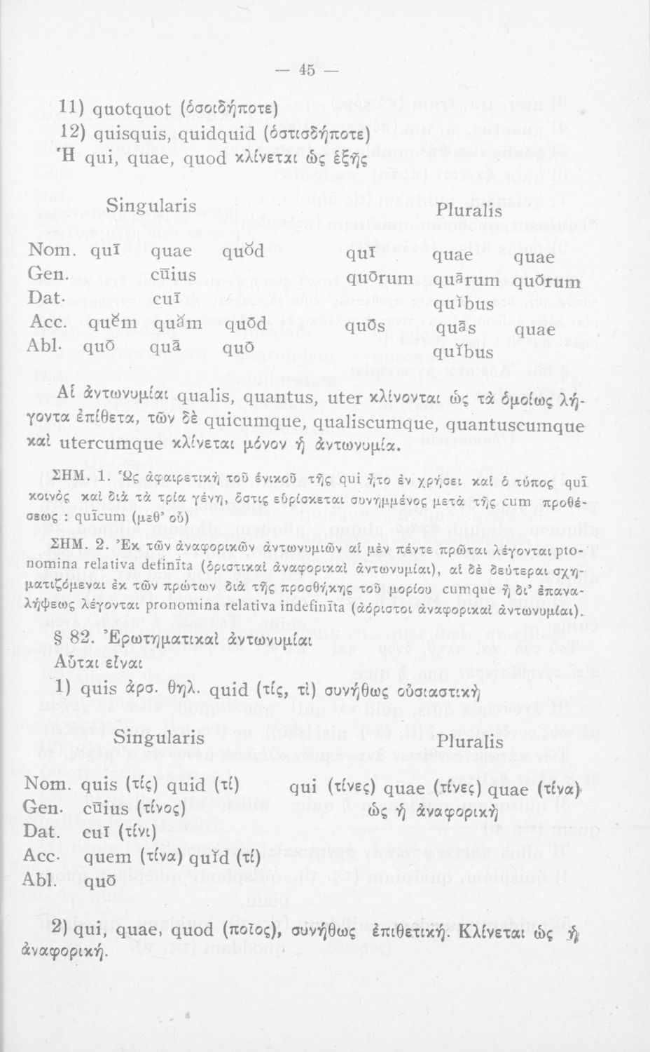 520 ## _aΣχολικό εγχειρίδιο Λατινικών που περιλαμβάνει τη γραμματική της λατινικής και είναι χωρισμένο στο φθογγολογικό, το τυπολογικό και το ετυμολογικό μέρος. Περιέχει και τους συντακτικούς κανόνες και τέσσερα παραρτήματα (Ρωμαϊκό ημερολόγιο, συντετμημένες λέξεις, Ρωμαϊκά νομίσματα, μέτρα και σταθμά και προσωδία - μετρική).
