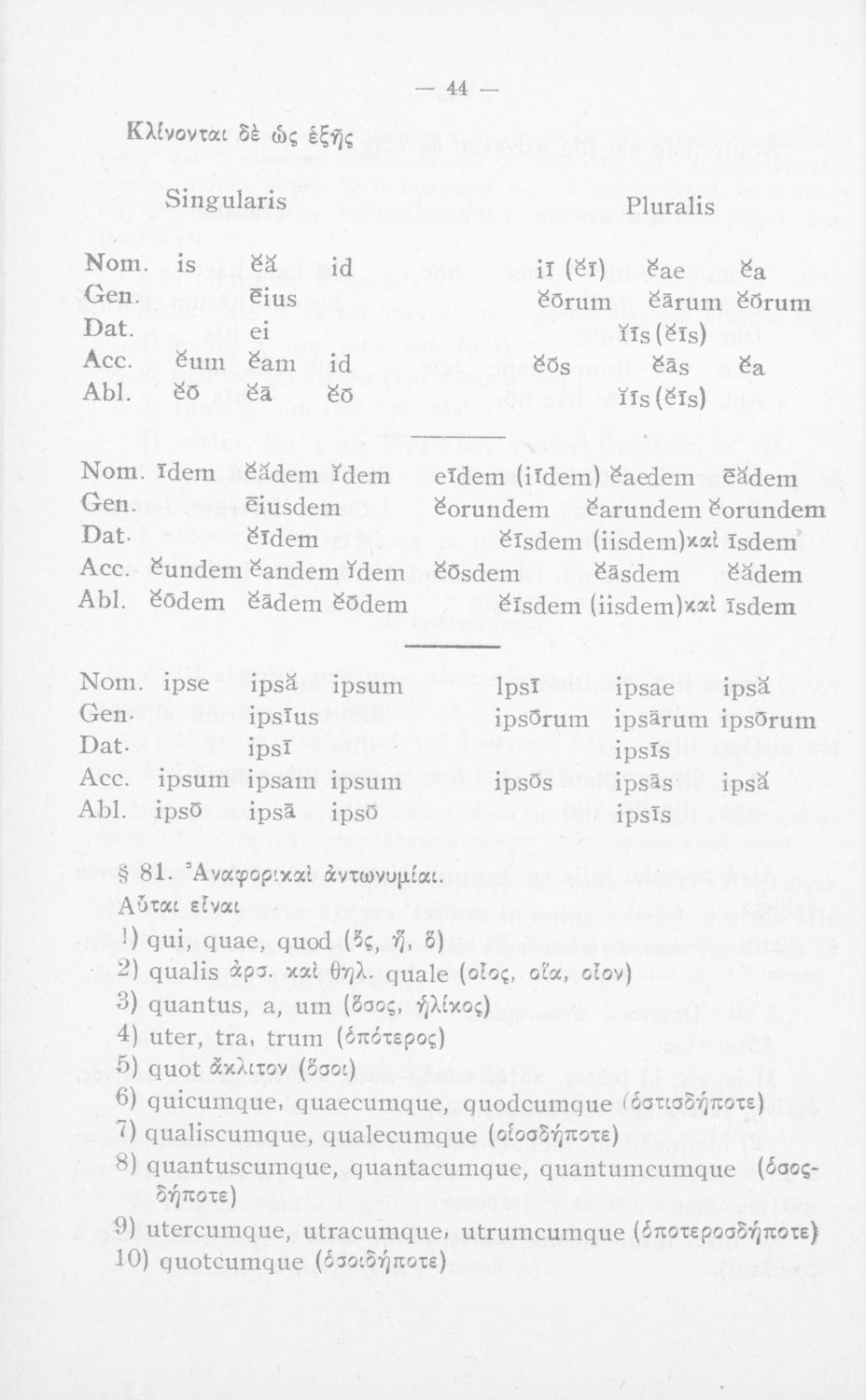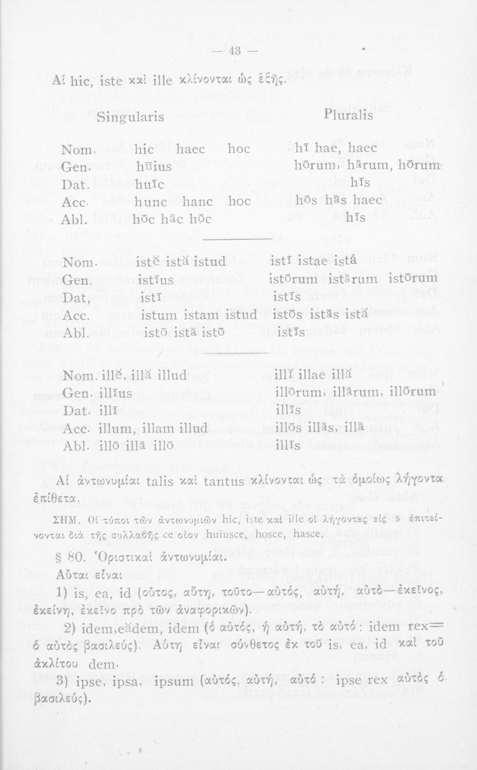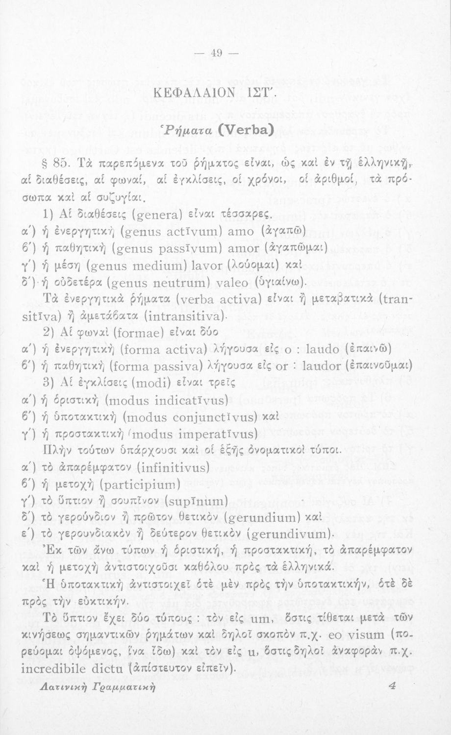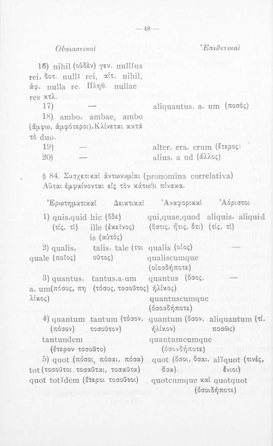 520 ## _aΣχολικό εγχειρίδιο Λατινικών που περιλαμβάνει τη γραμματική της λατινικής και είναι χωρισμένο στο φθογγολογικό, το τυπολογικό και το ετυμολογικό μέρος. Περιέχει και τους συντακτικούς κανόνες και τέσσερα παραρτήματα (Ρωμαϊκό ημερολόγιο, συντετμημένες λέξεις, Ρωμαϊκά νομίσματα, μέτρα και σταθμά και προσωδία - μετρική).