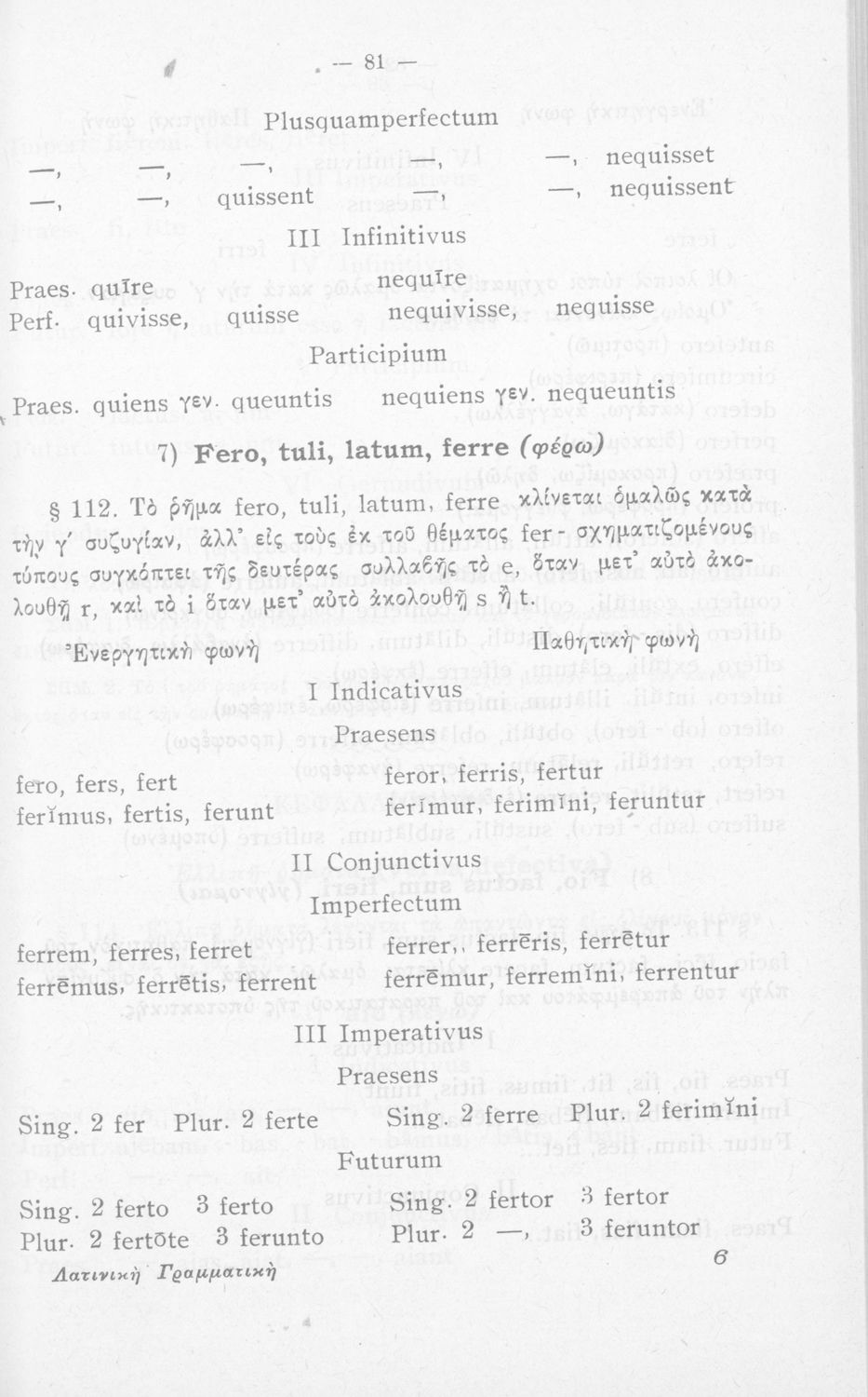 Σχολικό εγχειρίδιο Λατινικών Α΄, Β΄, Γ' Γυμνασίου που περιλαμβάνει γραμματική και συντακτικό και είναι χωρισμένο σε φθογγολογικό, τυπολογικό και ετυμολογικό μέρος.