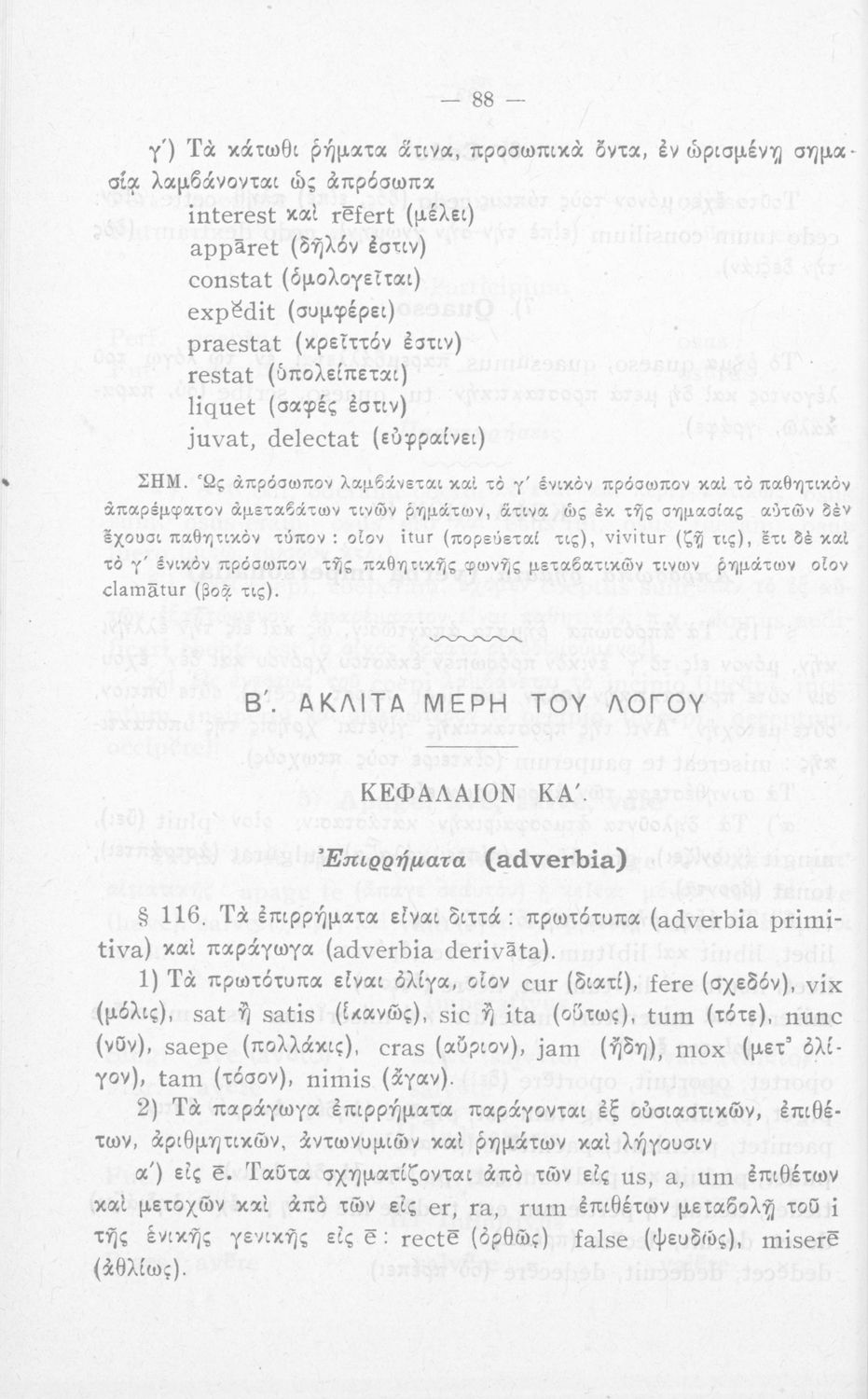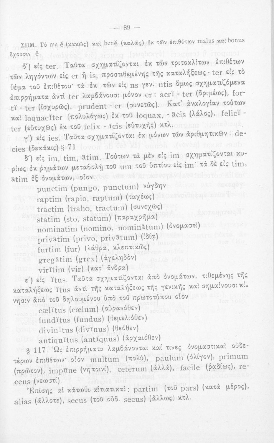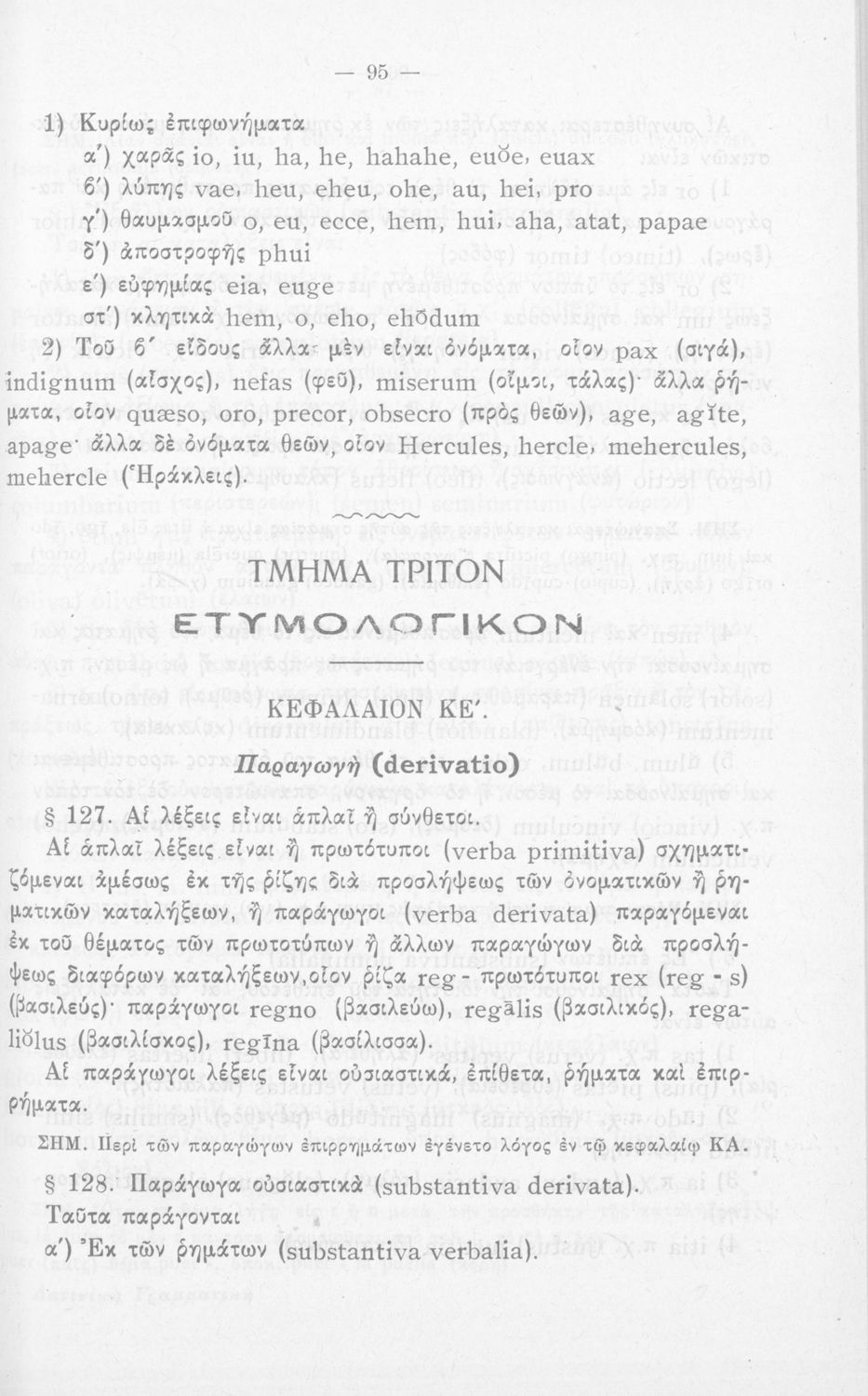 Σχολικό εγχειρίδιο Λατινικών που περιλαμβάνει τη γραμματική της λατινικής και είναι χωρισμένο στο τεχνολογικό, το τυπολογικό και το ετυμολογικό μέρος.