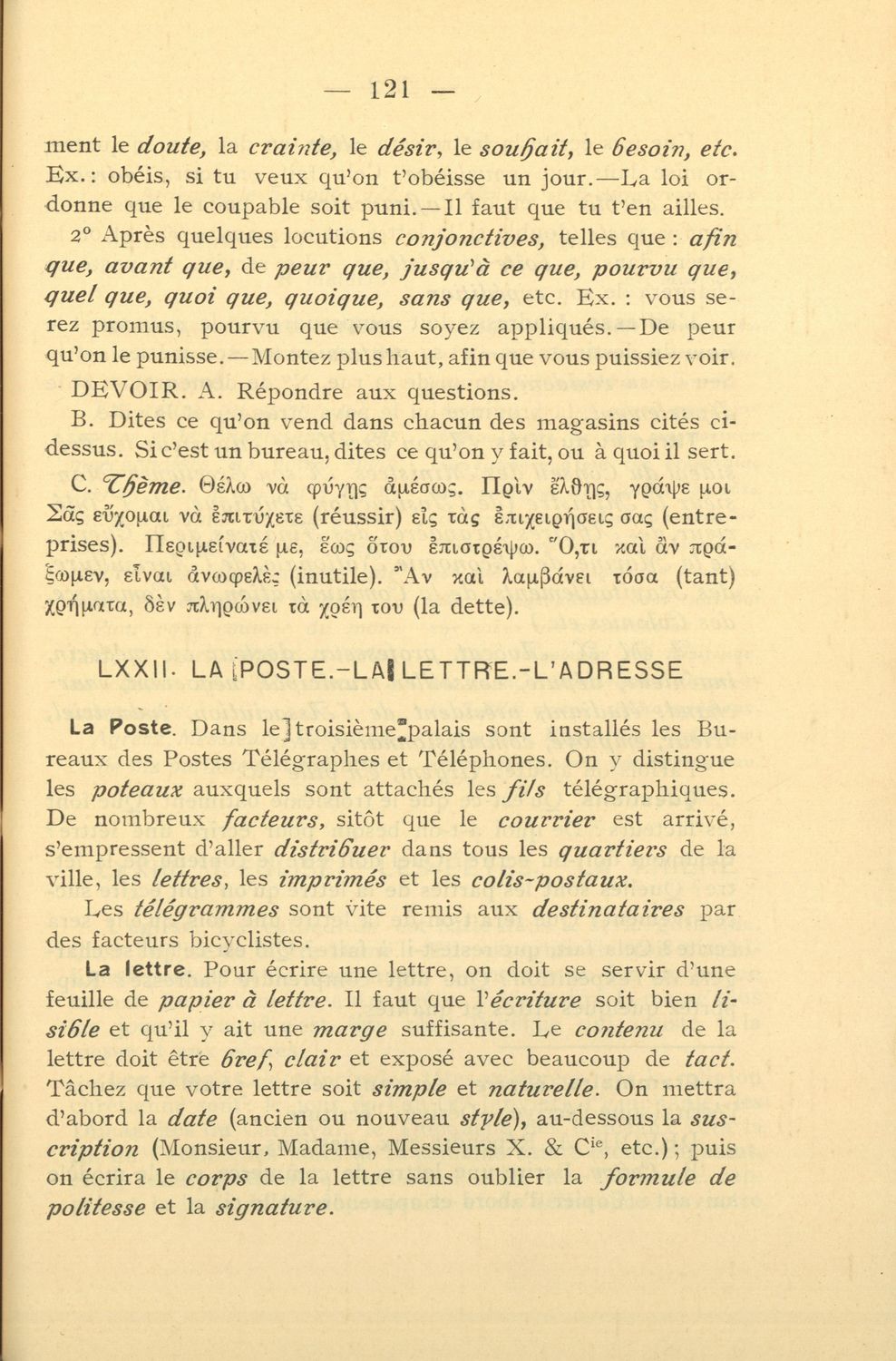Σχολικό εγχειρίδιο για τις τάξεις των Γυμνασίων, Αστικών σχολείων, Παρθεναγωγείων, Διδασκαλεία και Εμπορικές σχολές. Το βιβλίο περιλαμβάνει ασκήσεις γραμματικής, συντακτικού και λεξιλογίου για πρακτική ...