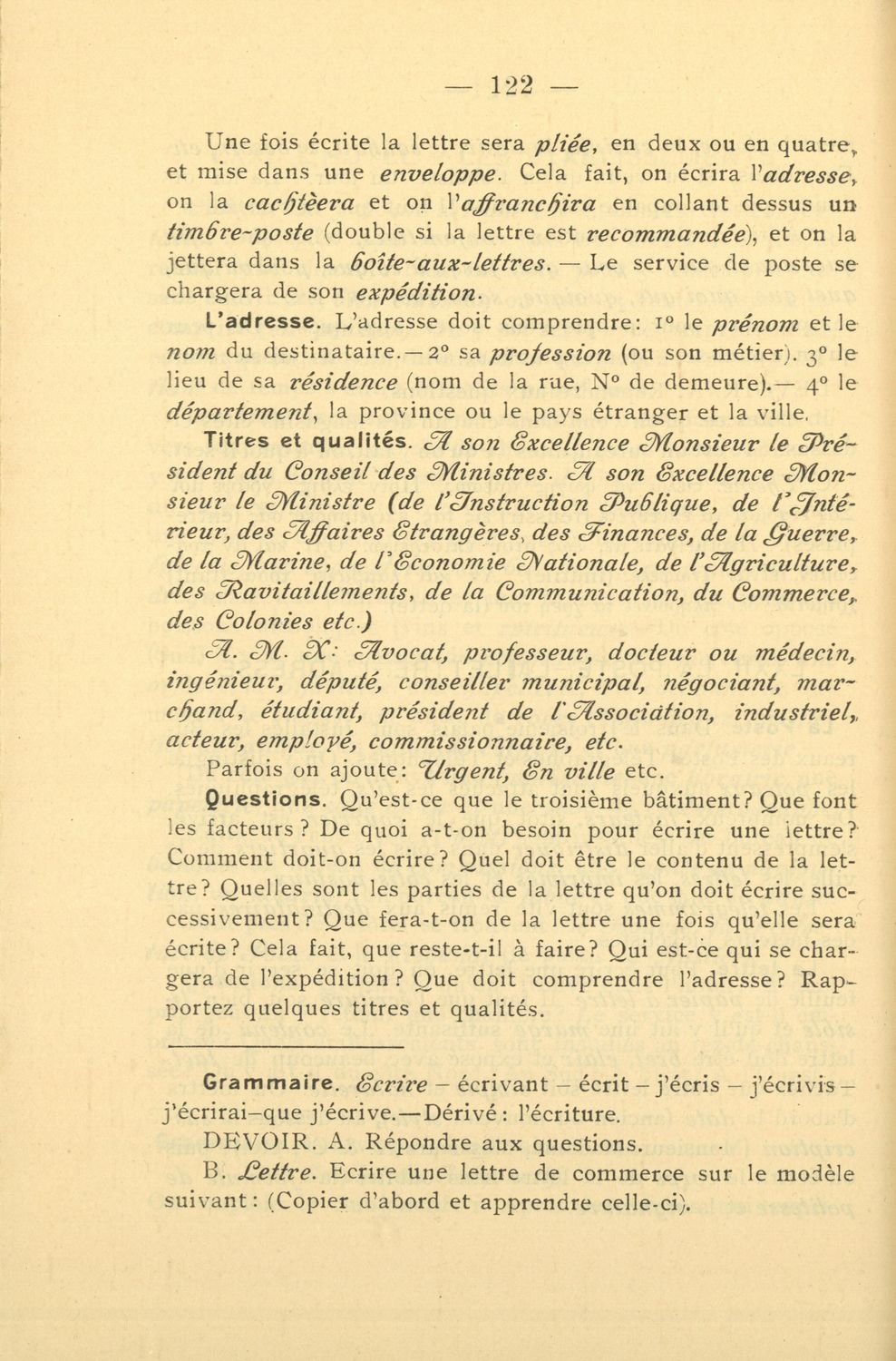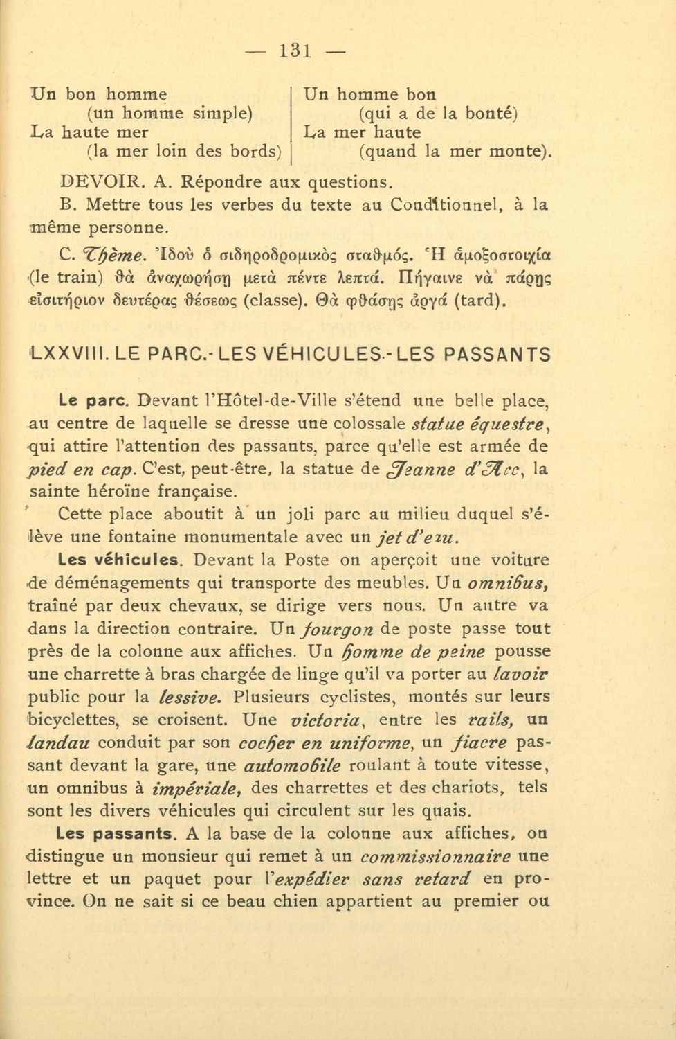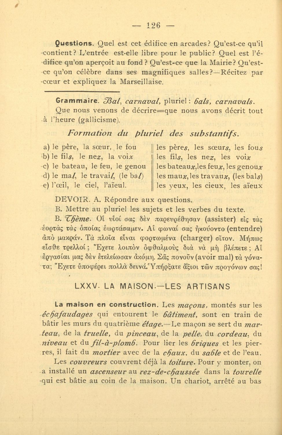 Σχολικό εγχειρίδιο Γαλλικών των Γυμνασίων, Αστικών σχολείων, Παρθεναγωγείων, Διδασκαλείων και Εμπορικών σχολών το οποίο παρουσιάζει τους βασικούς κανόνες γραμματικής μέσα από ασκήσεις και σειρά κειμένων ...