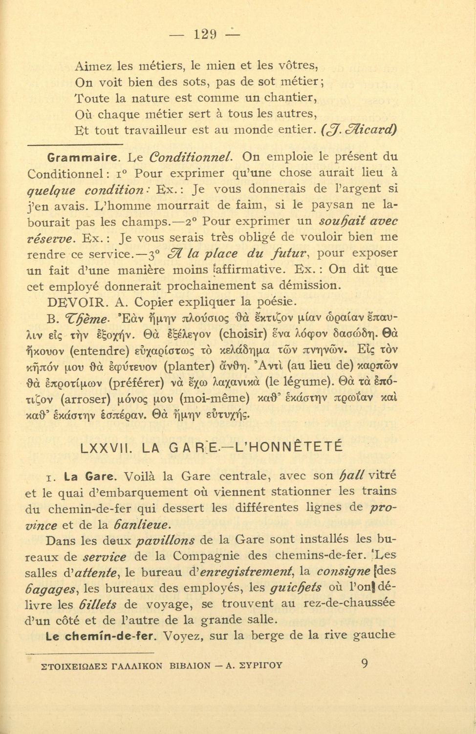 Σχολικό εγχειρίδιο Γαλλικών για τοΕλληνικό Σχολείο, το Αστικό Σχολείο, το Παρθεναγωγείο, το Διδασκαλείο και τις Εμπορικές Σχολές που αποτελείται από κείμενα, γραμματική και συντακτικό της γαλλικής γλώσσας και αναλυτικό παράρτημα με λεξιλόγιο.