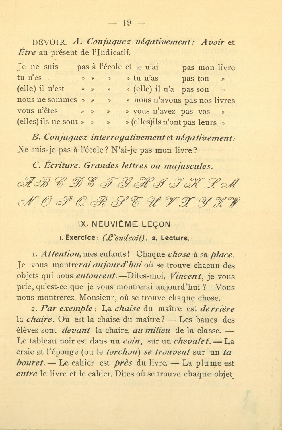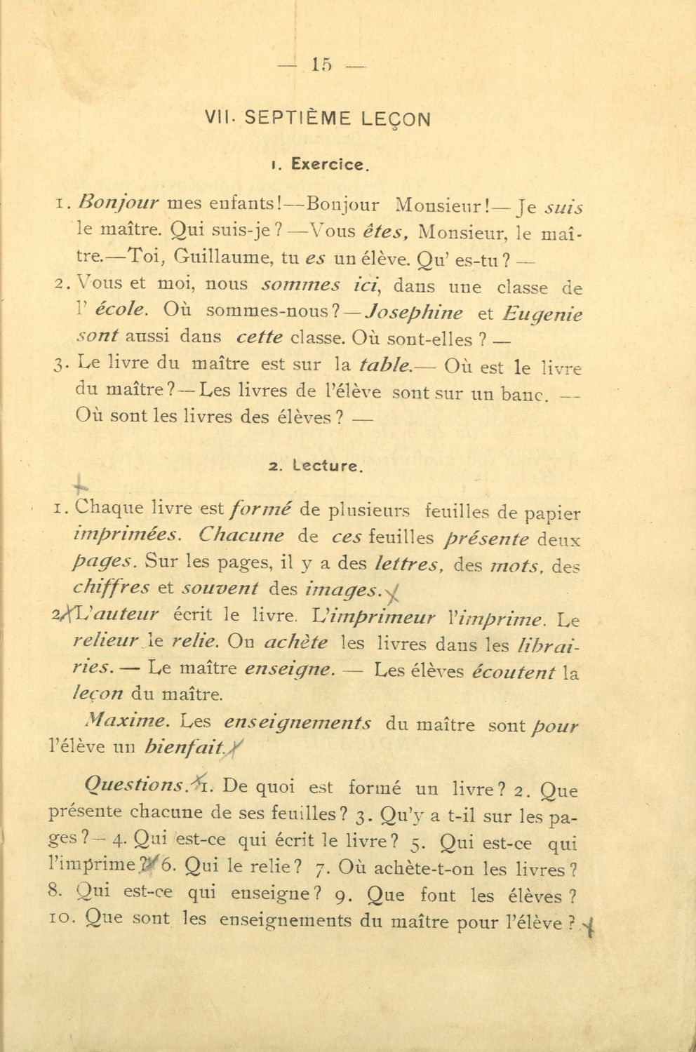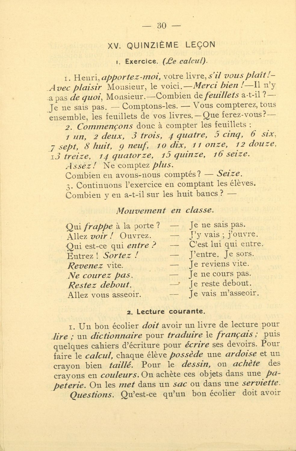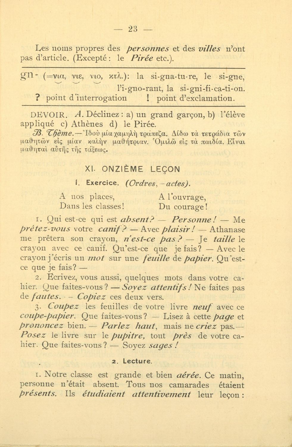 Σχολικό εγχειρίδιο Γαλλικών που περιλαμβάνει 54 κείμενα για τη διδασκαλία των γραμματικών και συντακτικών φαινομένων και της ορθογραφίας, λεξιλόγιο και παράρτημα με τους κανόνες συλλαβισμού.