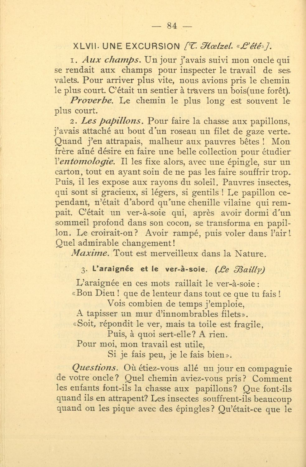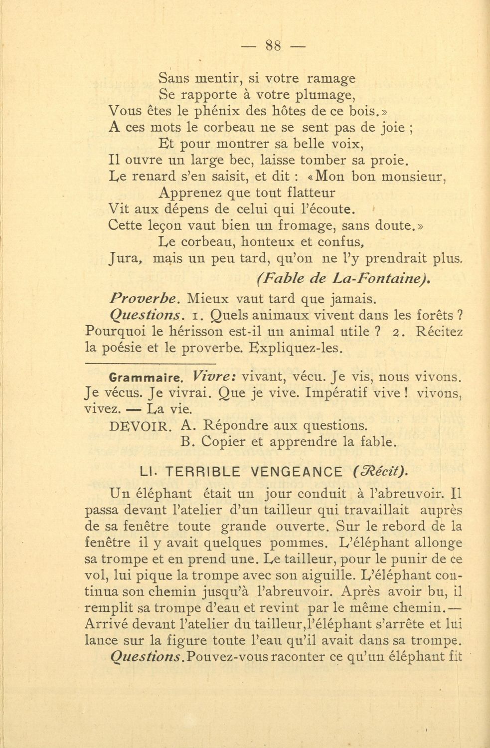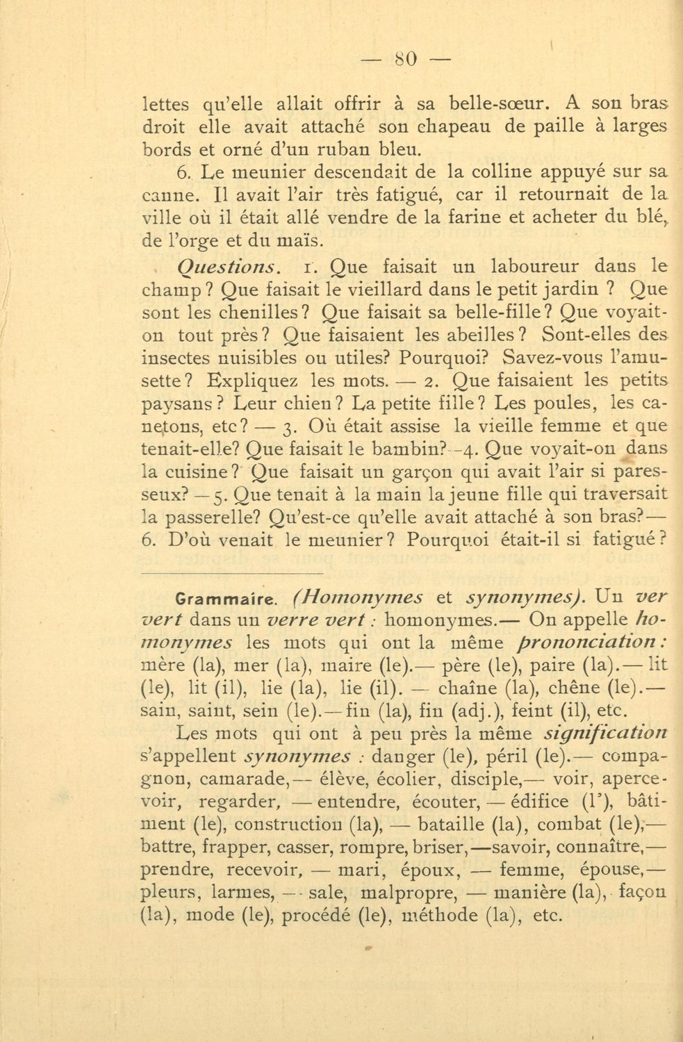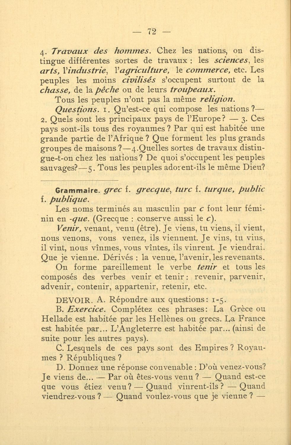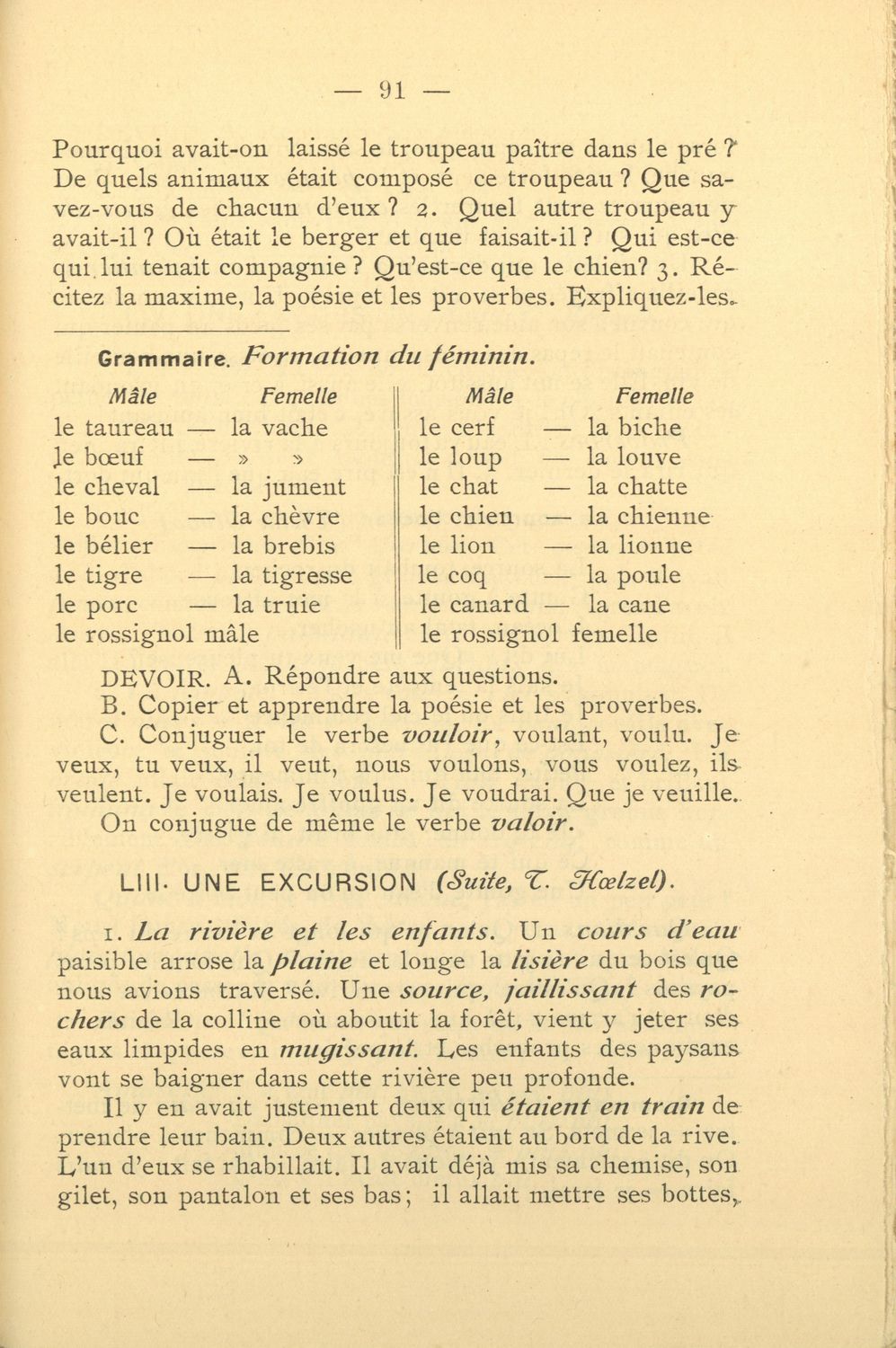Σχολικό εγχειρίδιο Γαλλικών που περιλαμβάνει 54 κείμενα για τη διδασκαλία των γραμματικών και συντακτικών φαινομένων και της ορθογραφίας, λεξιλόγιο και παράρτημα με τους κανόνες συλλαβισμού.