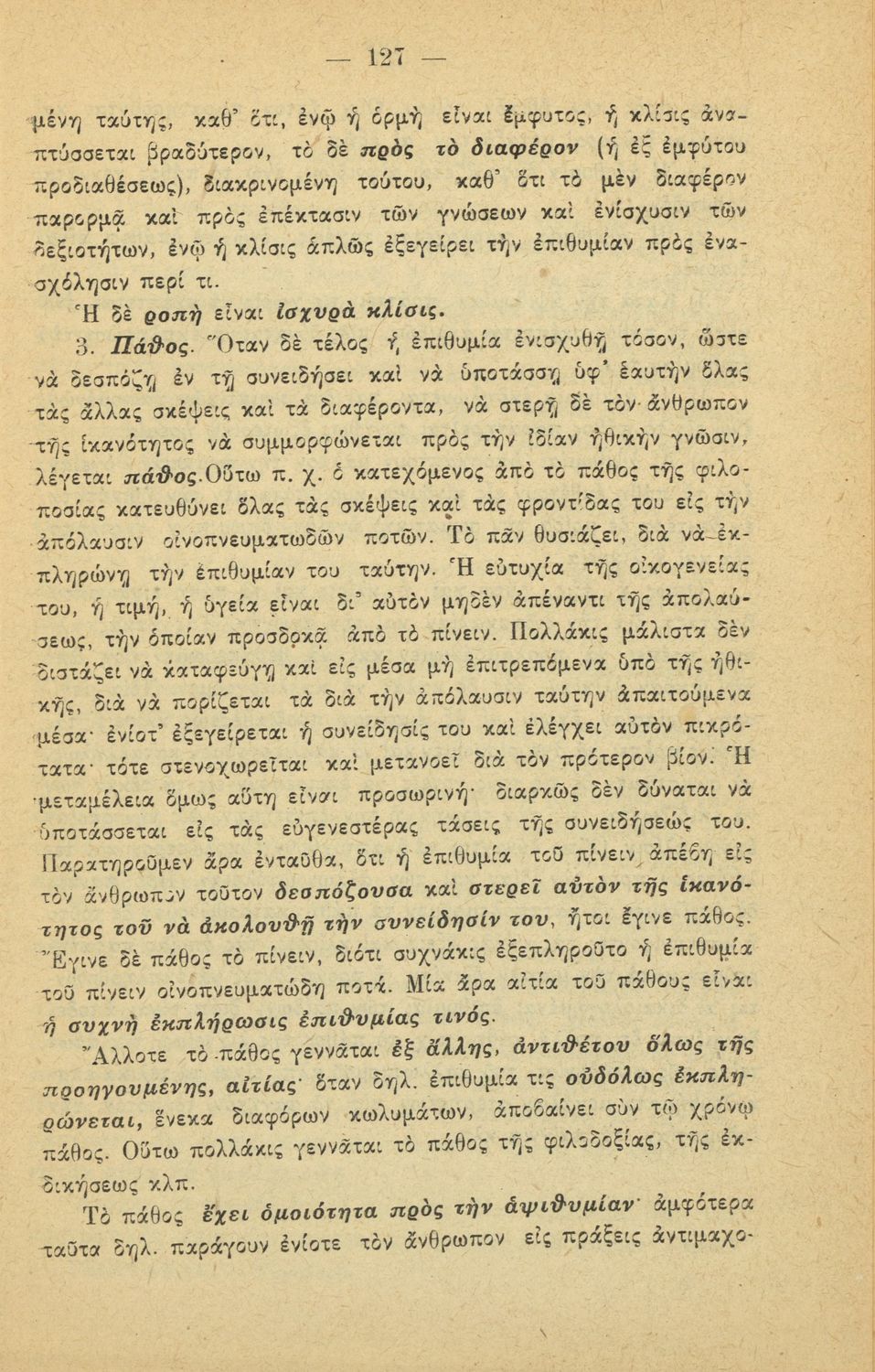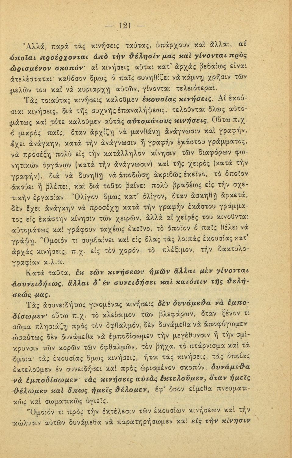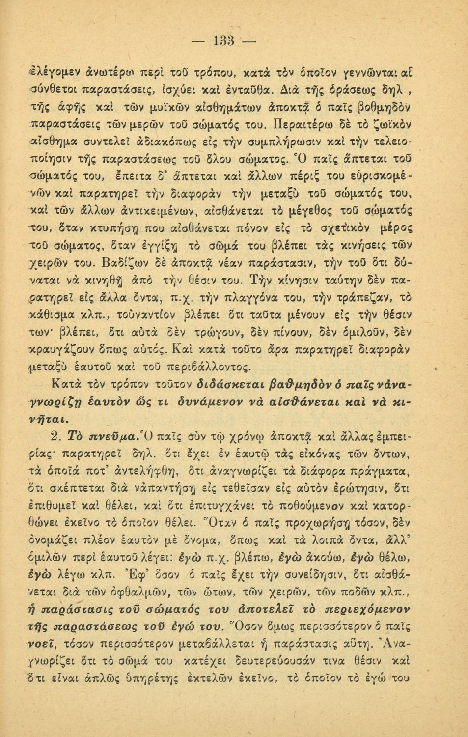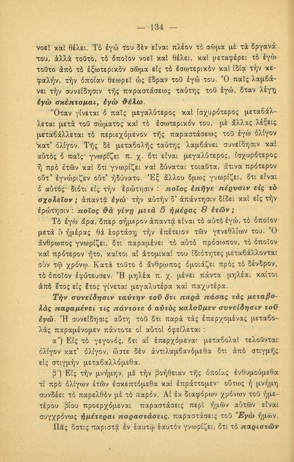 Σχολικό εγχειρίδιο Πειραματικής Ψυχολογίας για τη Γ΄ Γυμνασίου χωρισμένο σε τρία τμήματα: το παριστάναι, το συναισθάνεσθαι, και το βούλεσθαι.