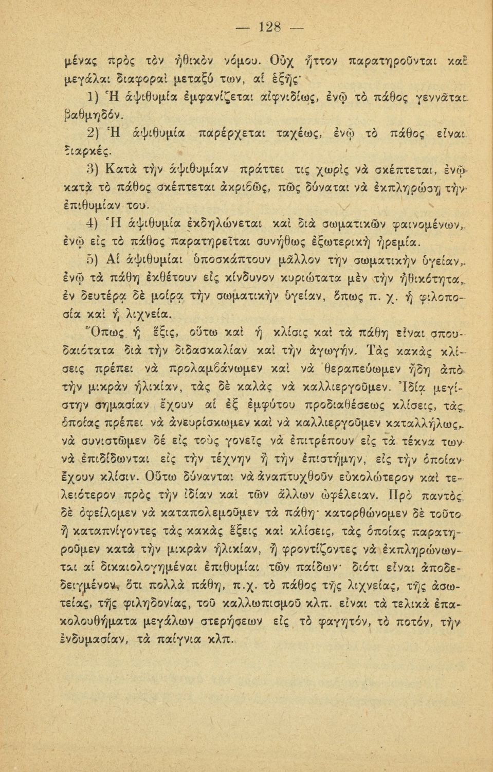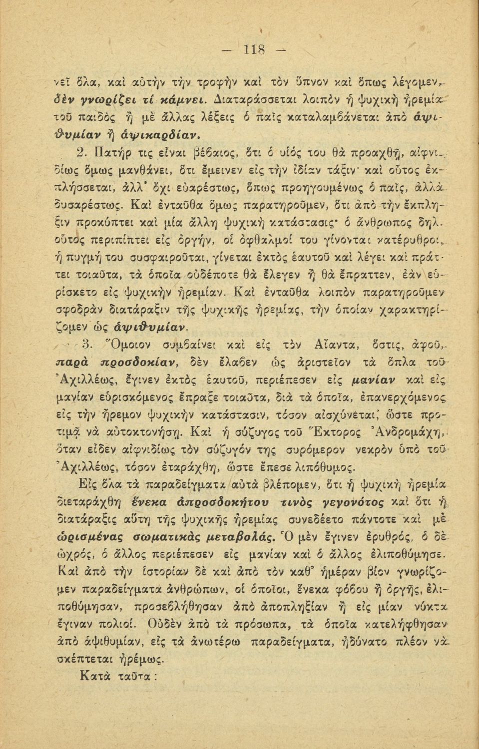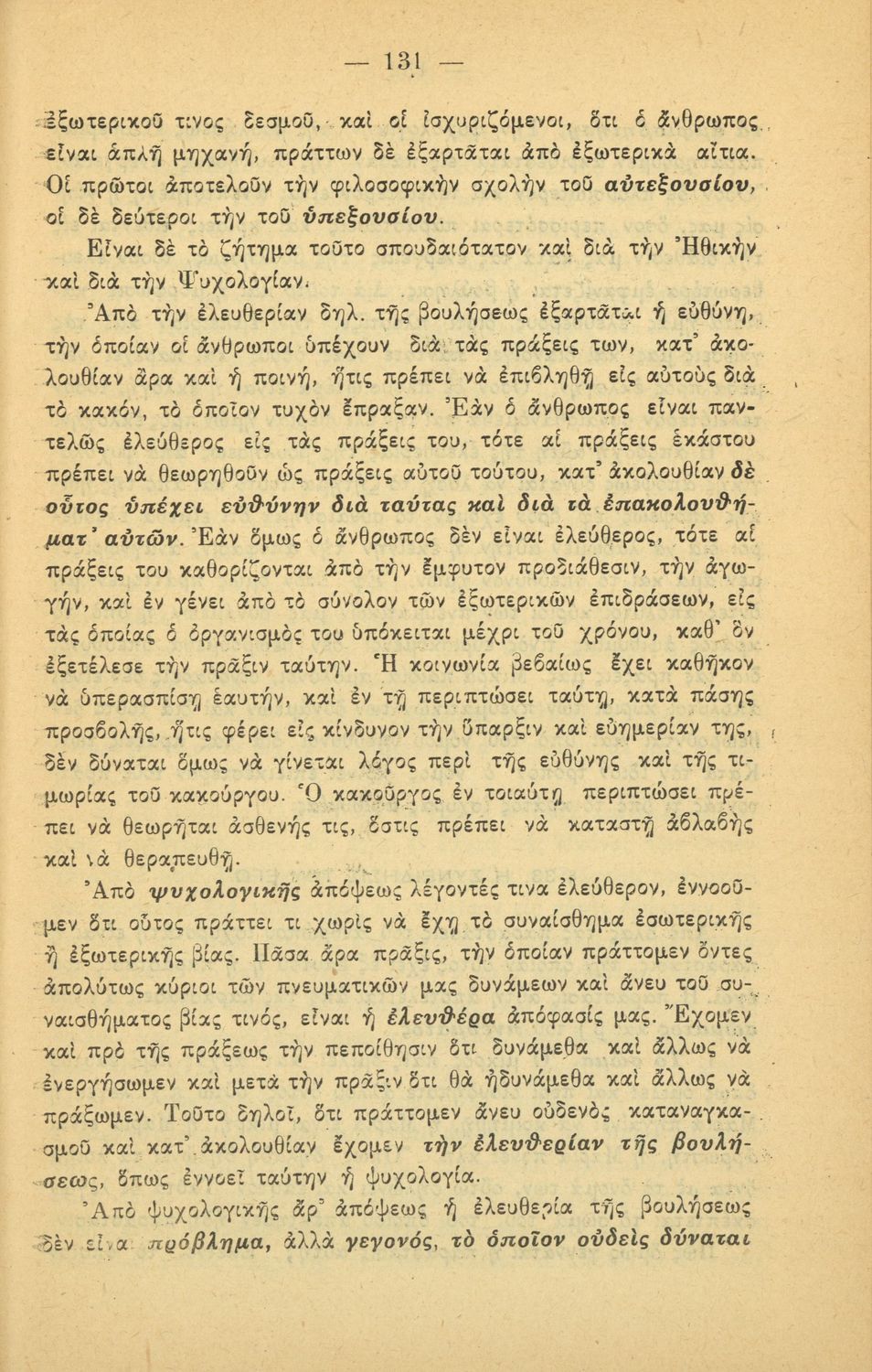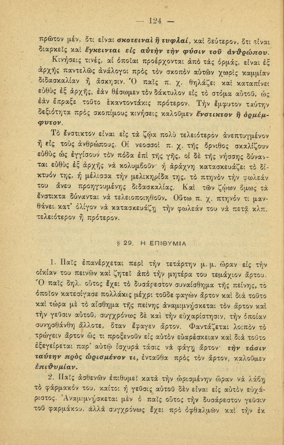Σχολικό εγχειρίδιο Πειραματικής Ψυχολογίας για τη Γ΄ Γυμνασίου χωρισμένο σε τρία τμήματα: το παριστάναι, το συναισθάνεσθαι, και το βούλεσθαι.