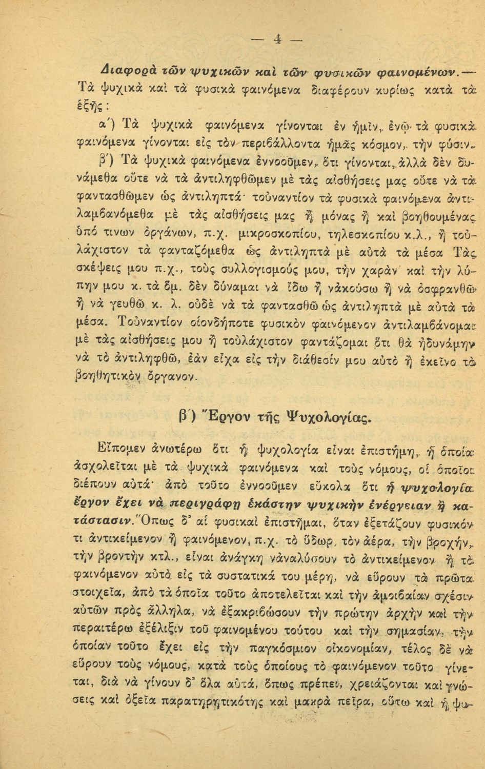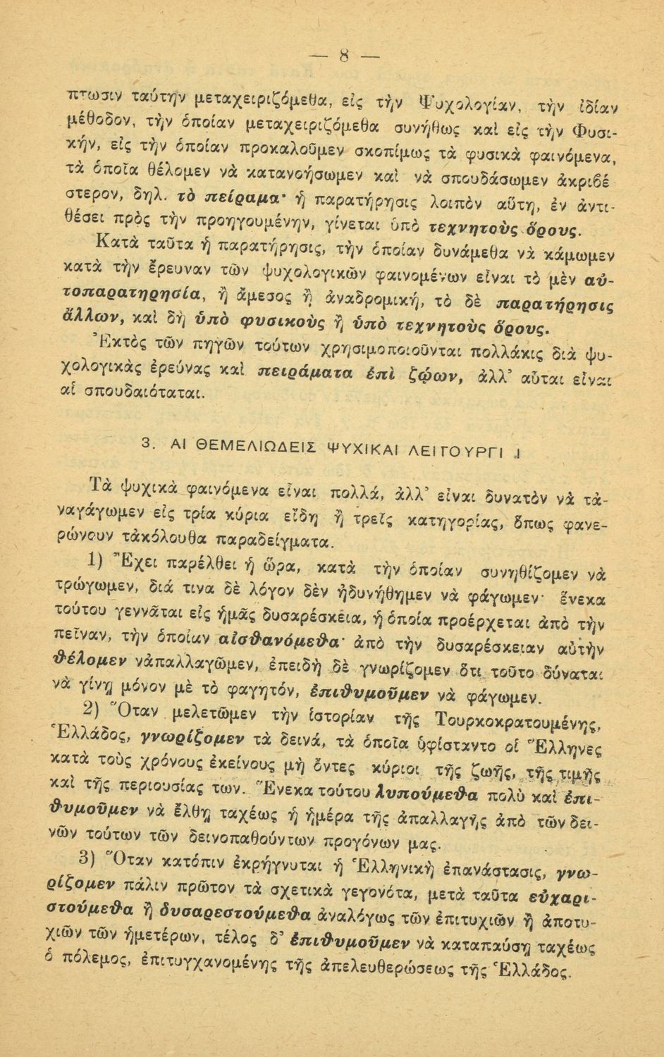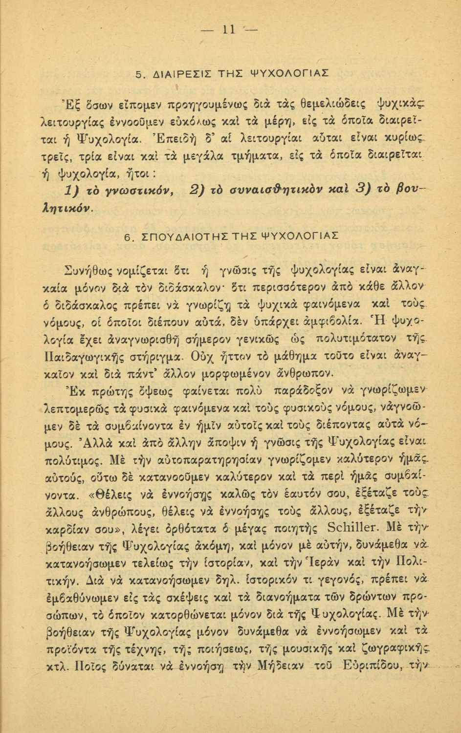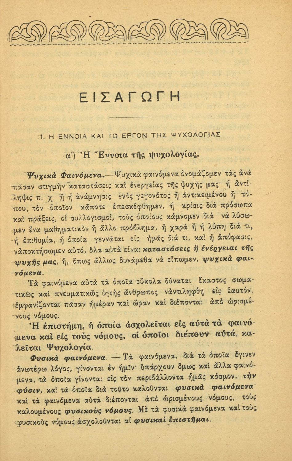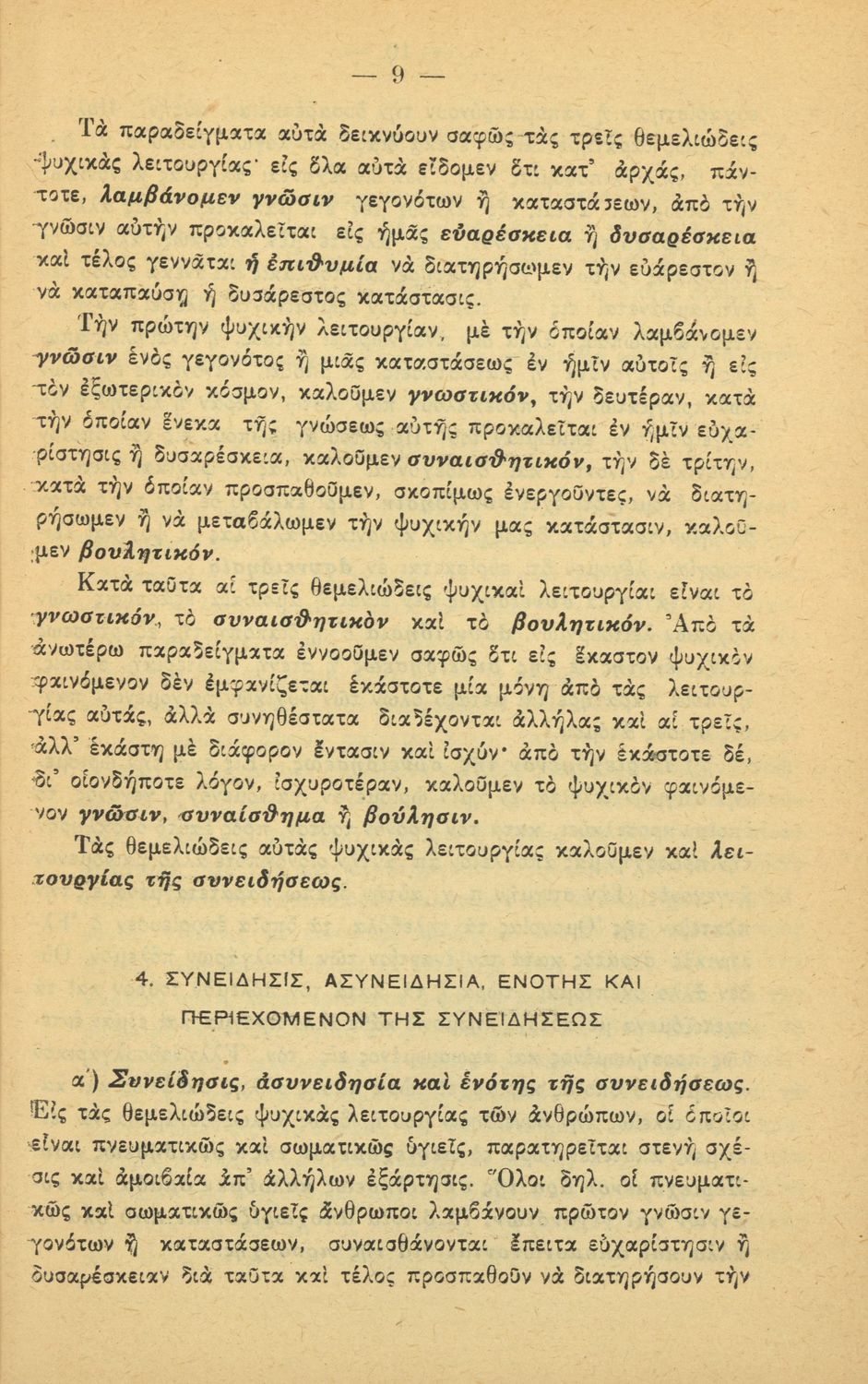 Σχολικό εγχειρίδιο Πειραματικής Ψυχολογίας για τη Γ΄ Γυμνασίου χωρισμένο σε τρία τμήματα: το παριστάναι, το συναισθάνεσθαι, και το βούλεσθαι.