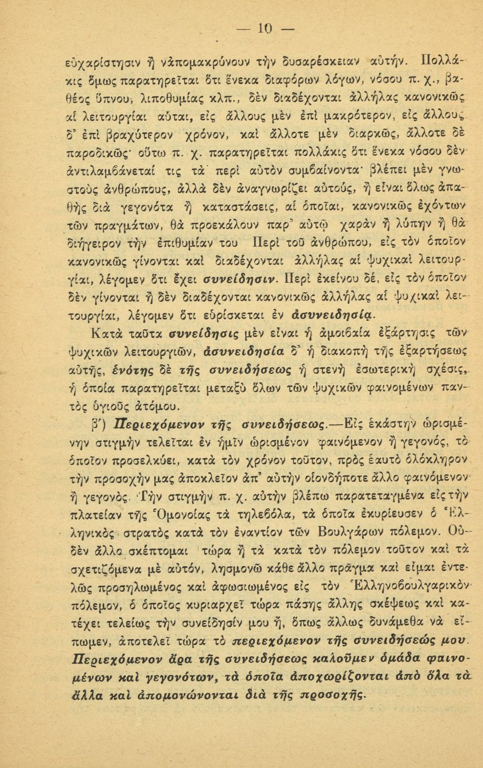 Σχολικό εγχειρίδιο Εμπειρικής Ψυχολογίας για τη Γ΄ Γυμνασίου χωρισμένο σε τρία τμήματα: το γνωστικό, το συναισθηματικό και το βουλητικό. Εξετάζει και τις ανωμαλίες της συνείδησης.