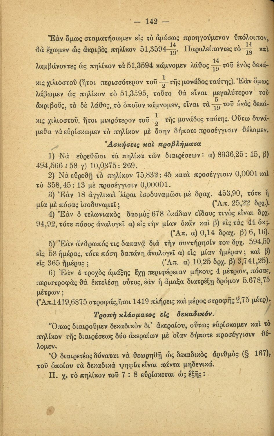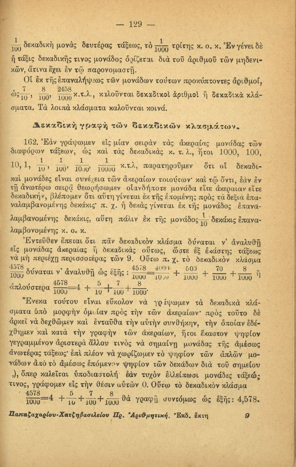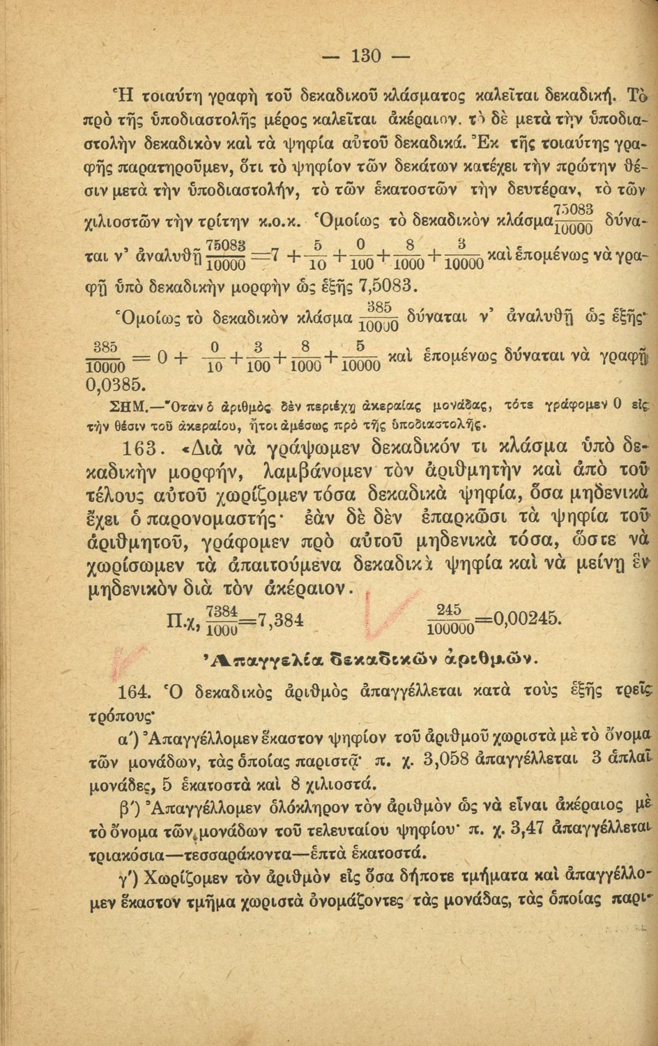 Σχολικό εγχειρίδιο Αριθμητικής για τα Ελληνικά και Αστικά Σχολεία και τα Παρθεναγωγεία που εστιάζει στις αριθμητικές πράξεις, τα κλάσματα, τους δεκαδικούς και συμμιγείς αριθμούς, και τις δυνάμεις. Περιέχει και