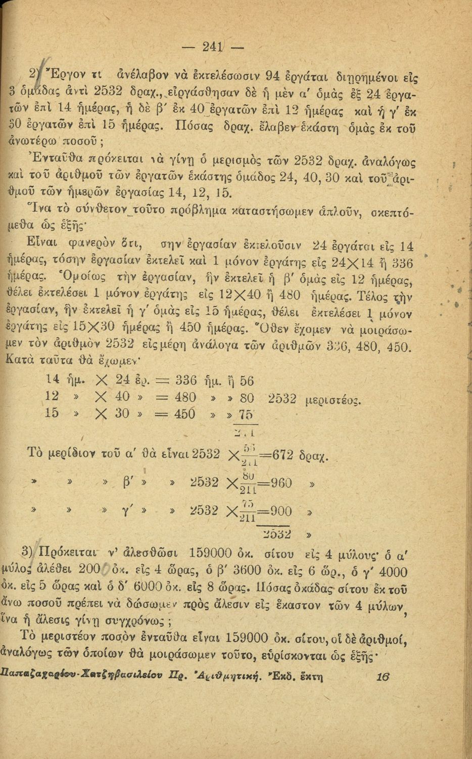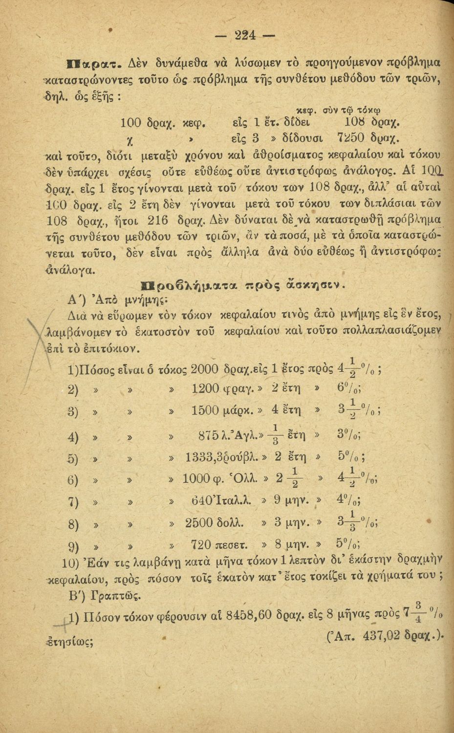 Πρακτική αριθμητική προς χρήσιν πασών των τάξεων των Ελληνικών Σχολείων, Αστικών και Ανωτέρων Παρθεναγωγείων