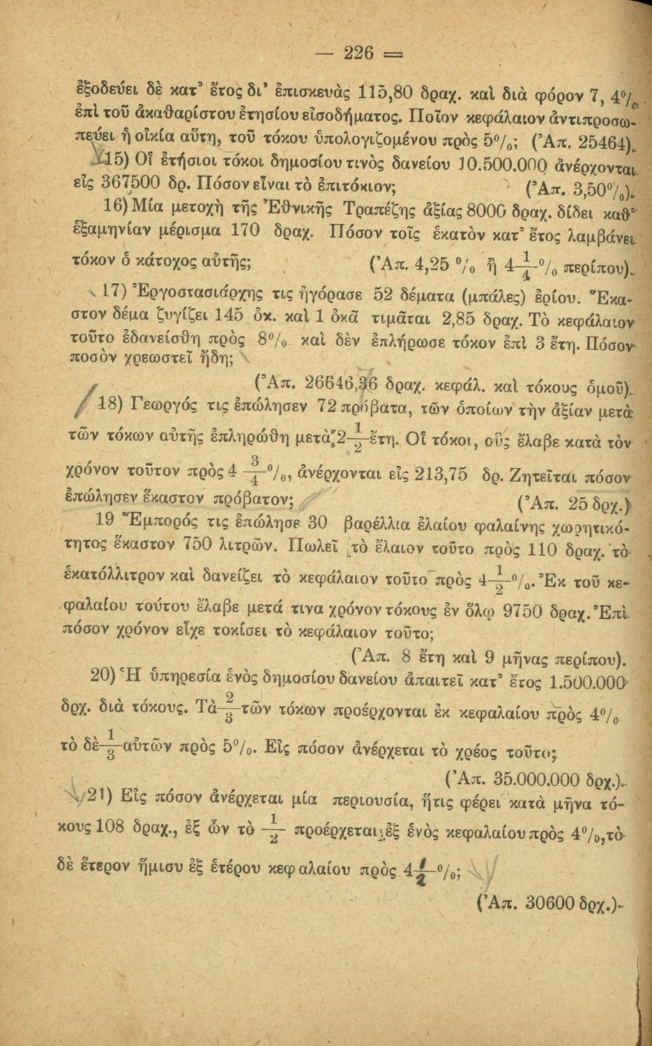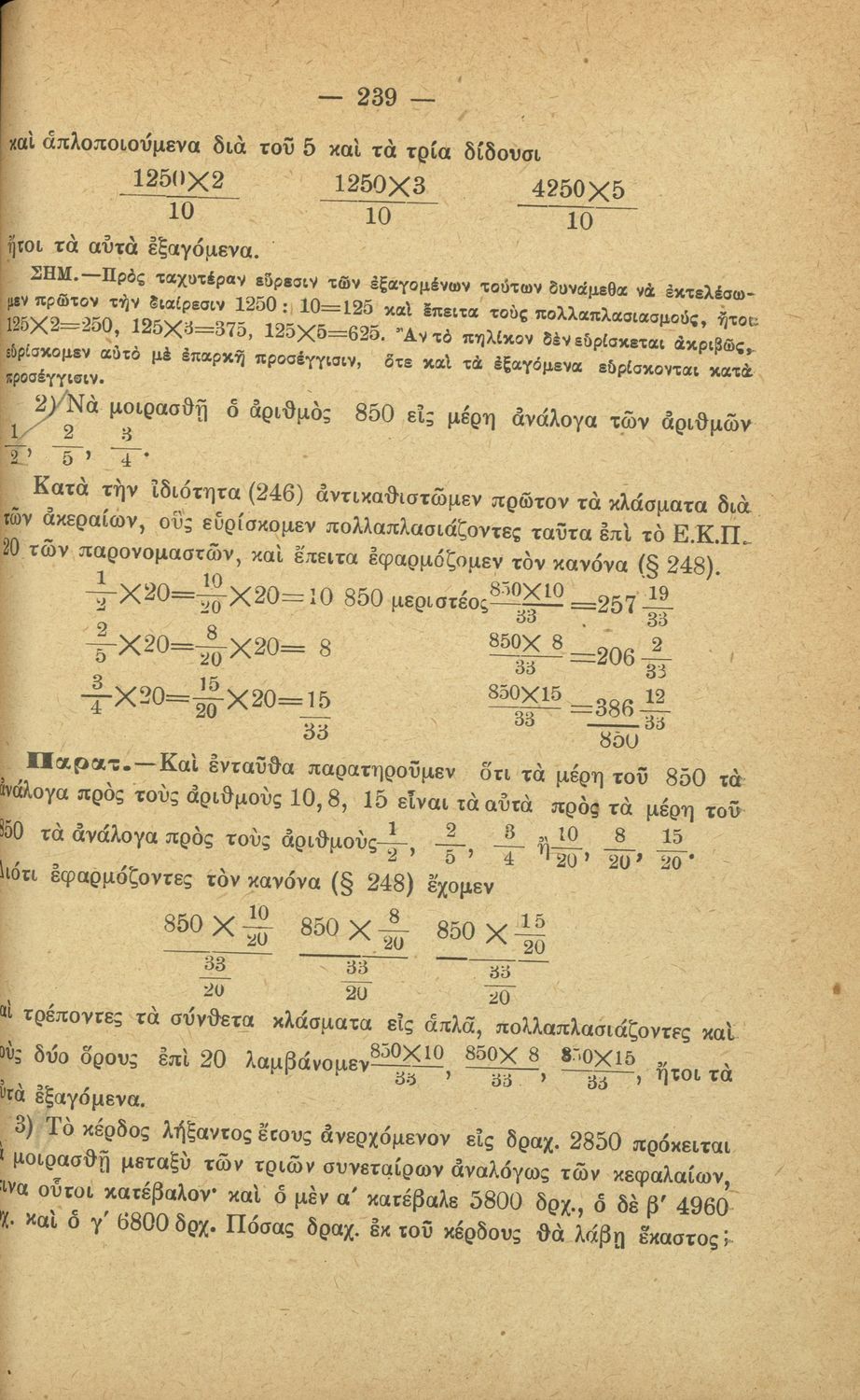 Σχολικό εγχειρίδιο Αριθμητικής για τα Ελληνικά και Αστικά Σχολεία και τα Παρθεναγωγεία που εστιάζει στις αριθμητικές πράξεις, τα κλάσματα, τους δεκαδικούς και συμμιγείς αριθμούς, και τις δυνάμεις. Περιέχει και