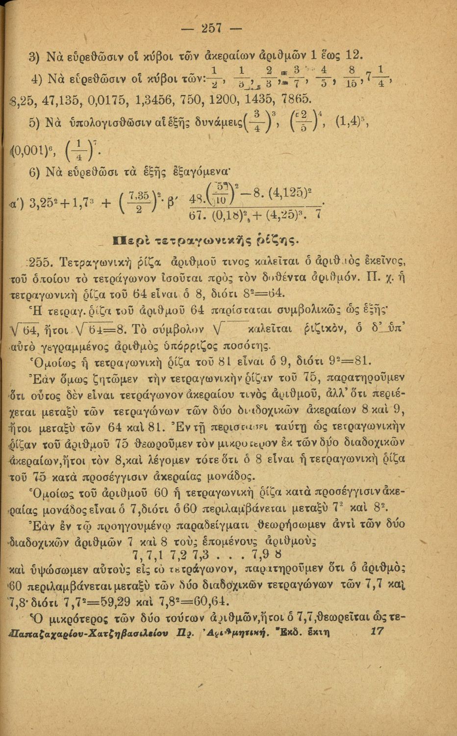 Σχολικό εγχειρίδιο Αριθμητικής για τα Ελληνικά και Αστικά Σχολεία και τα Παρθεναγωγεία που εστιάζει στις αριθμητικές πράξεις, τα κλάσματα, τους δεκαδικούς και συμμιγείς αριθμούς, και τις δυνάμεις. Περιέχει και