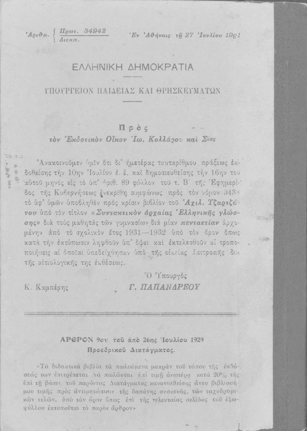Τίτλος: Συντακτικόν της αρχαίας ελληνικής γλώσσης