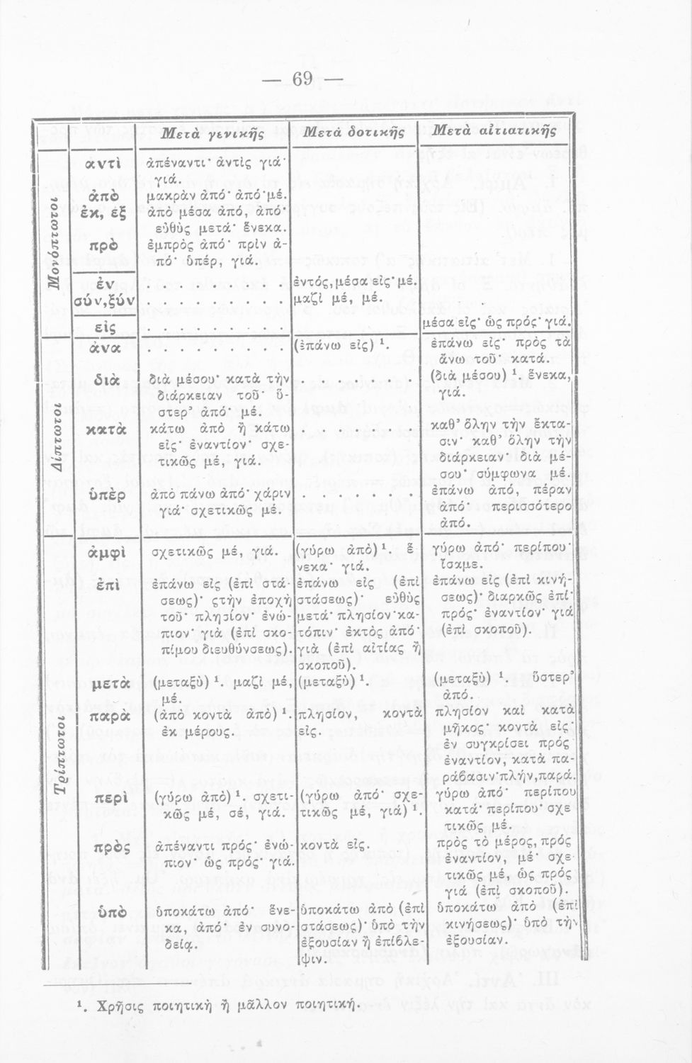 Σχολικό εγχειρίδιο Αρχαίων Ελληνικών που εξετάζει τα μέρη του λόγου και την σύνταξή τους.