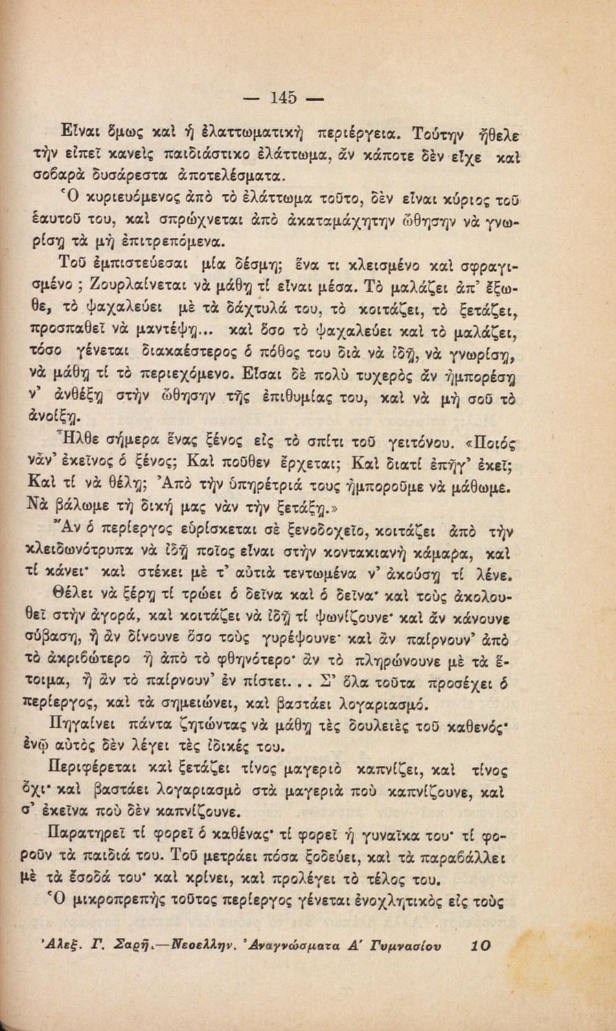 520 ## _aΣχολικό εγχειρίδιο Νέων Ελληνικών Α΄ Τετραταξίου Γυμνασίου που περιλαμβάνει πεζά και ποιήματα Ελλήνων συγγραφέων και δημοτικά τραγούδια εμπνευσμένα από την σύγχρονη ελληνική ιστορία, την ελληνική φύση και την οικογενειακή ζωή. Περιέχει και παράρτημα με βιογραφίες των συγγραφέων και λεξιλόγιο.