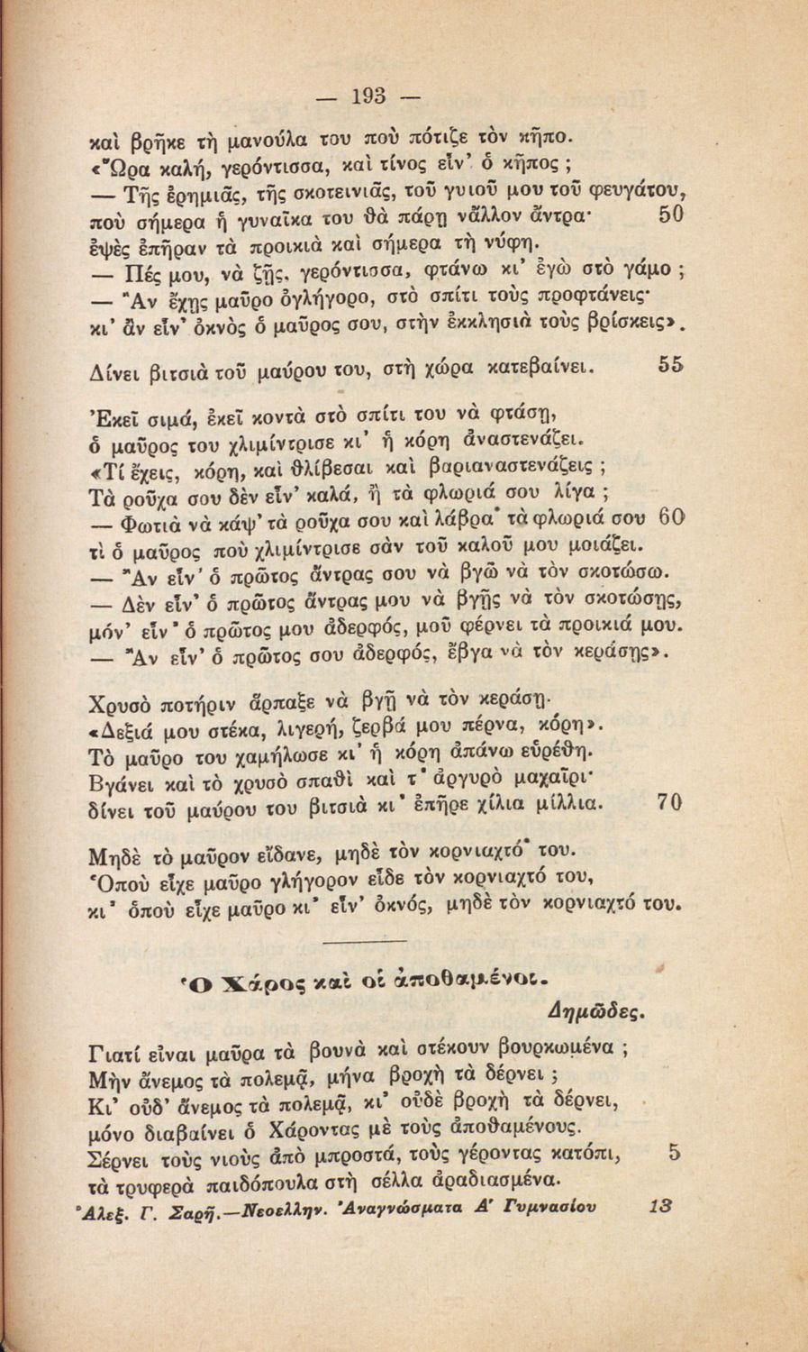 Νεοελληνικά αναγνώσματα διά τους μαθητάς της Α΄ τάξεως των Τετραταξίων Γυμνασίων και της αντιστοίχου τάξεως των λοιπών σχολείων της Μέσης Εκπαιδεύσεως