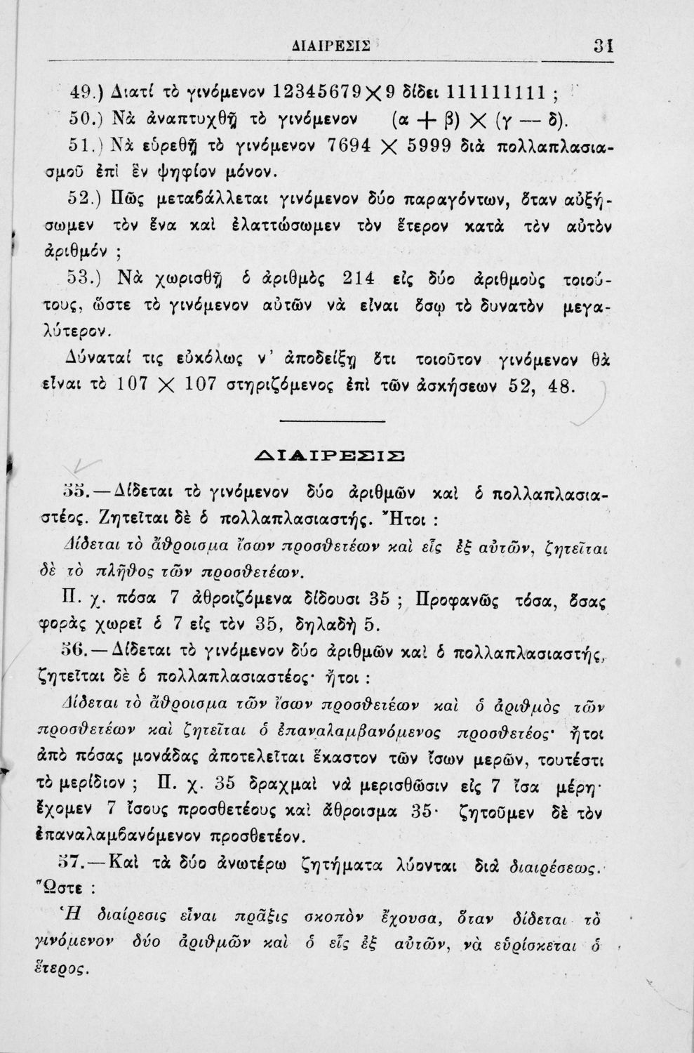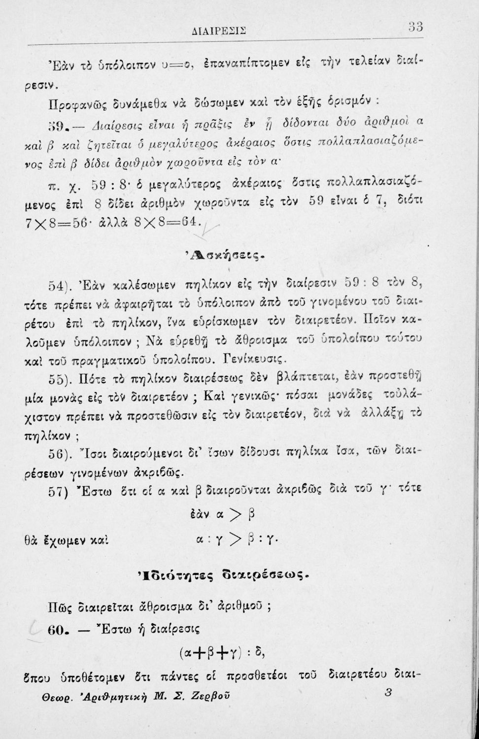 Τίτλος: Θεωρητική αριθμητική προς χρήσιν της Α΄ τάξεως των Γυμνασίων