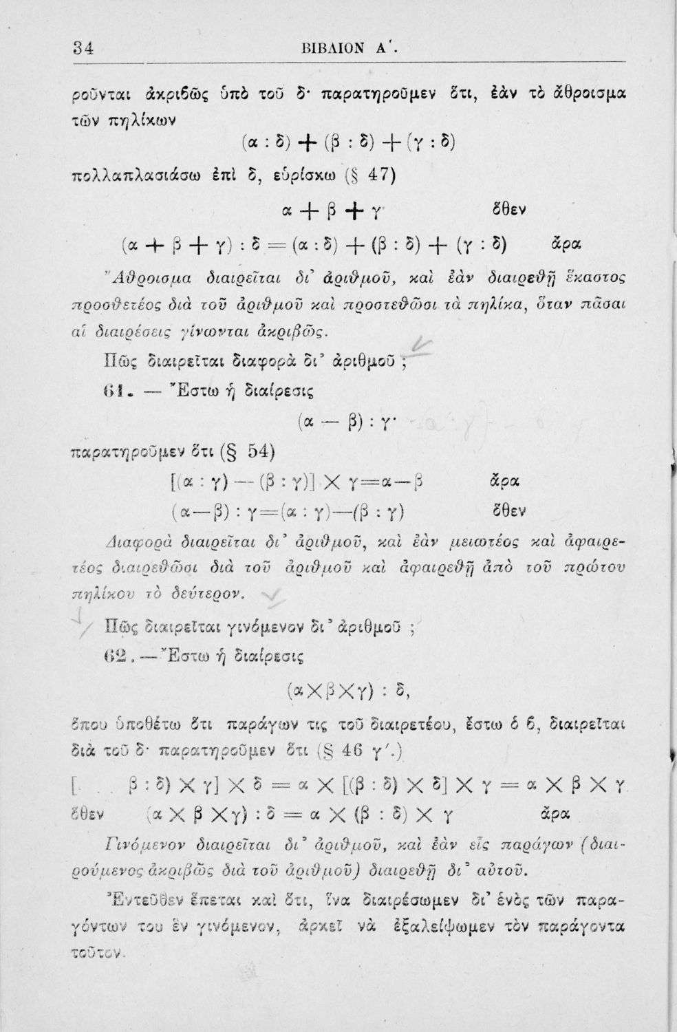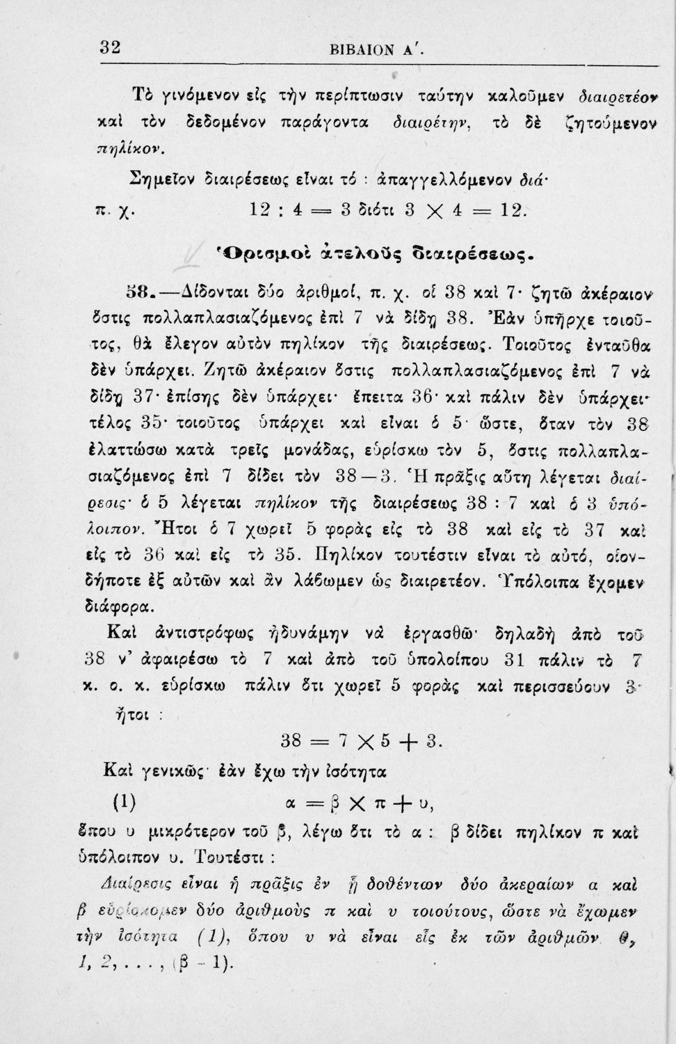 Θεωρητική αριθμητική προς χρήσιν της Α΄ τάξεως των Γυμνασίων