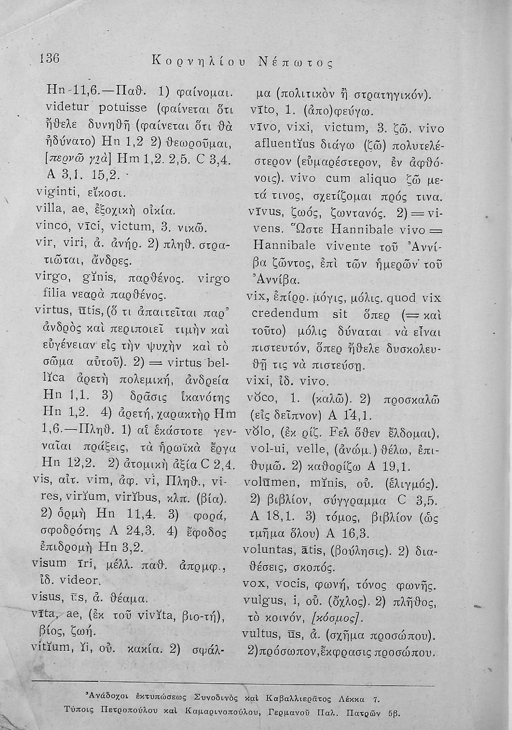 Σχολικό εγχειρίδιο Λατινικών Δ΄ Γυμνασίου παλαιού τύπου και την Ε΄ Γυμνασίου νέου τύπου που περιέχει σύντομο βιογραφικό σημείωμα του Νέπωτα, αποσπάσματα από τα έργα Αμίλκας, Αννίβας, Κάτων και Αττικός, ερμηνευτικές σημειώσεις, ιστορικό και γεωγραφικό πίνακα και λεξιλόγιο. Ο συγγραφέας ήταν καθηγητής της Λατινικής Φιλολογίας στο Πανεπιστήμιο Αθηνών.
