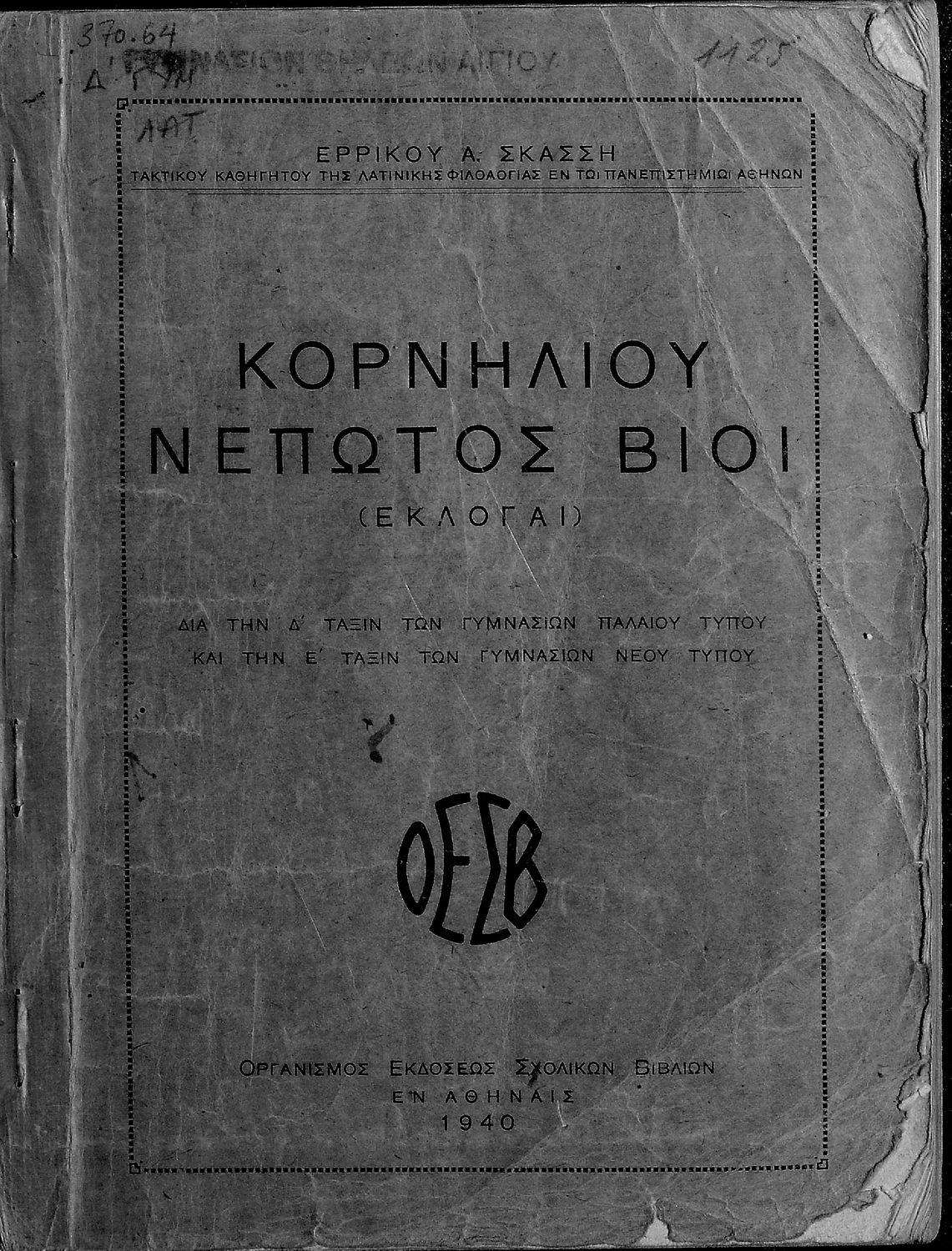 Τίτλος: Κορνηλίου Νέπωτος Βίοι (εκλογαί) δια την Δ΄ τάξιν των Γυμνασίων παλαιού τύπου και την Ε΄ τάξιν των Γυμνασίων νέου τύπου